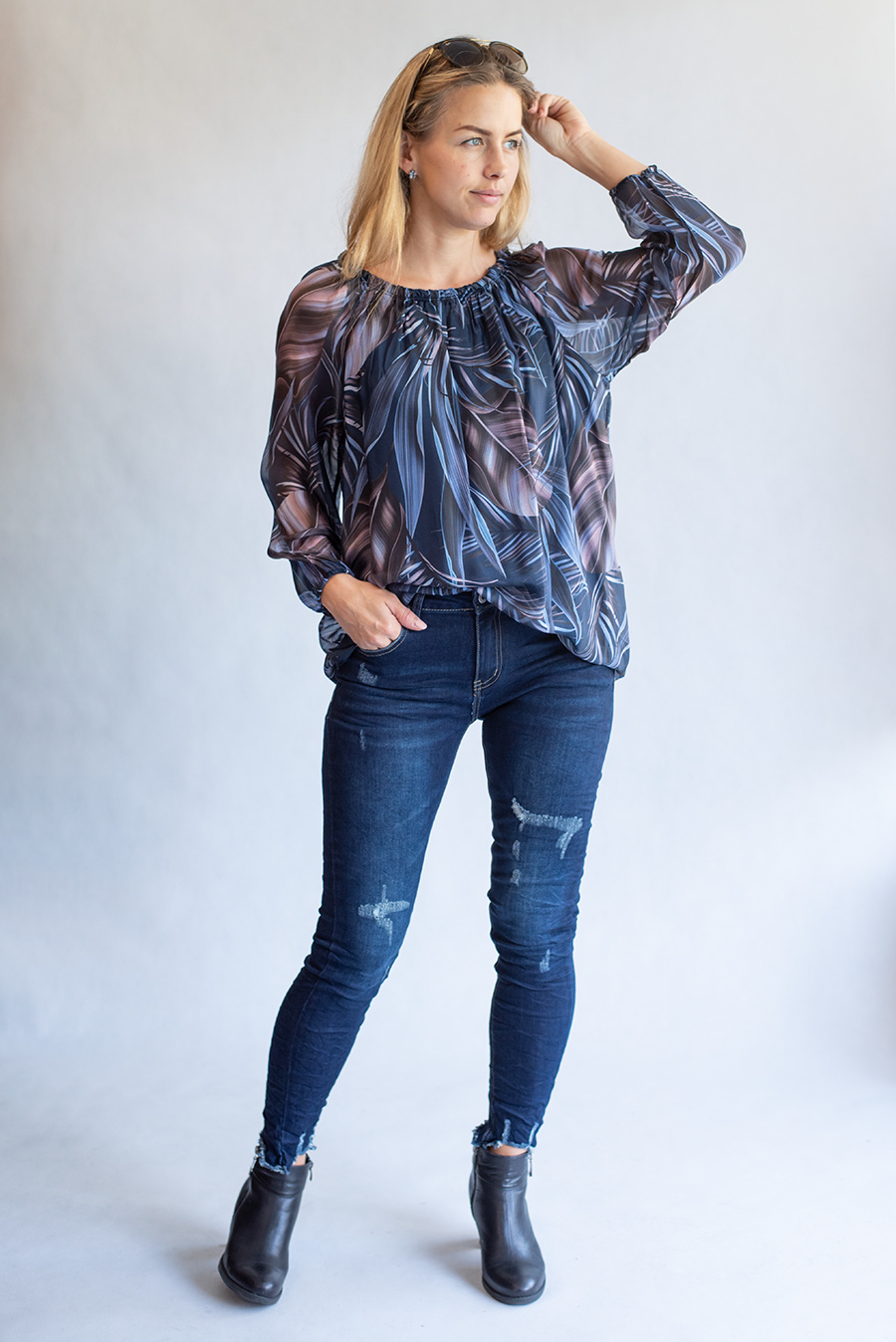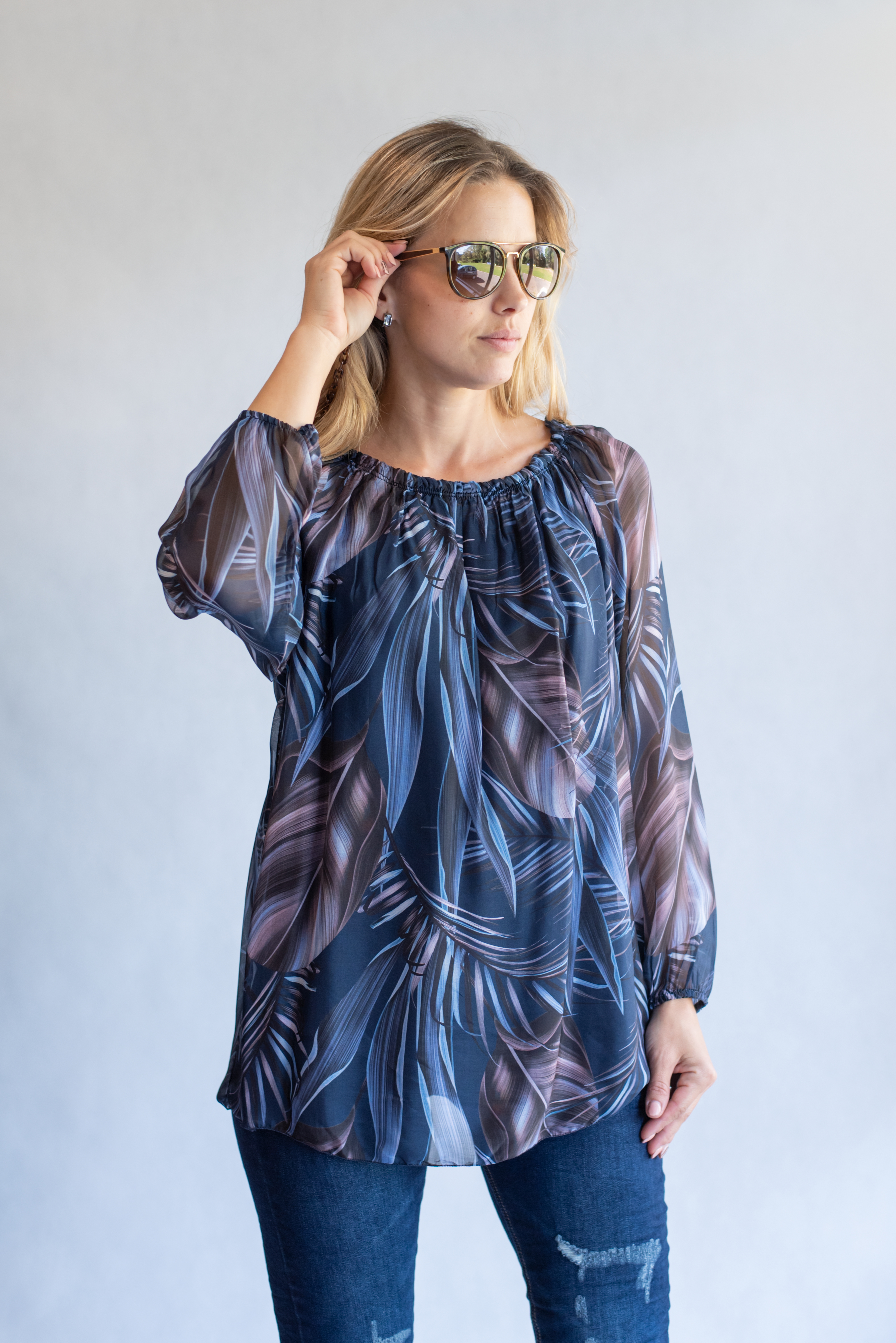 Elegantní halenka dlouhý rukáv s potiskem .