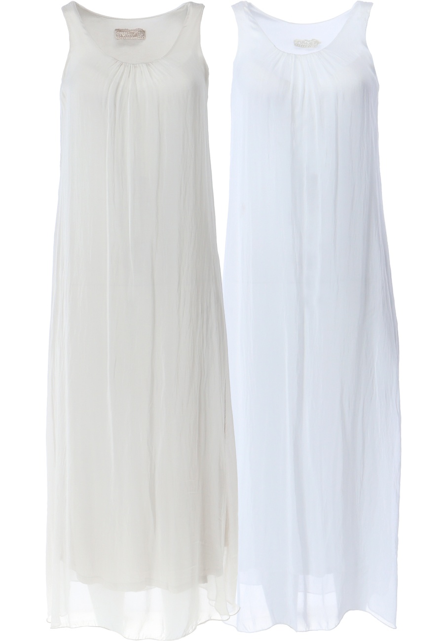 Dámské dlouhé hedvábné šaty bez rukávů.