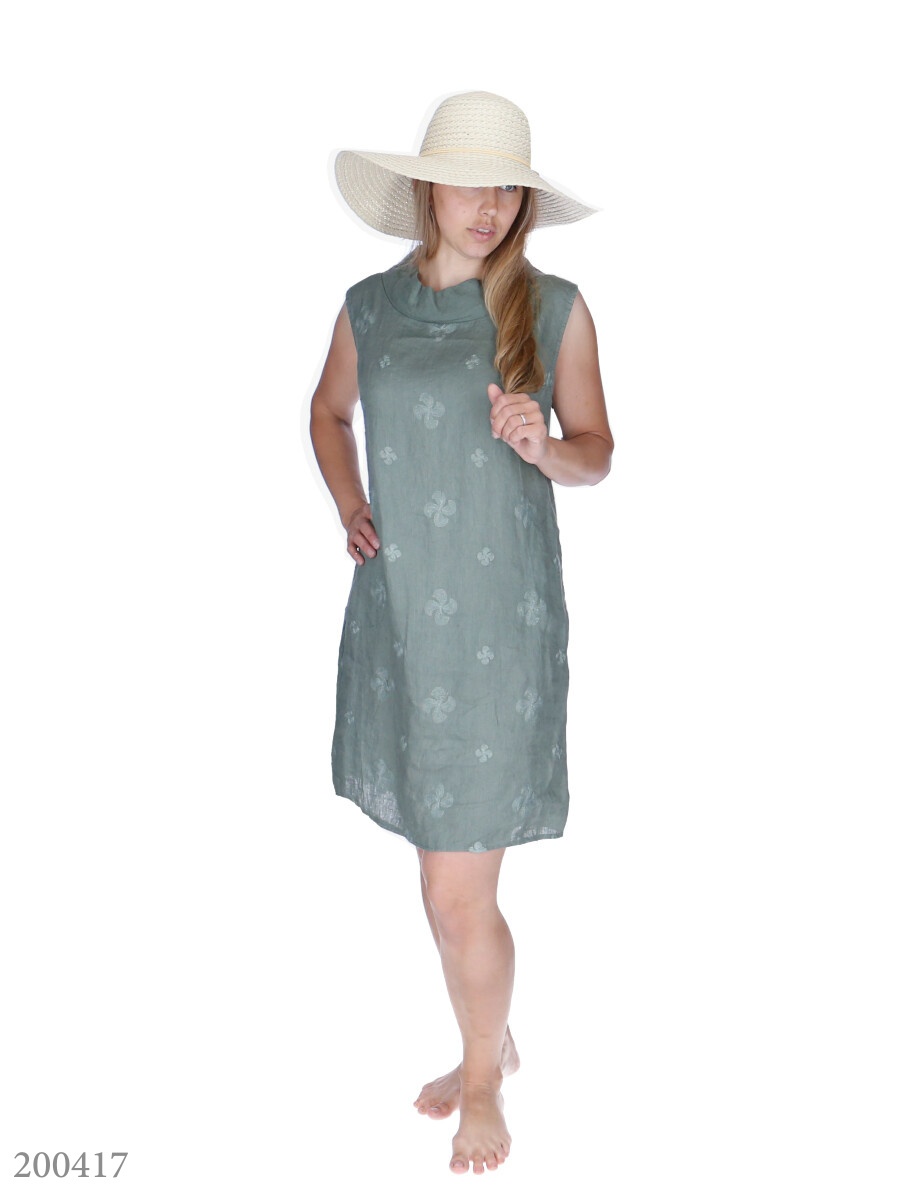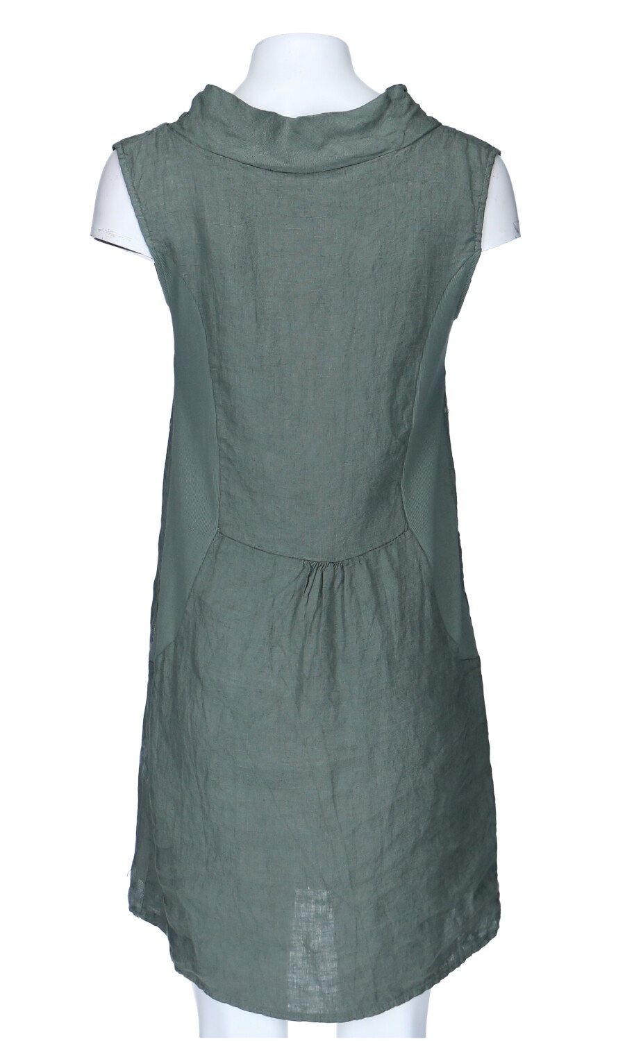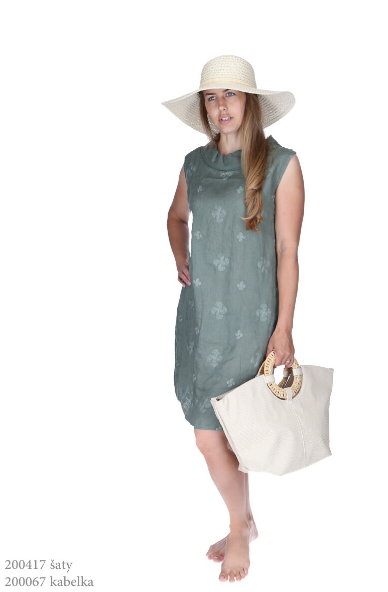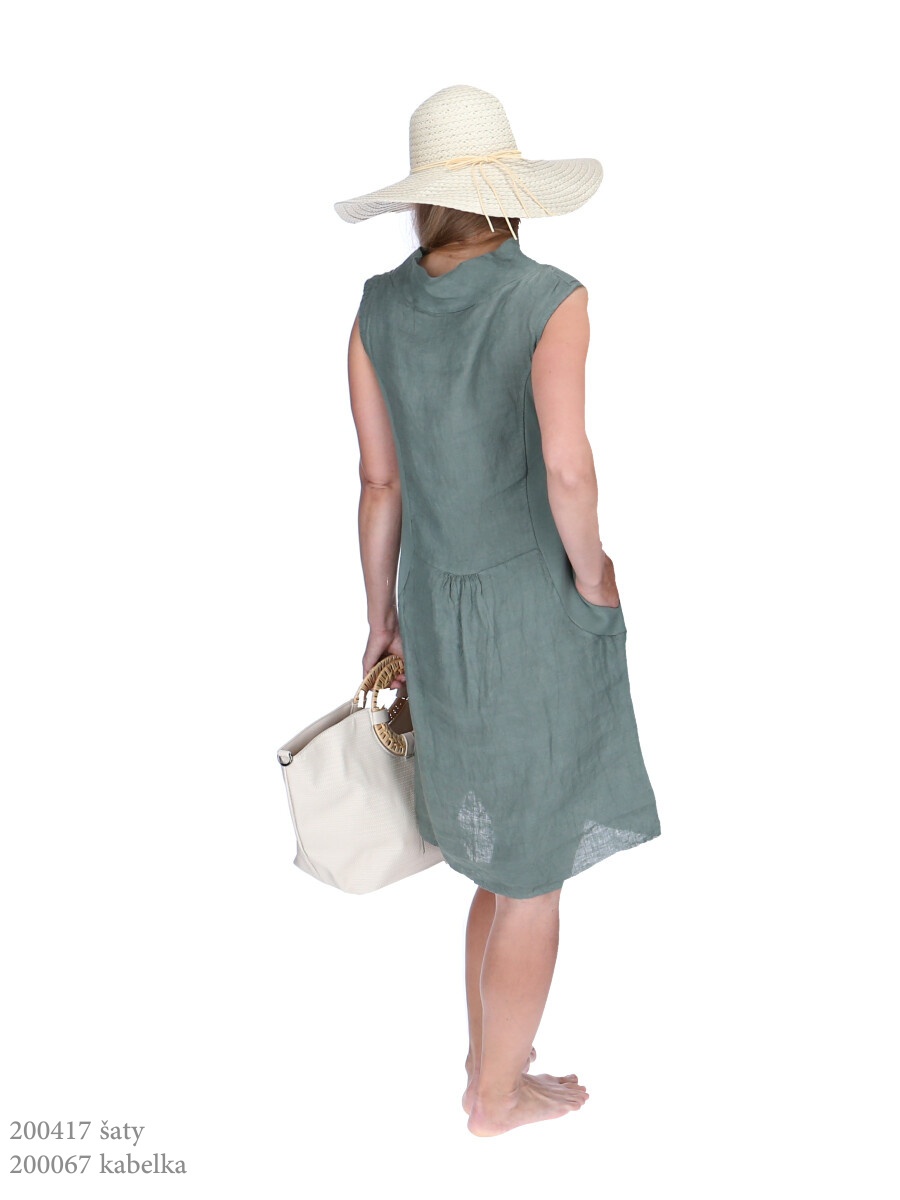 200417 ŠATY LEN (šaty mají kapsy a z boční strany elastické žebrování)