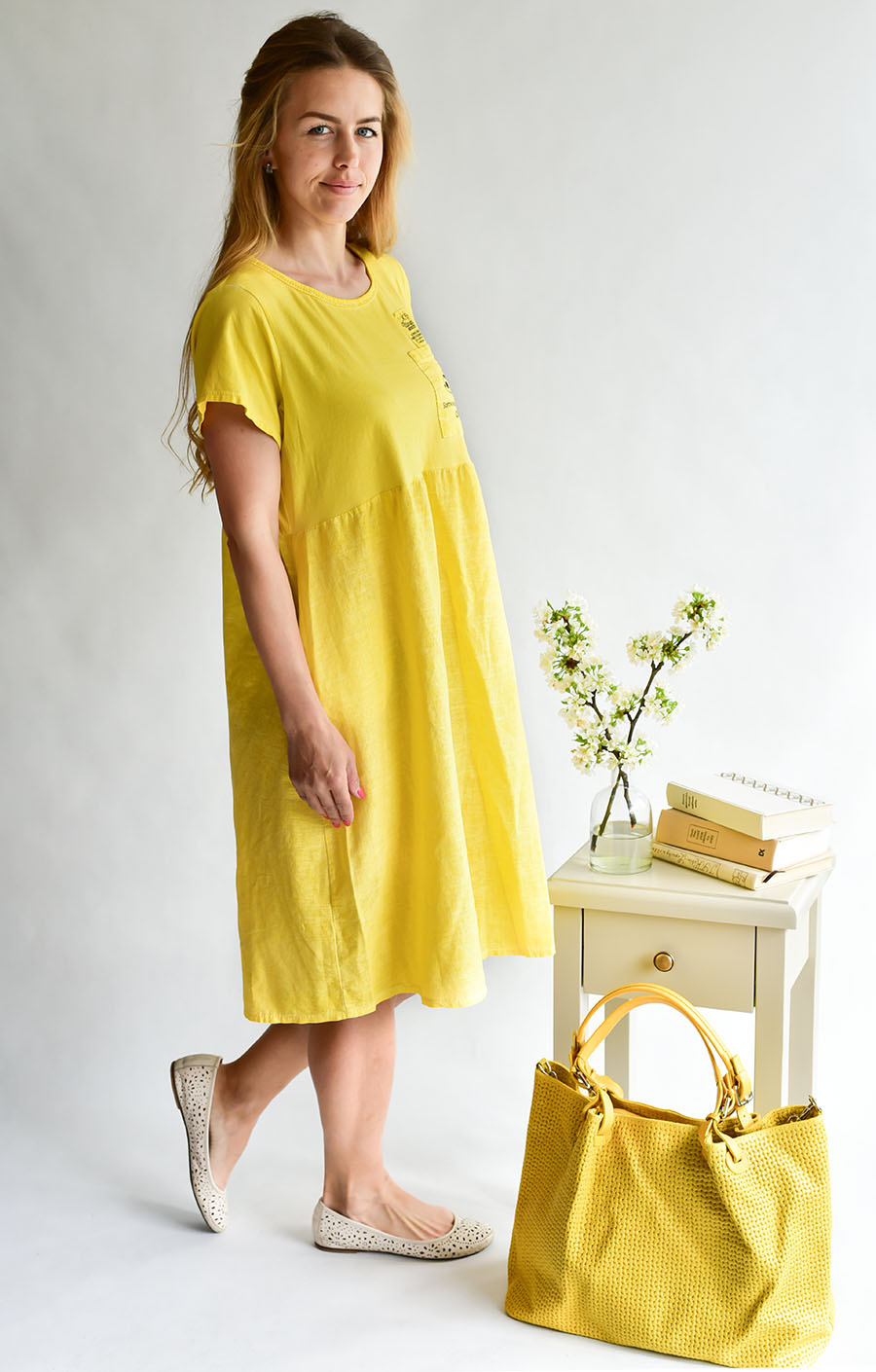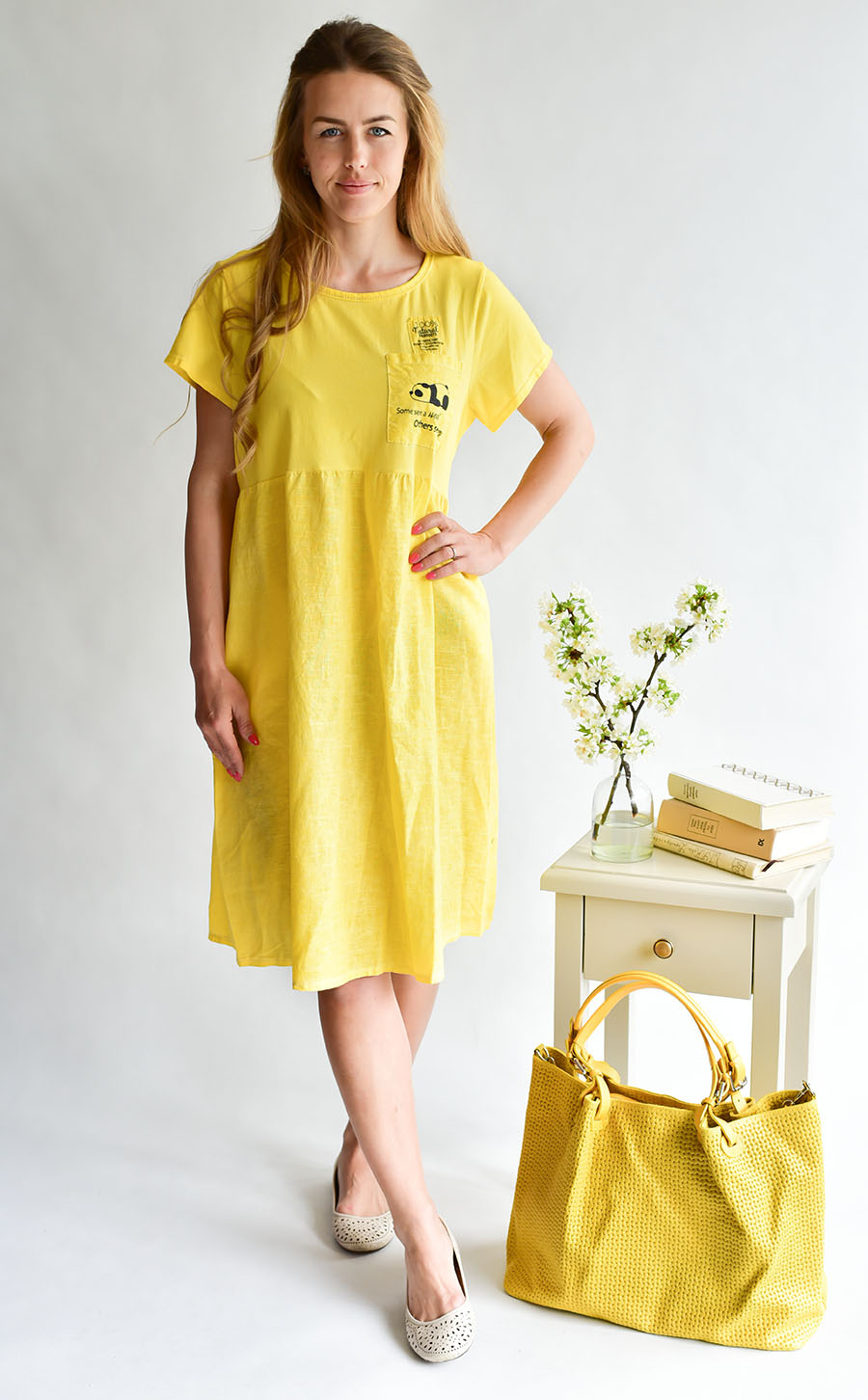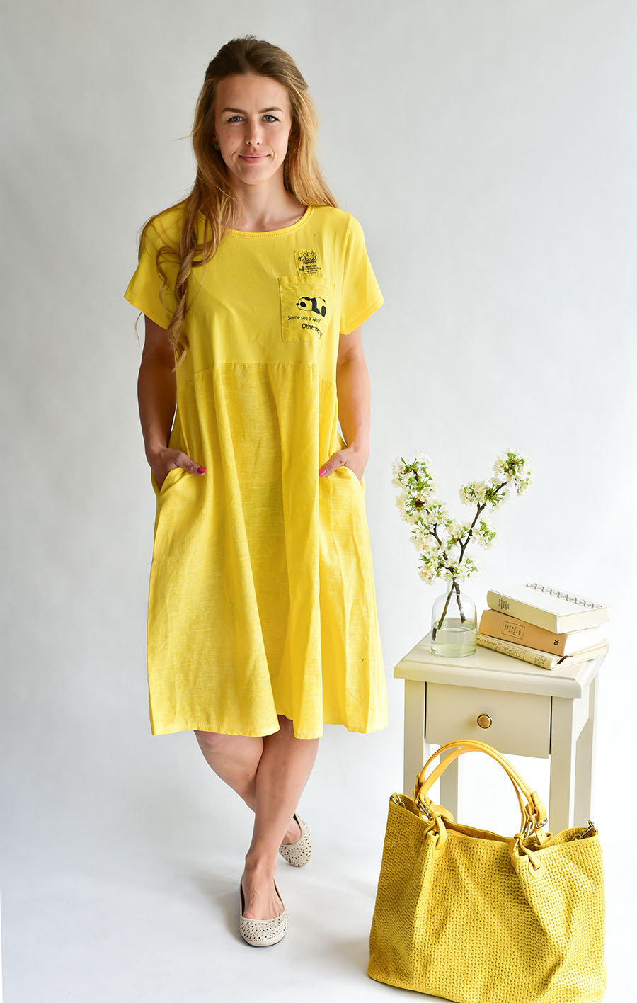 Módní lněné letní šaty volnějšího střihu