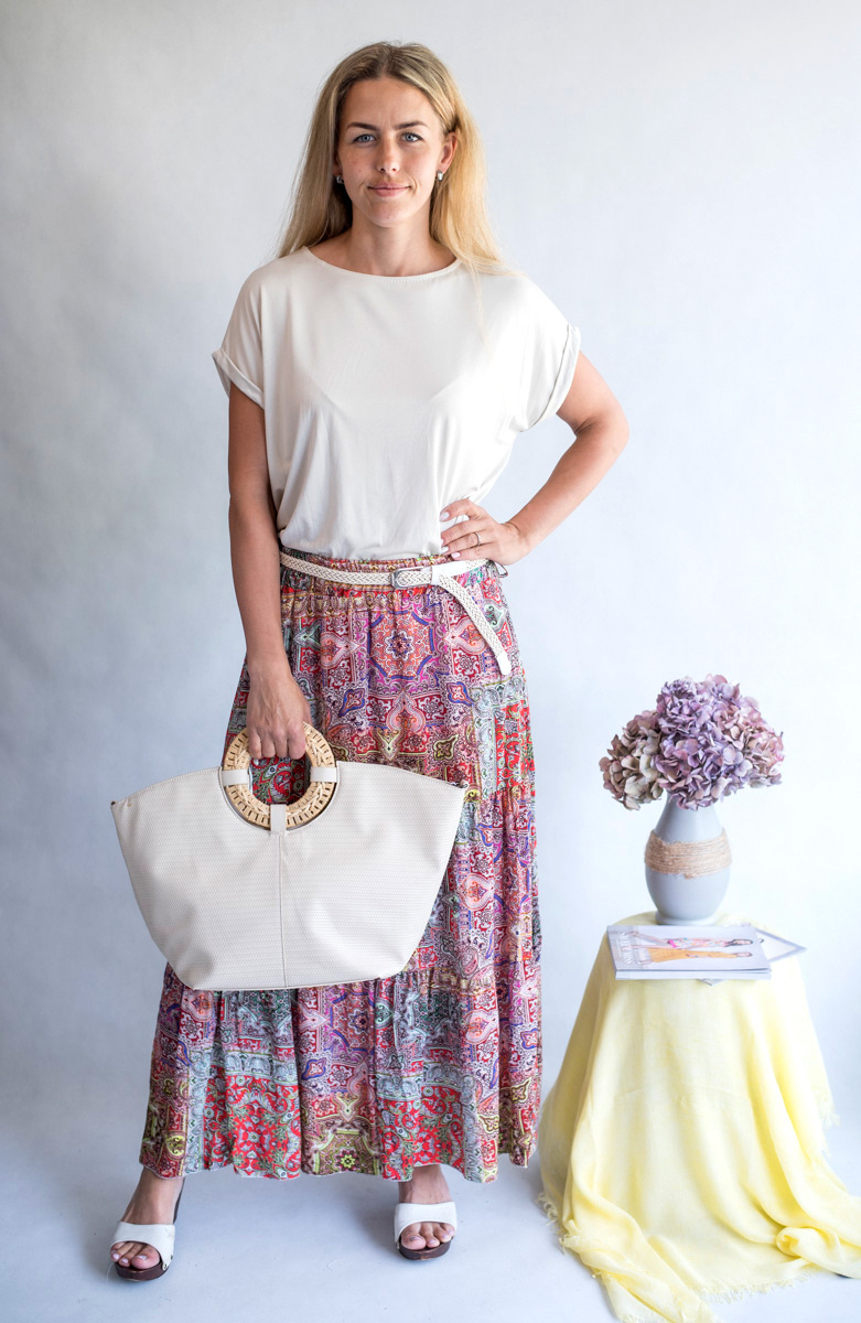 Triko s krátkým rukávem volnějšího stylu pro každodenní pohodlné použití.