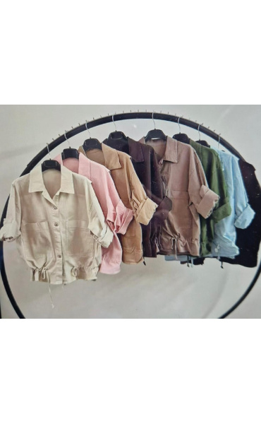 Bavlněná jarní bunda se zapínáním na knoflíky. Bunda má na přední straně našité kapsy a v pase má regulaci na stažení.