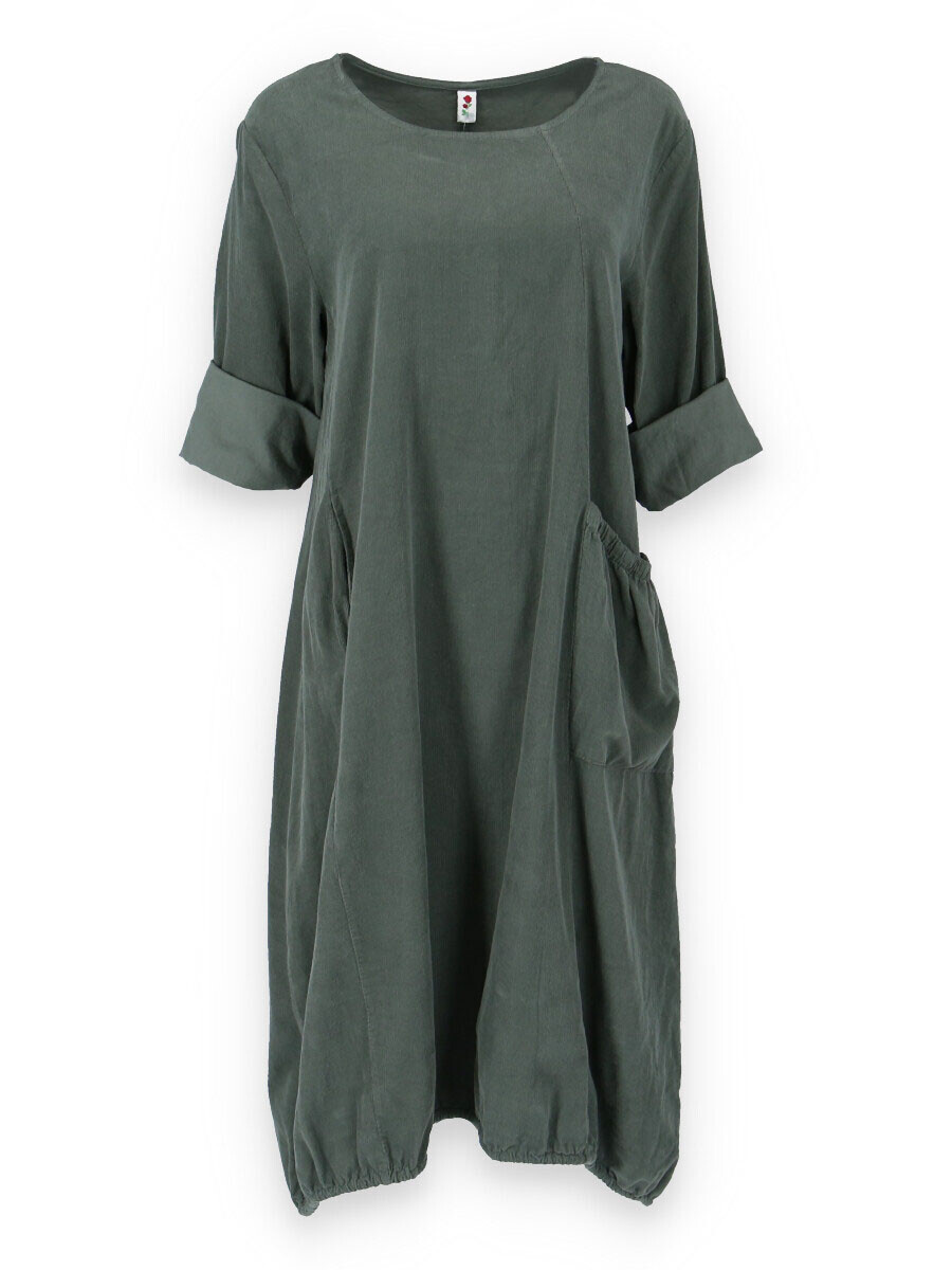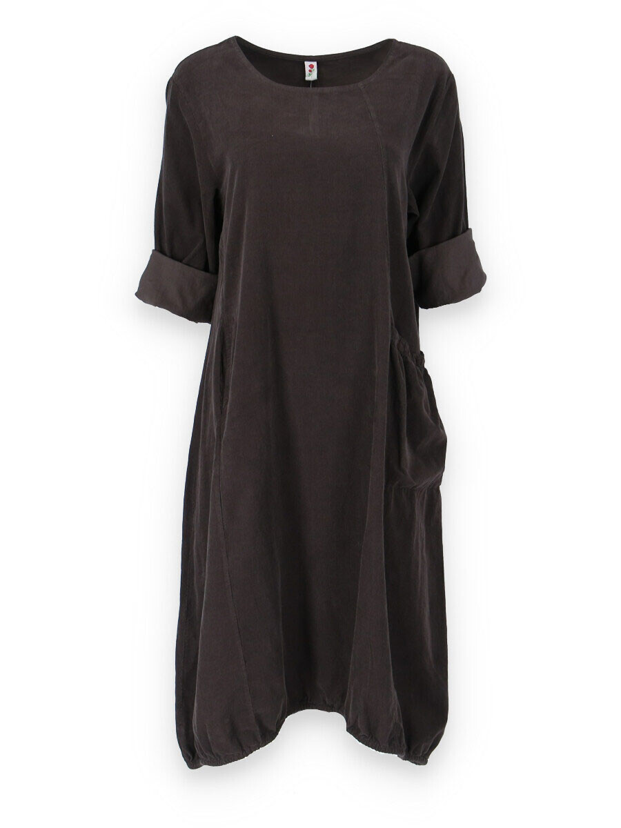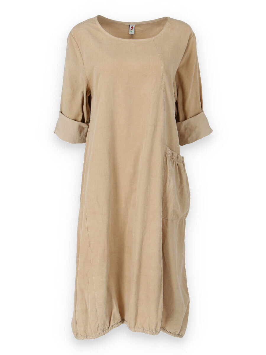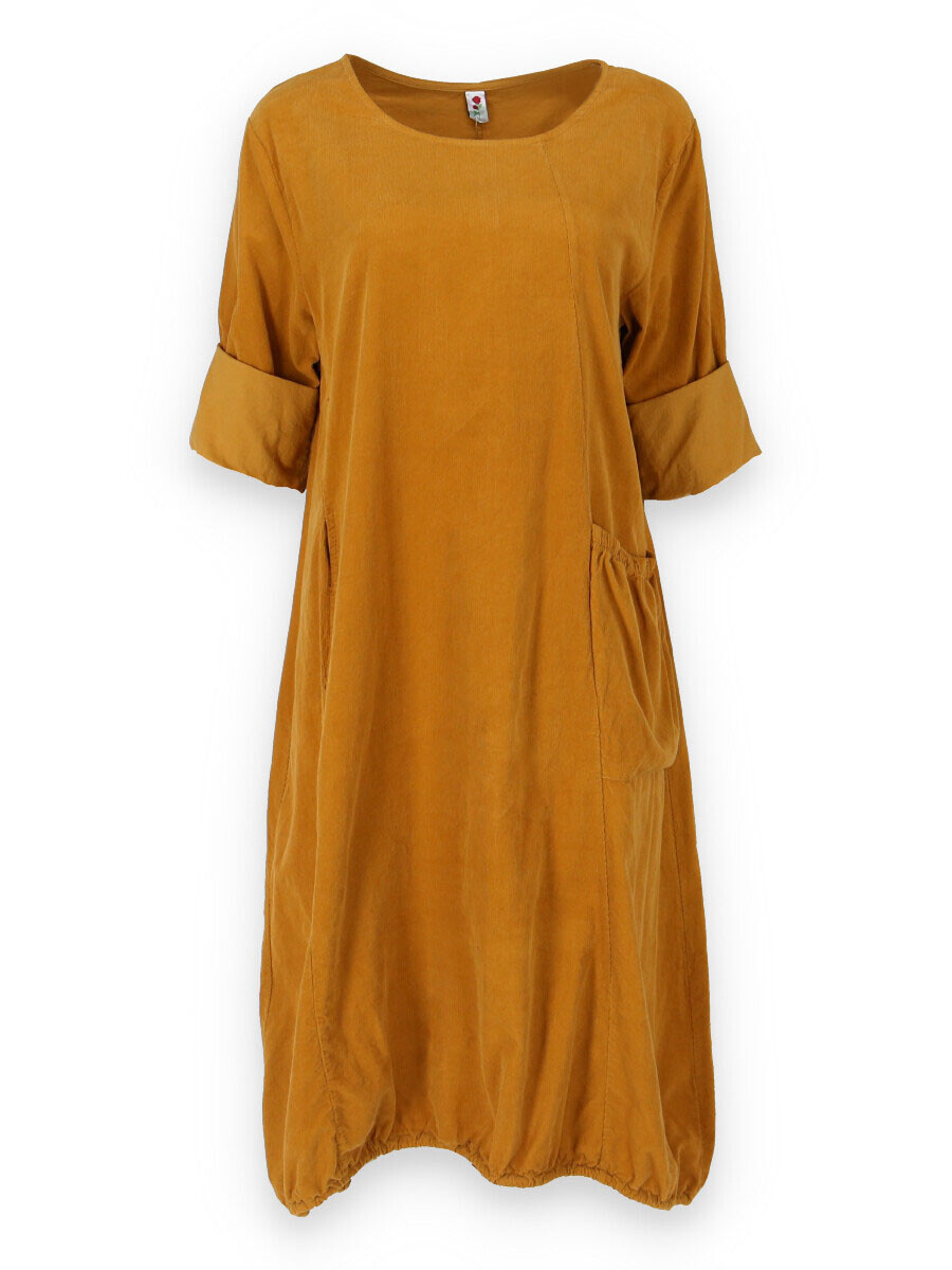 Bavlněná šatovka z bavlněného manšestru s dlouhým rukávem. Šatovka má na přední straně našitou kapsu a ve spodní části regulaci na utažení.
