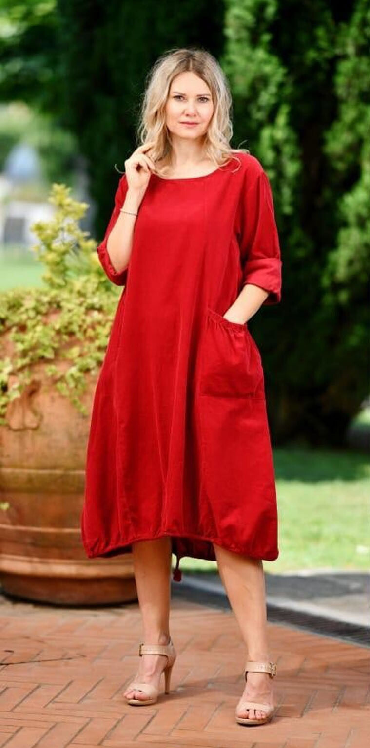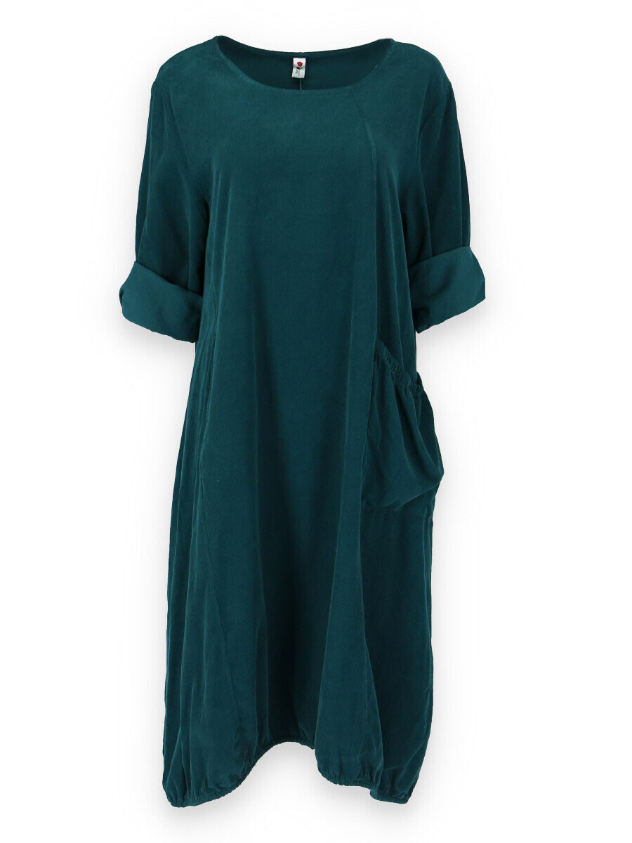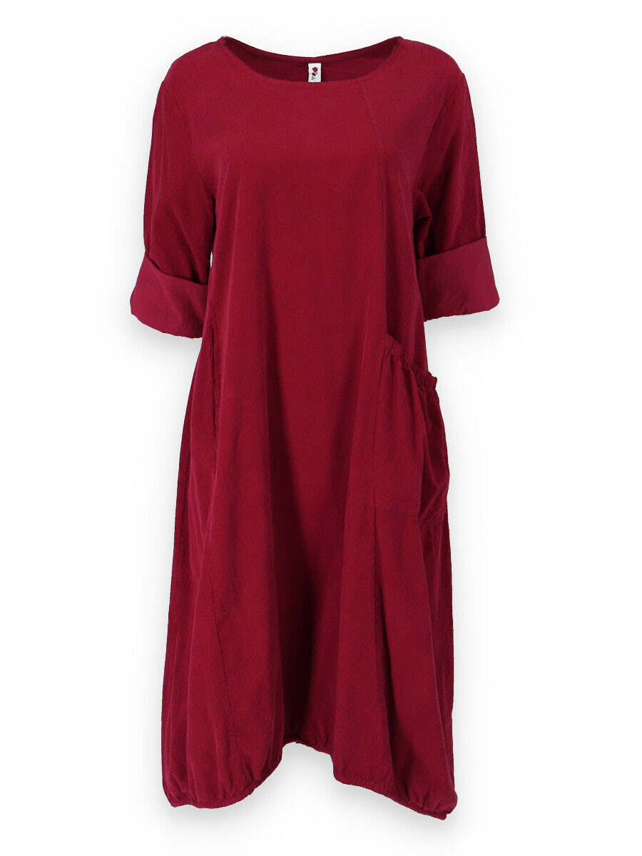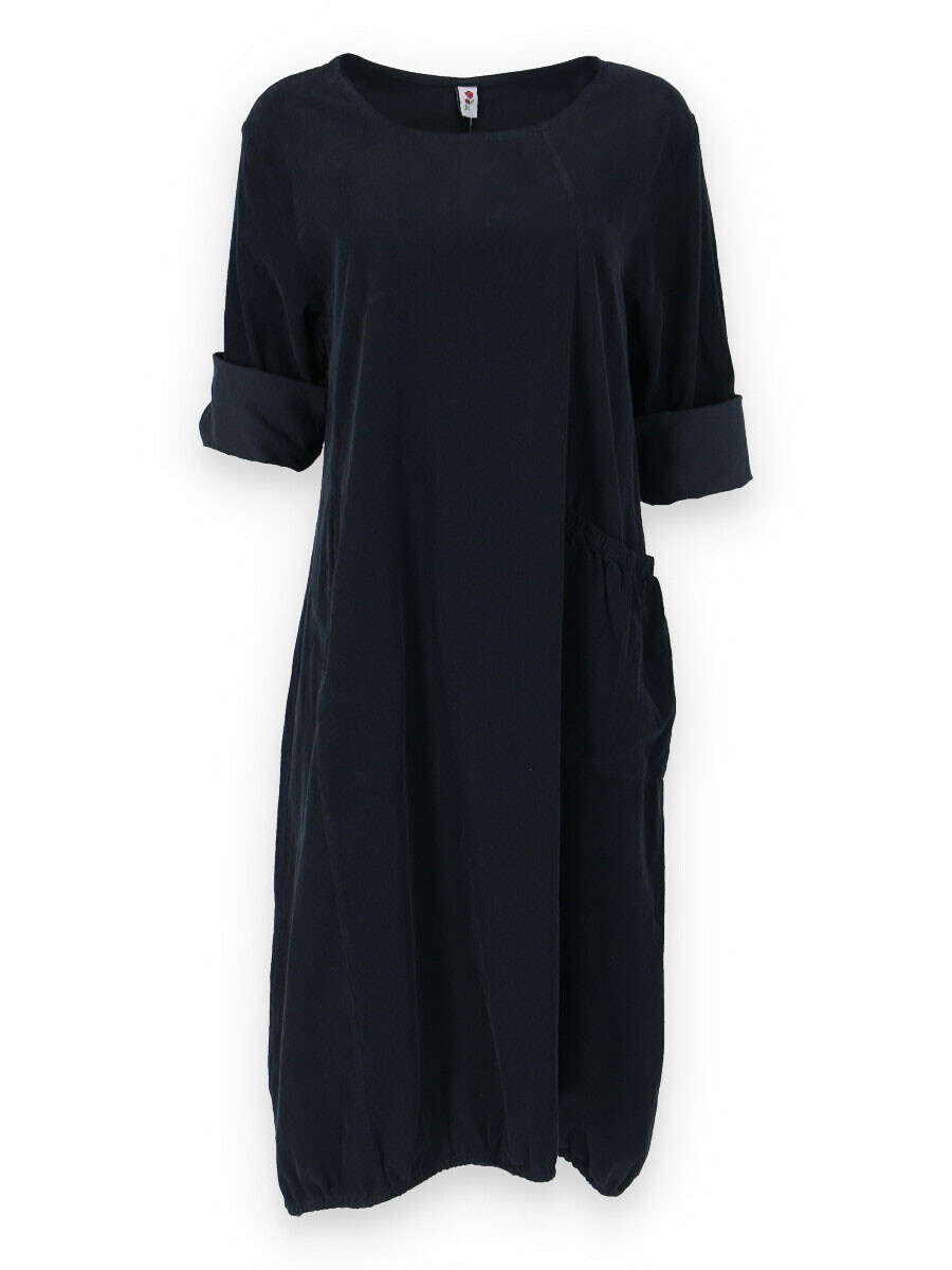 Bavlněná šatovka z bavlněného manšestru s dlouhým rukávem. Šatovka má na přední straně našitou kapsu a ve spodní části regulaci na utažení.