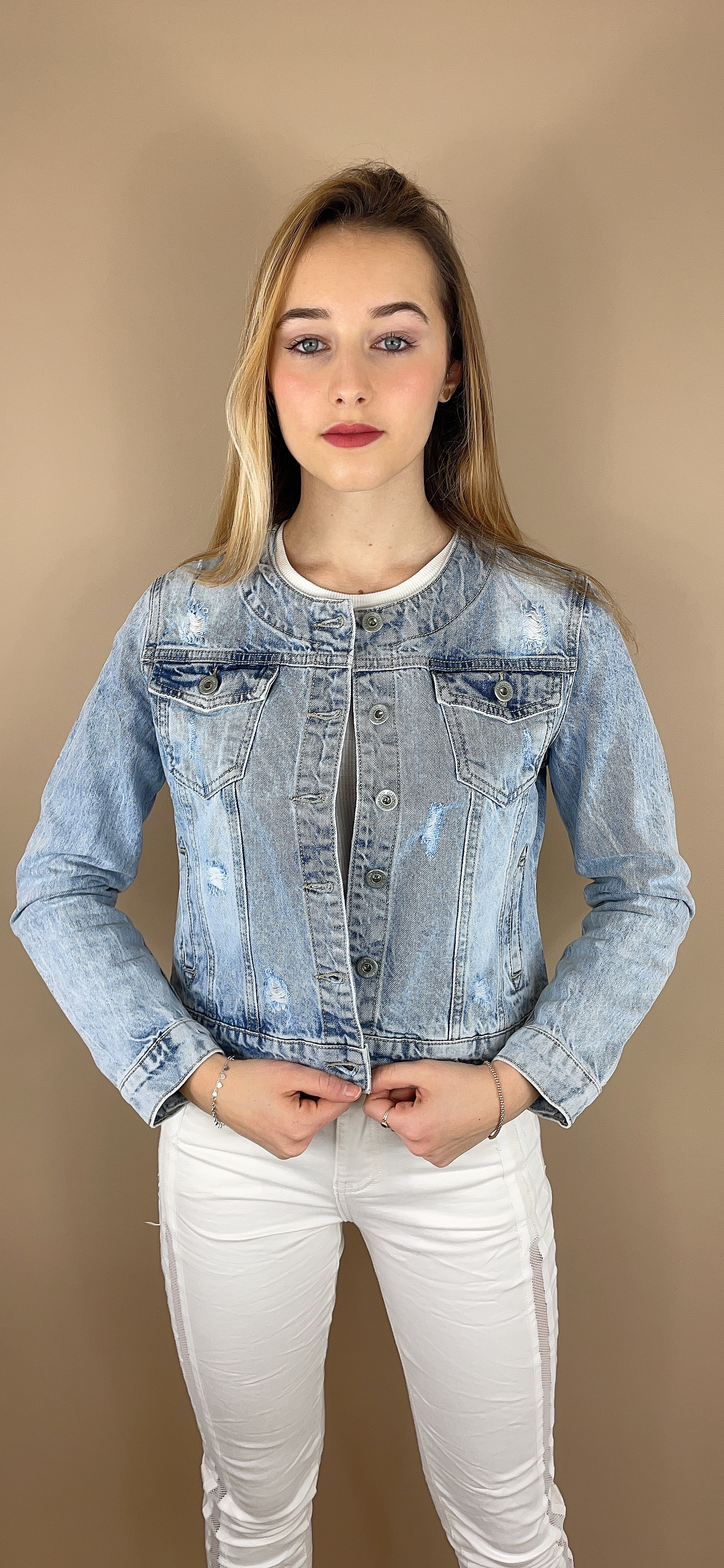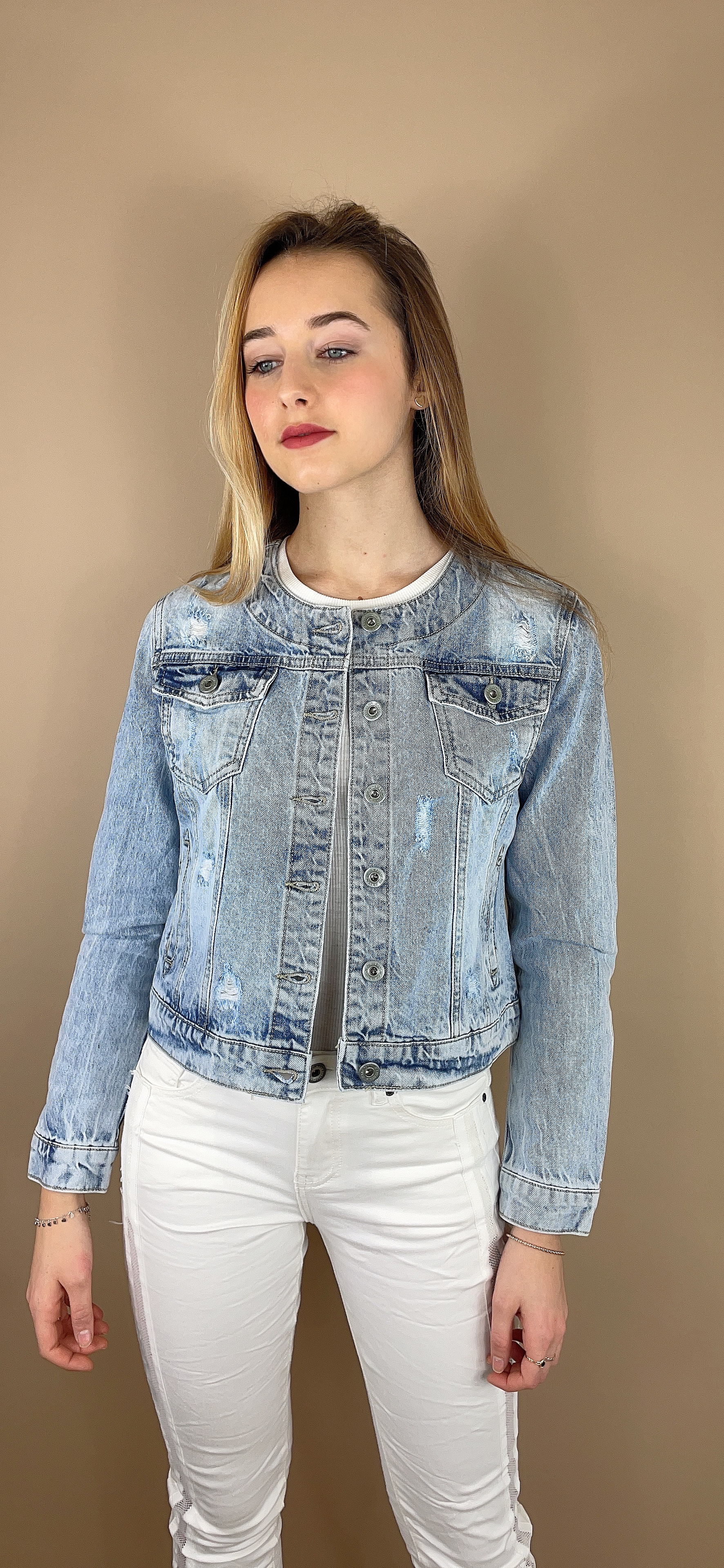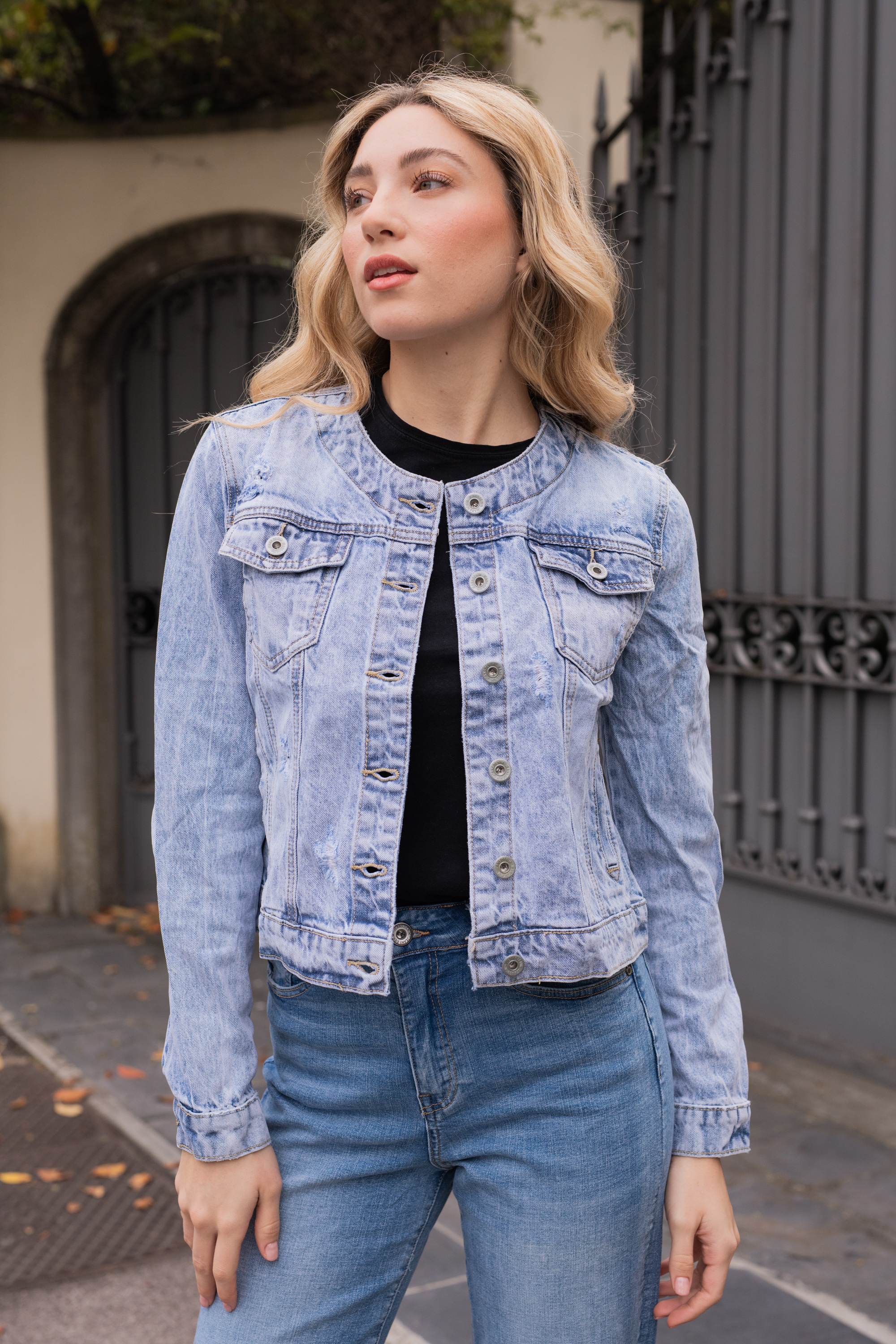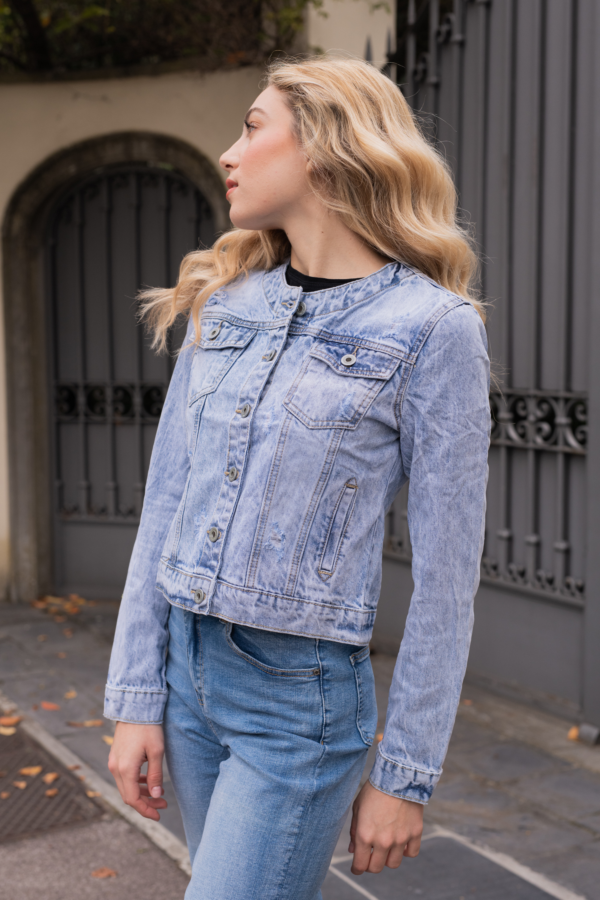 Klasická džínová bunda s kulatým výstřihem, dovoz Itáíie