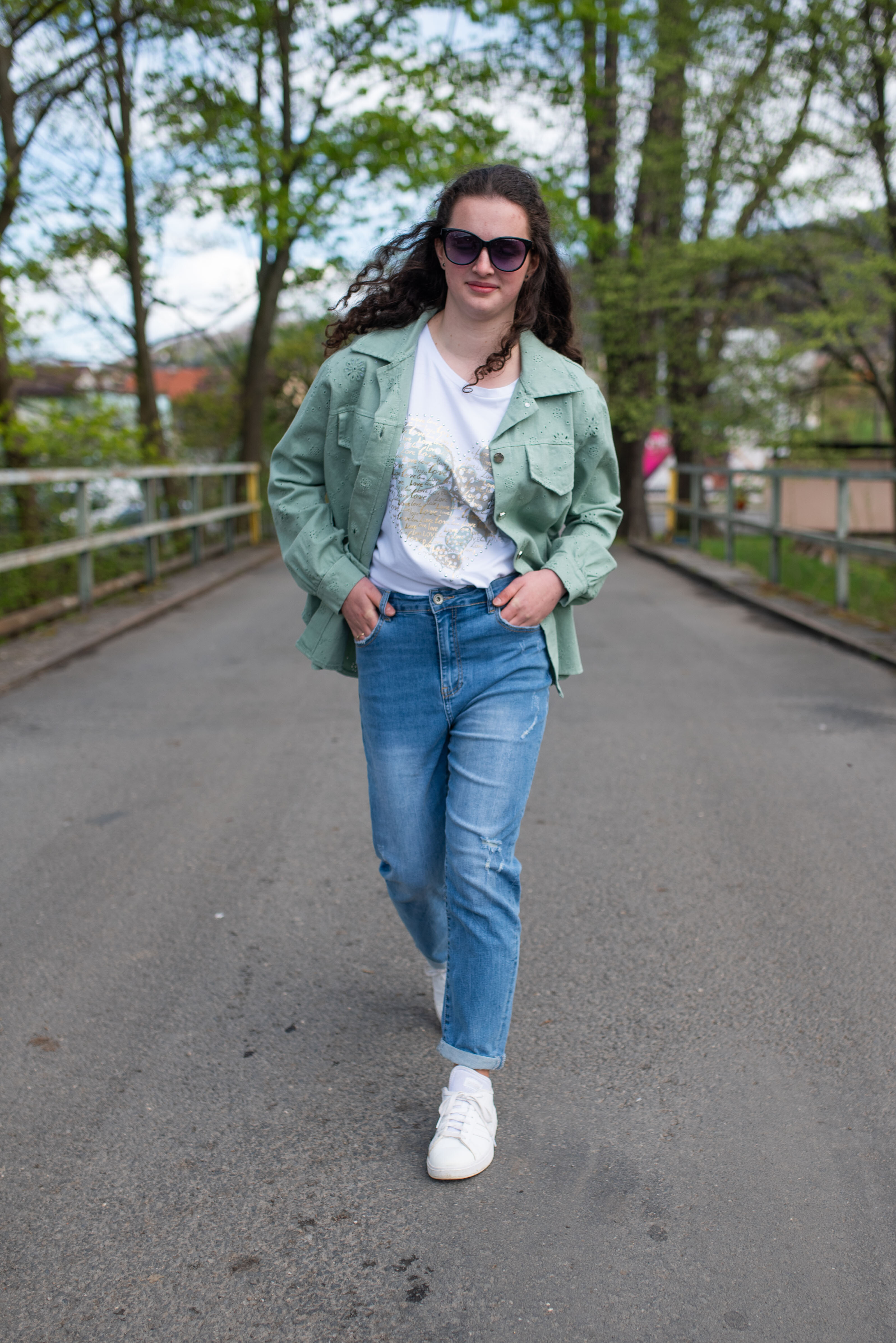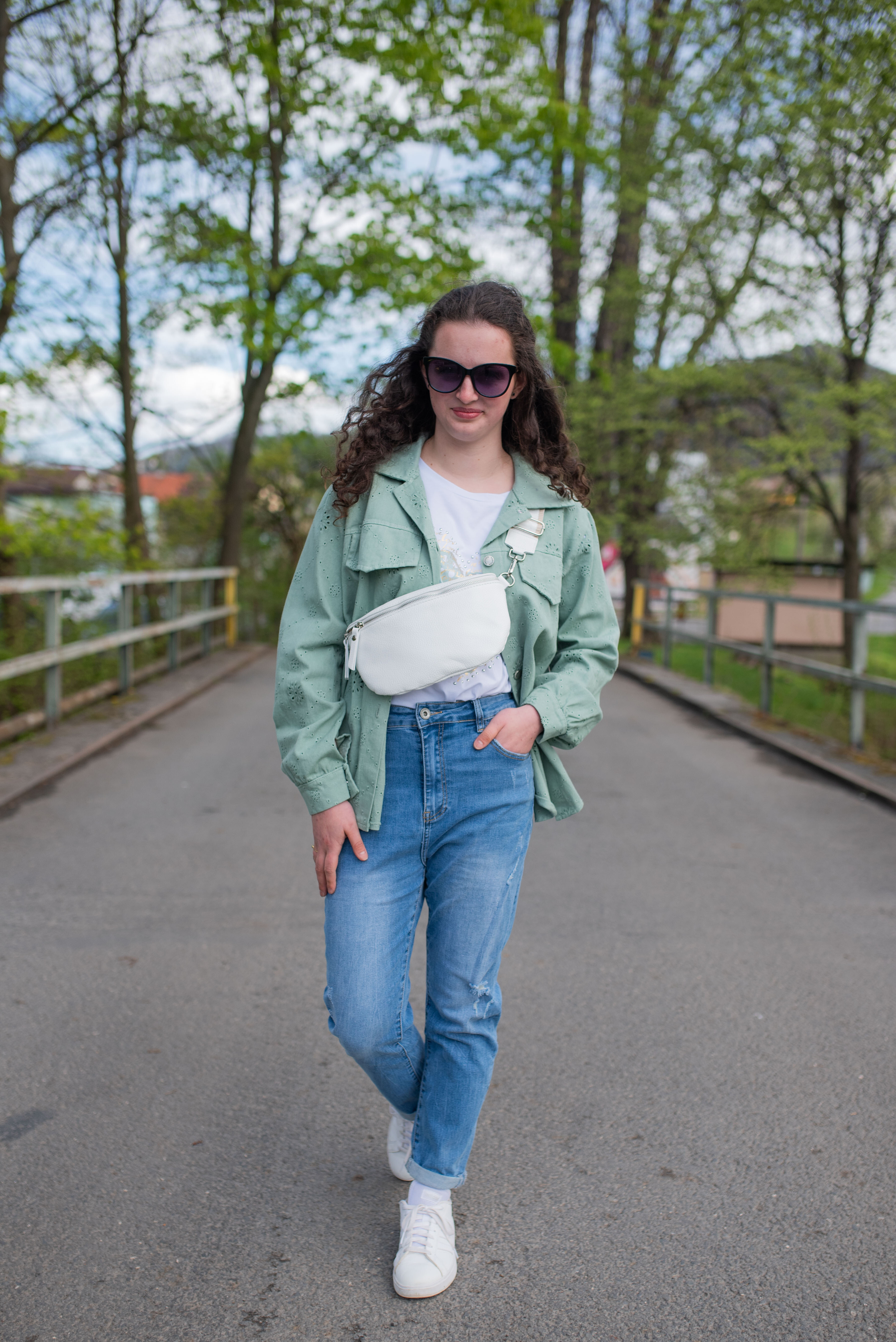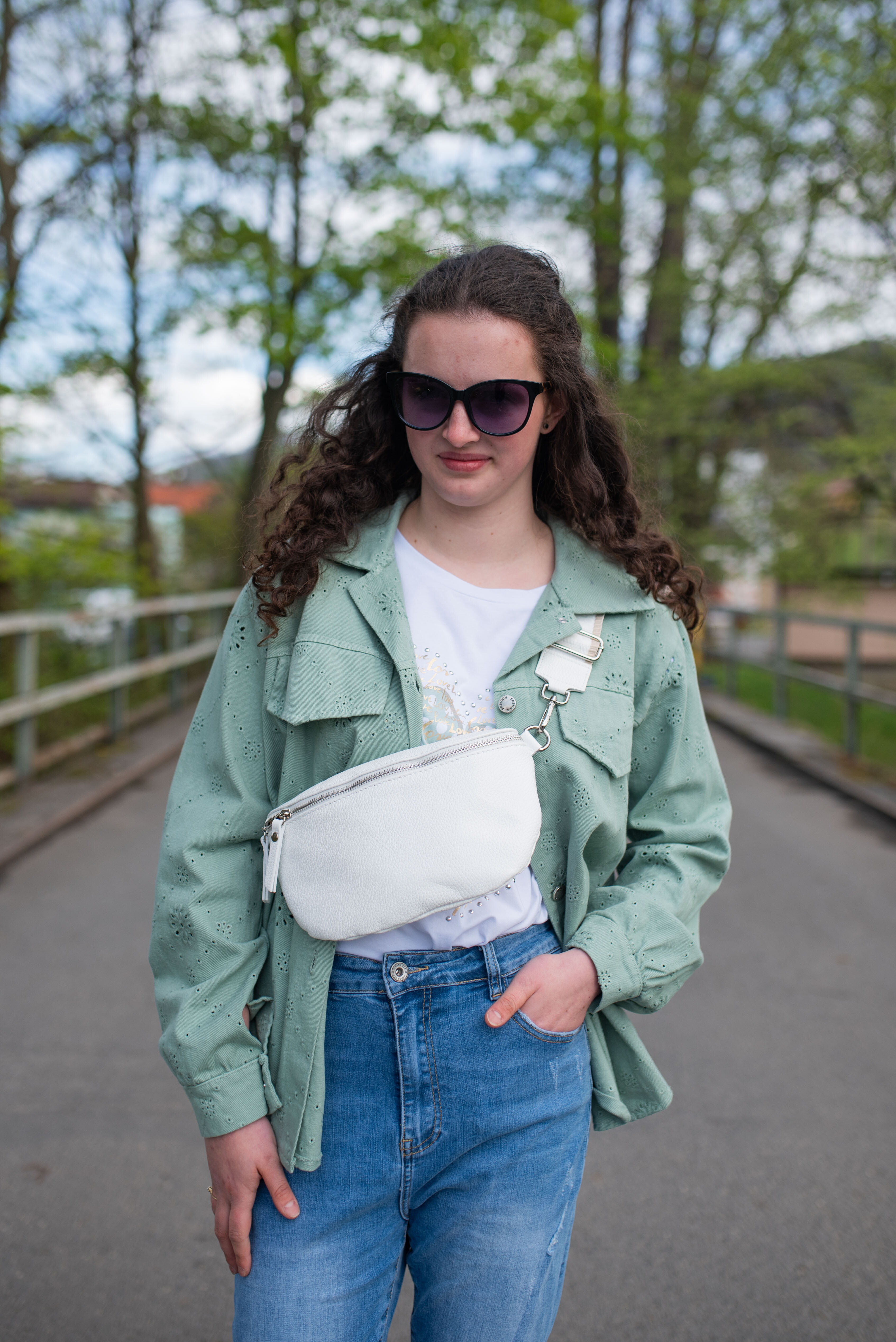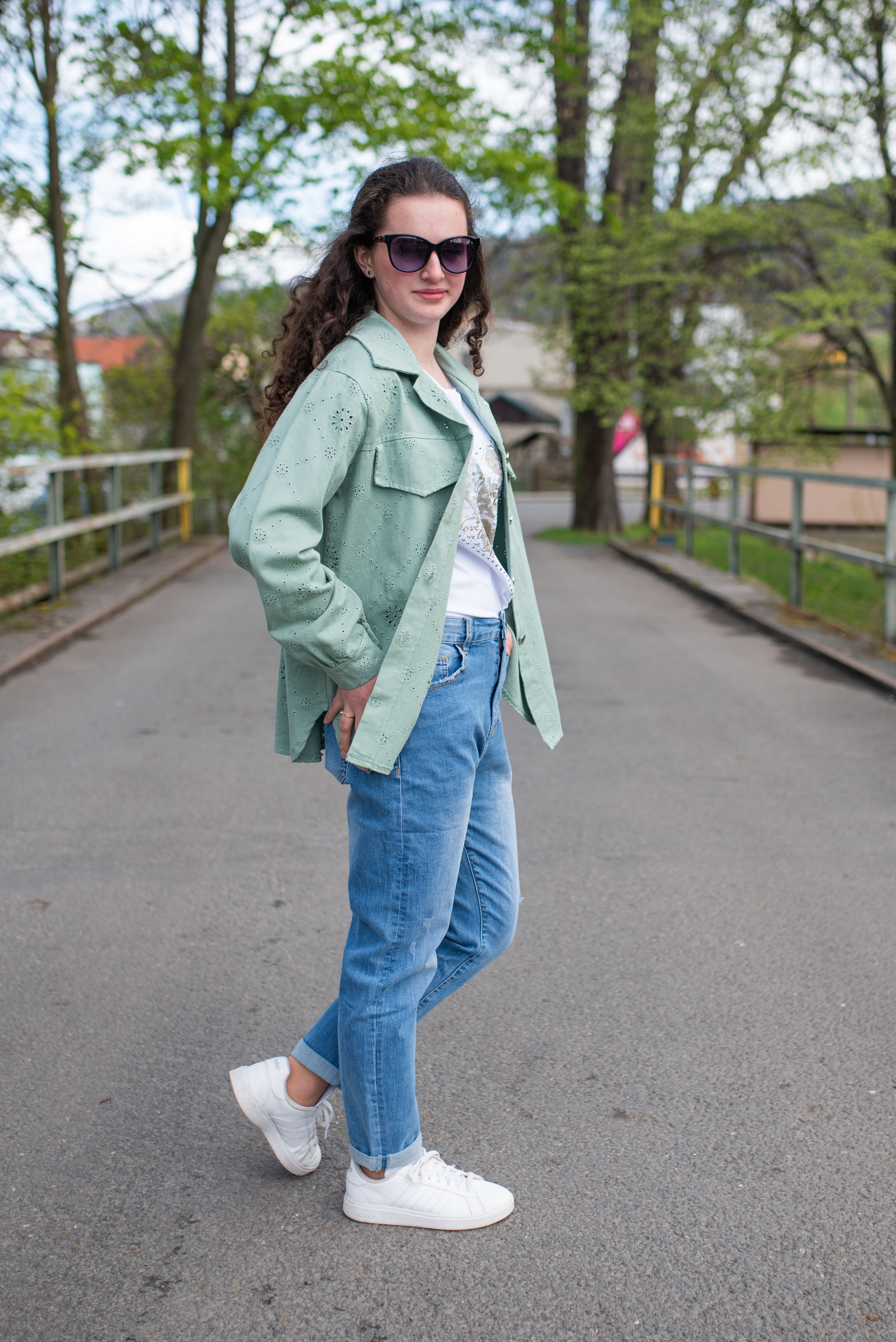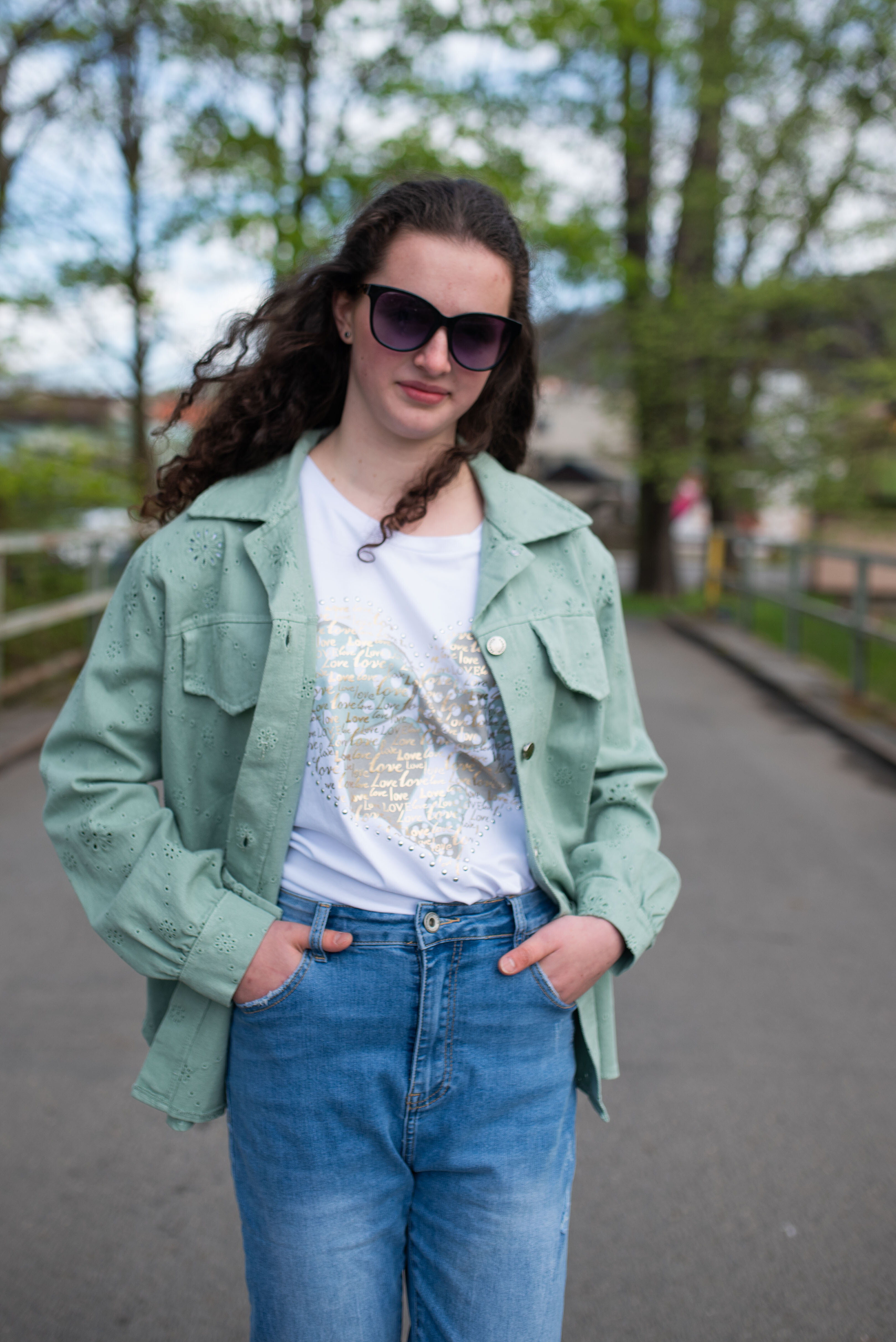 Jarní bunda džínová s kapsami na prsou