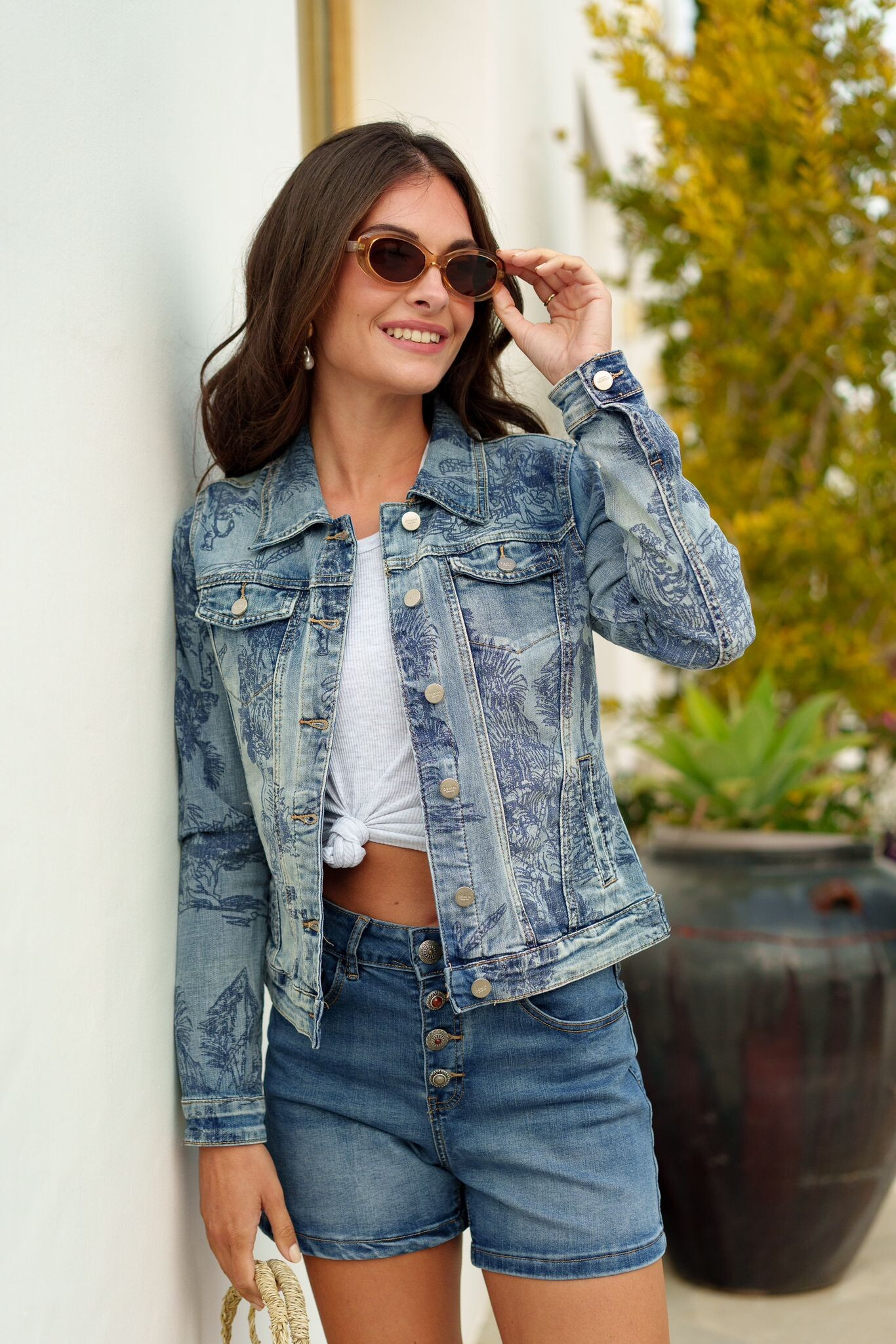 Módní oboustranná jeans bunda, elegantní dobře sedící bunda s oboustranným použitím.