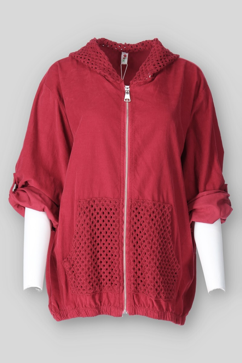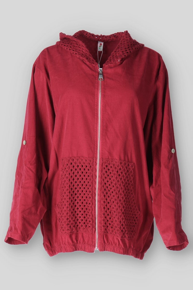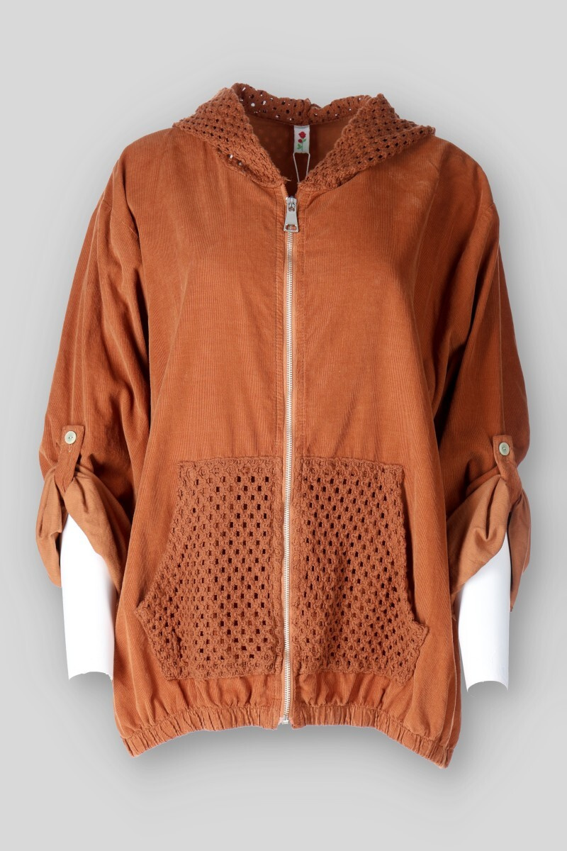 Manšestrová bunda/mikina s kapucí, zapínání na zip.