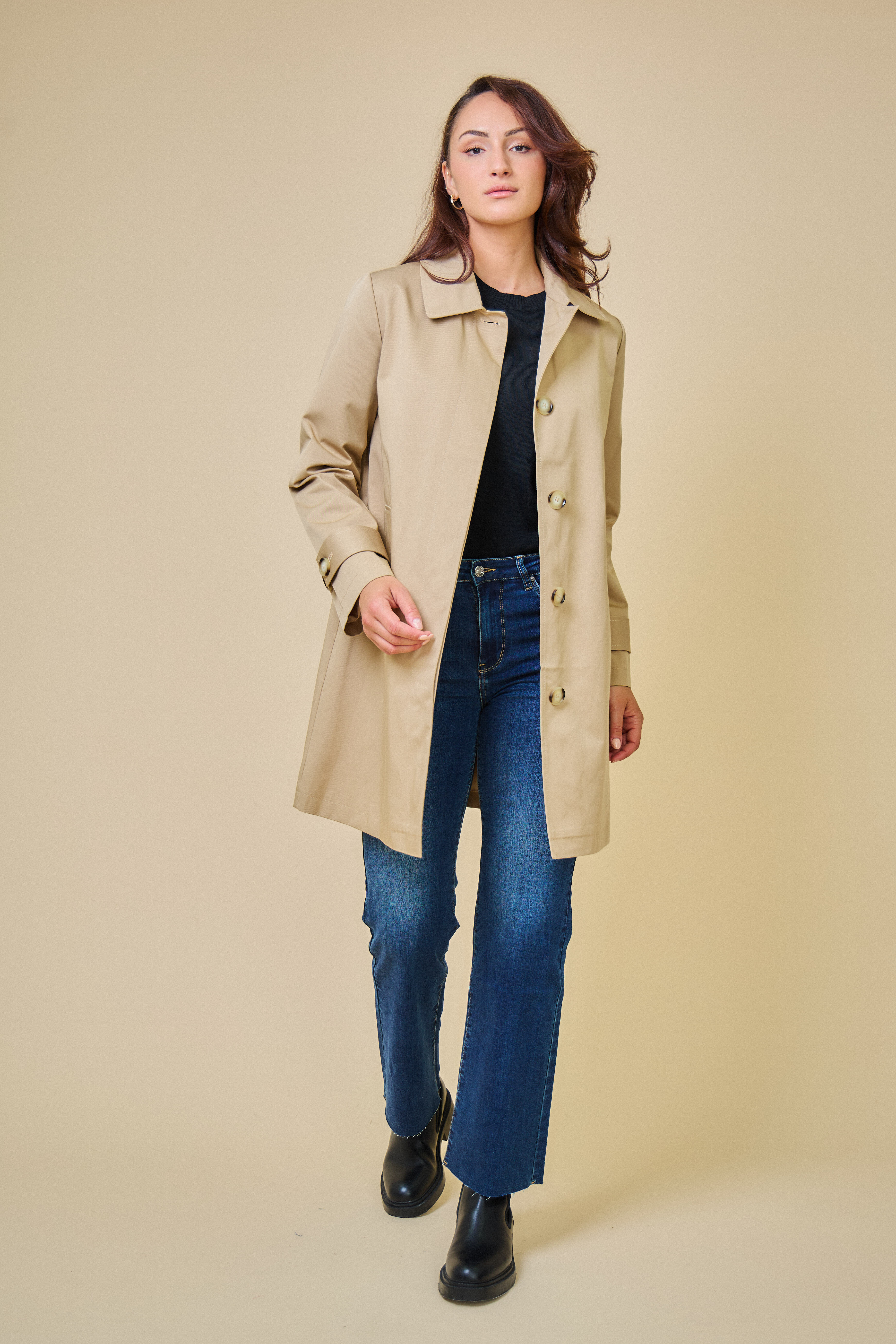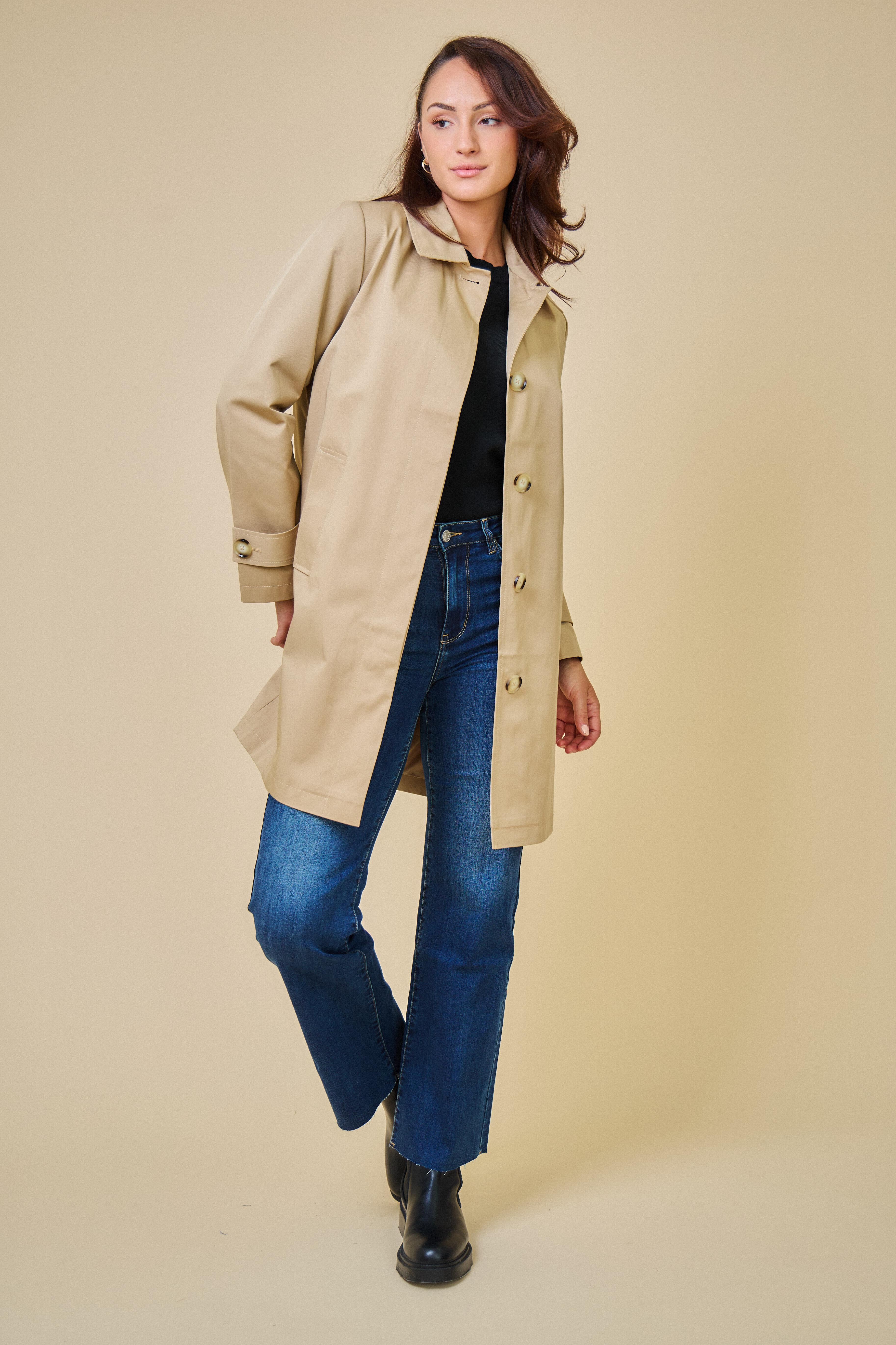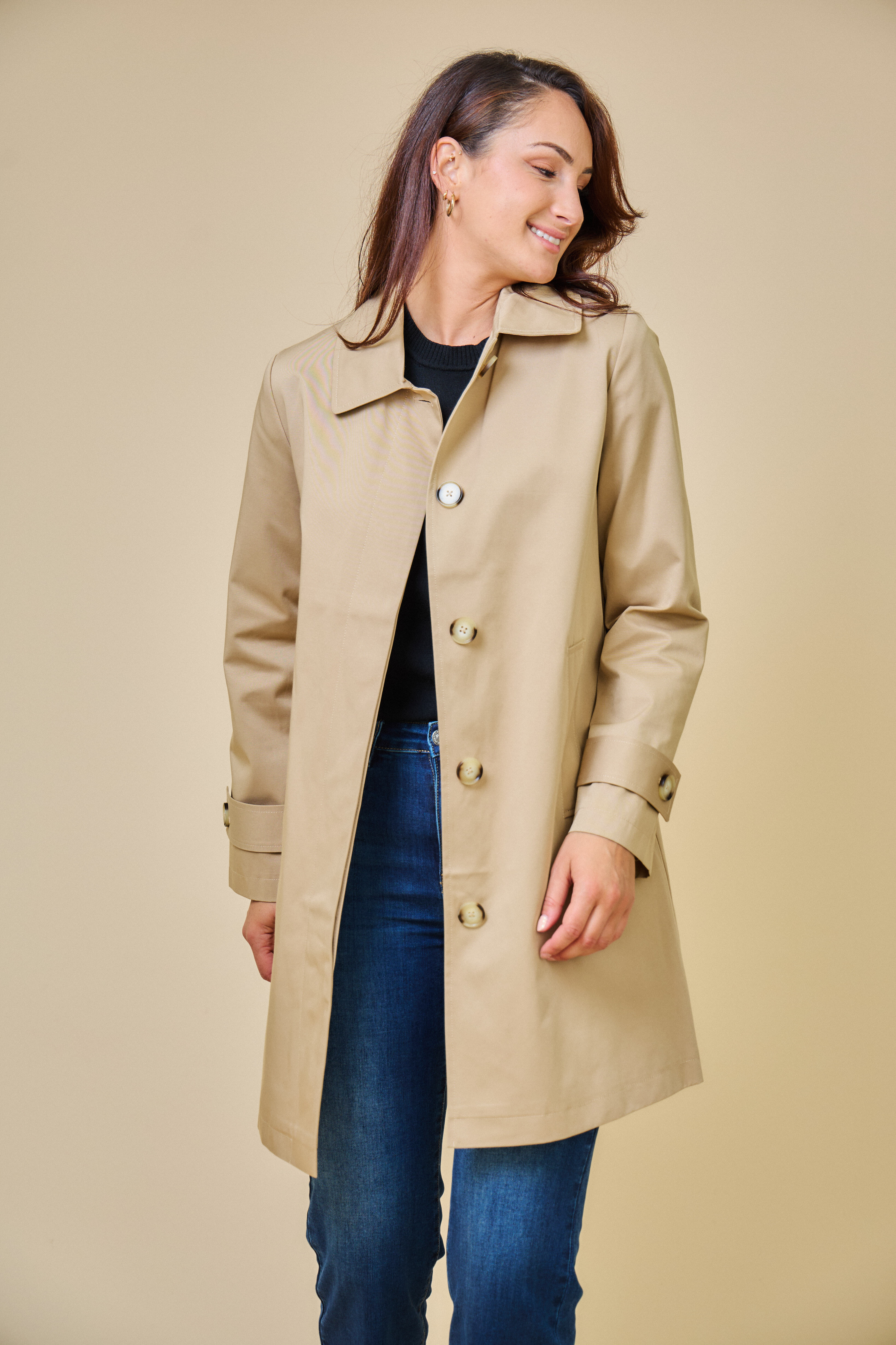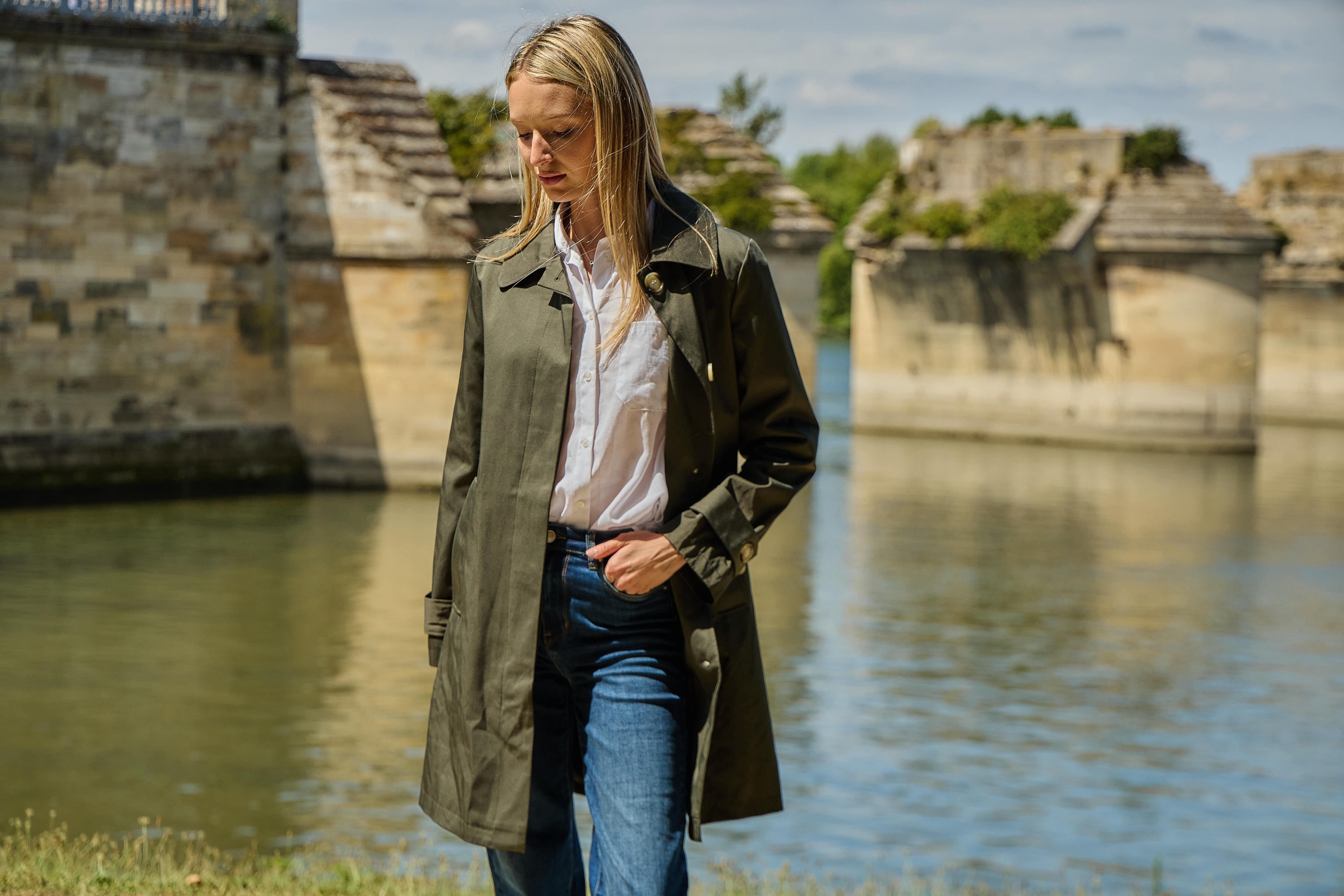 Trenčkotová bunda se zapínáním na knoflíčky. Escandelle Paris