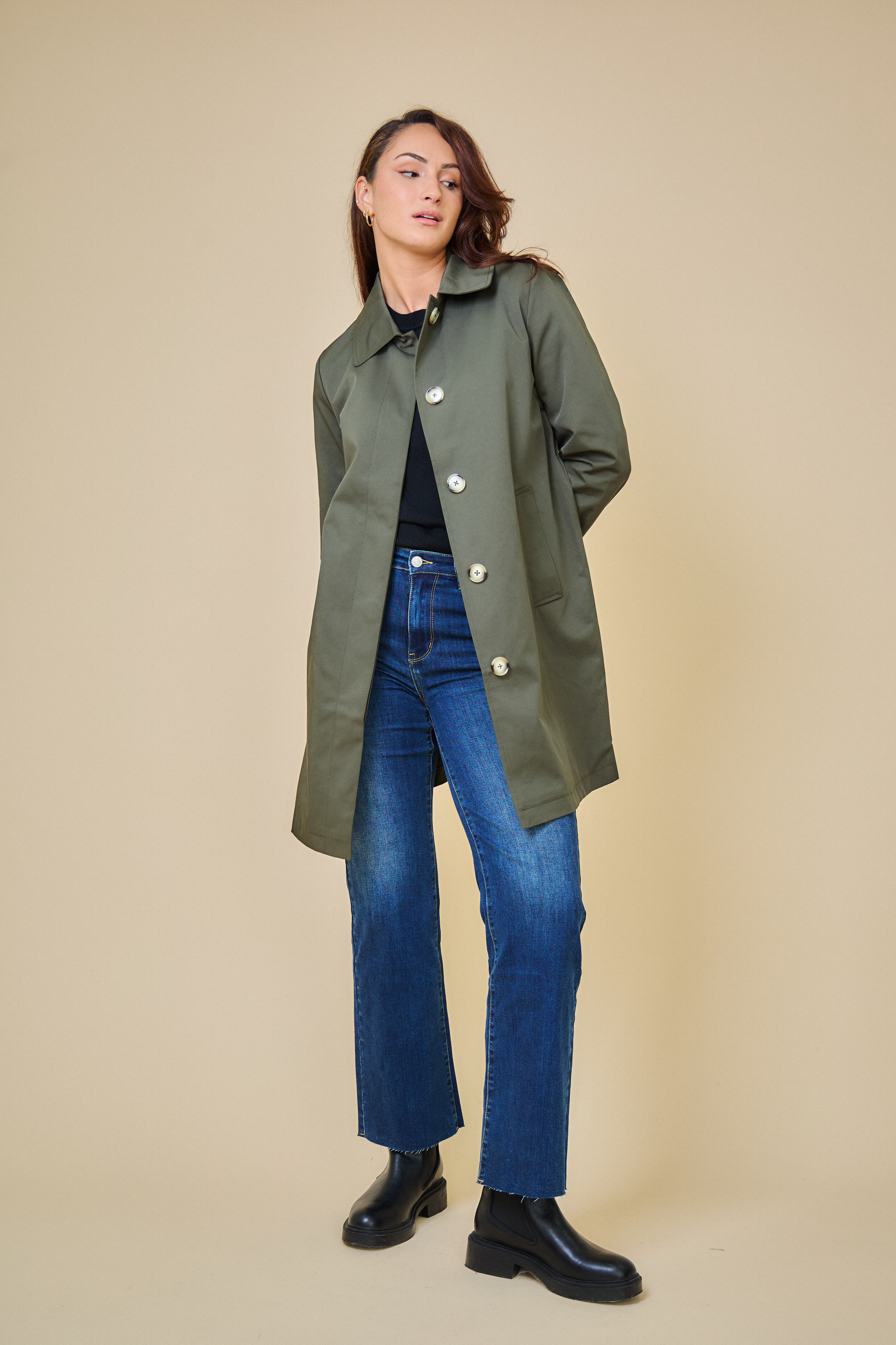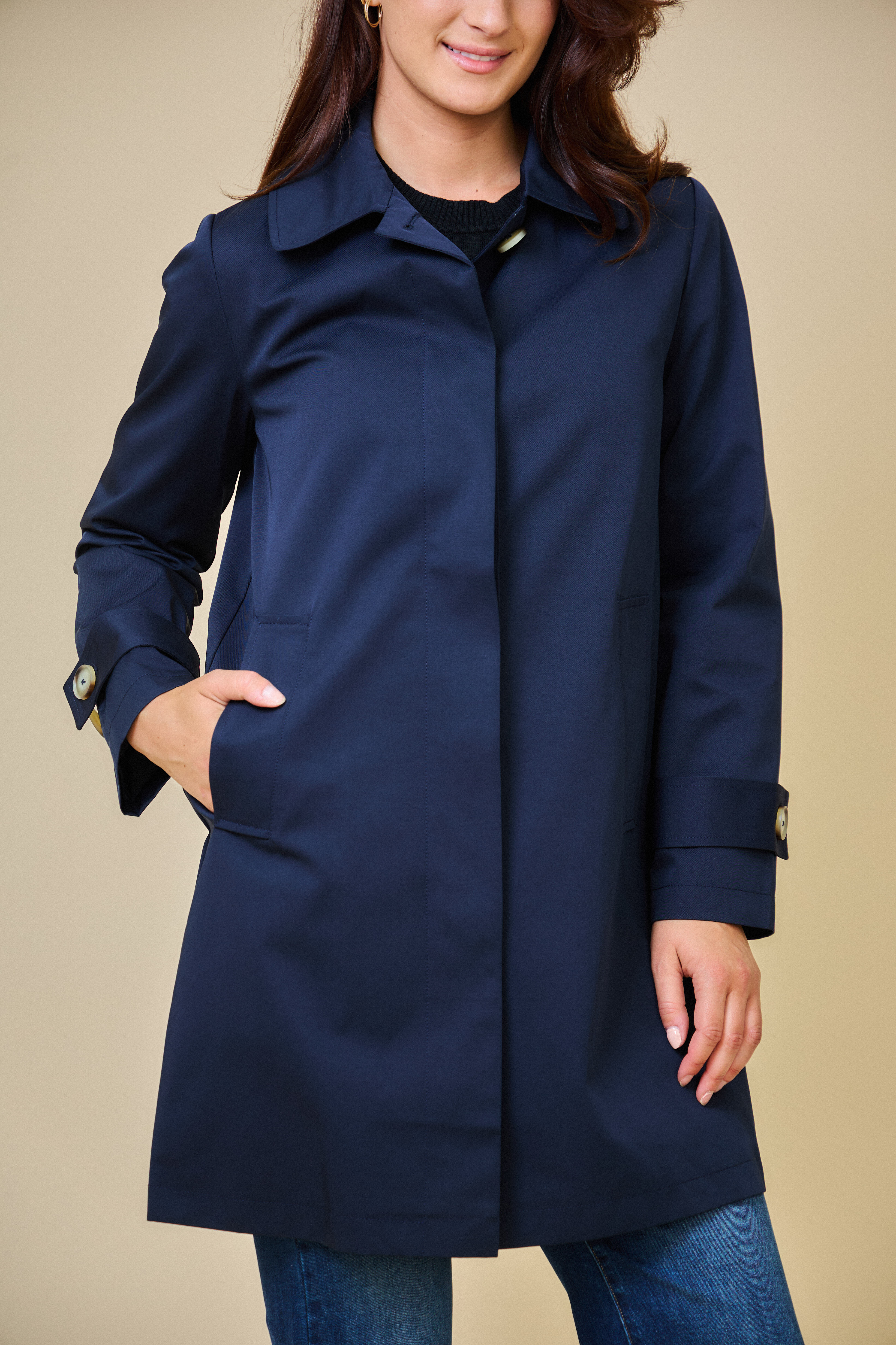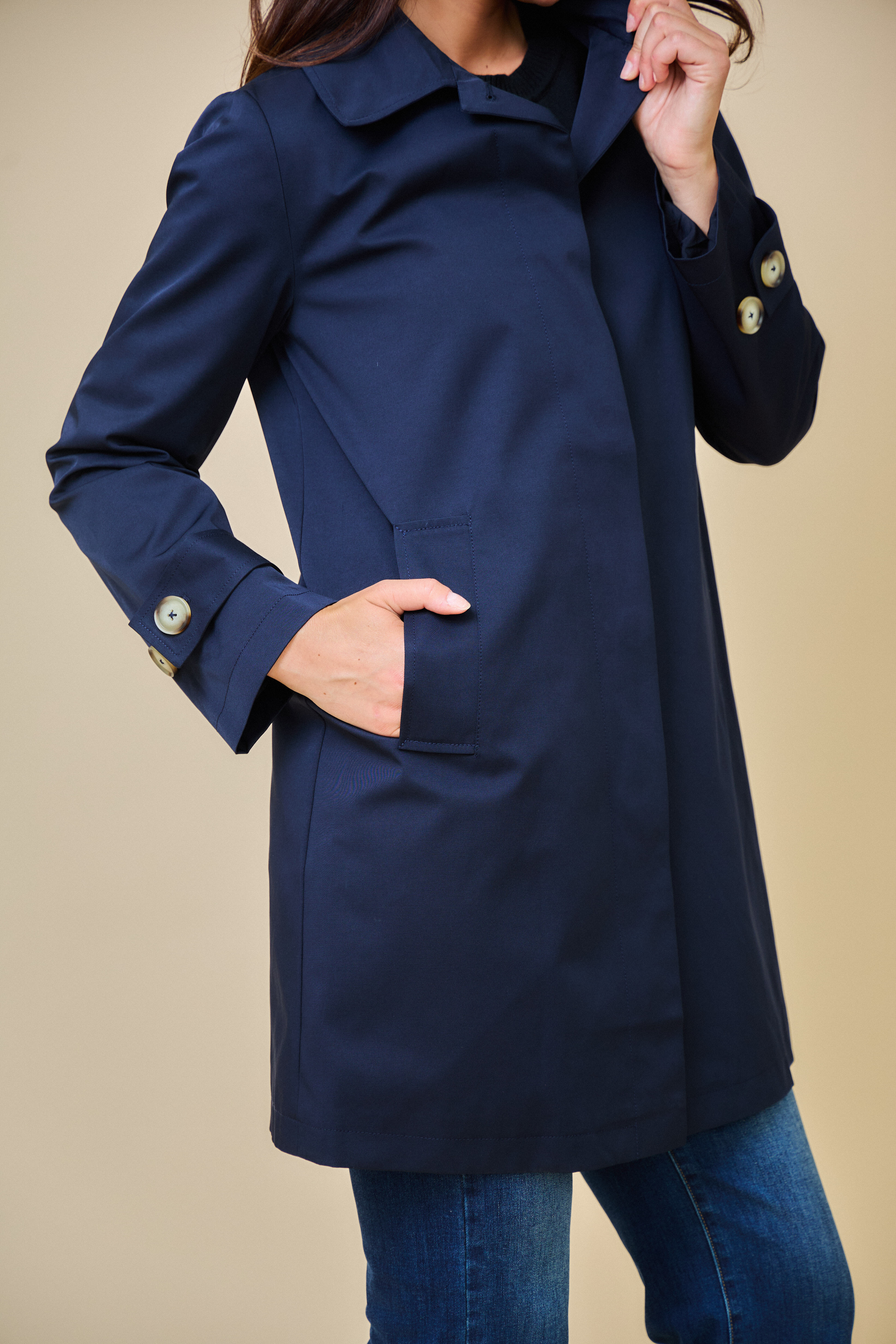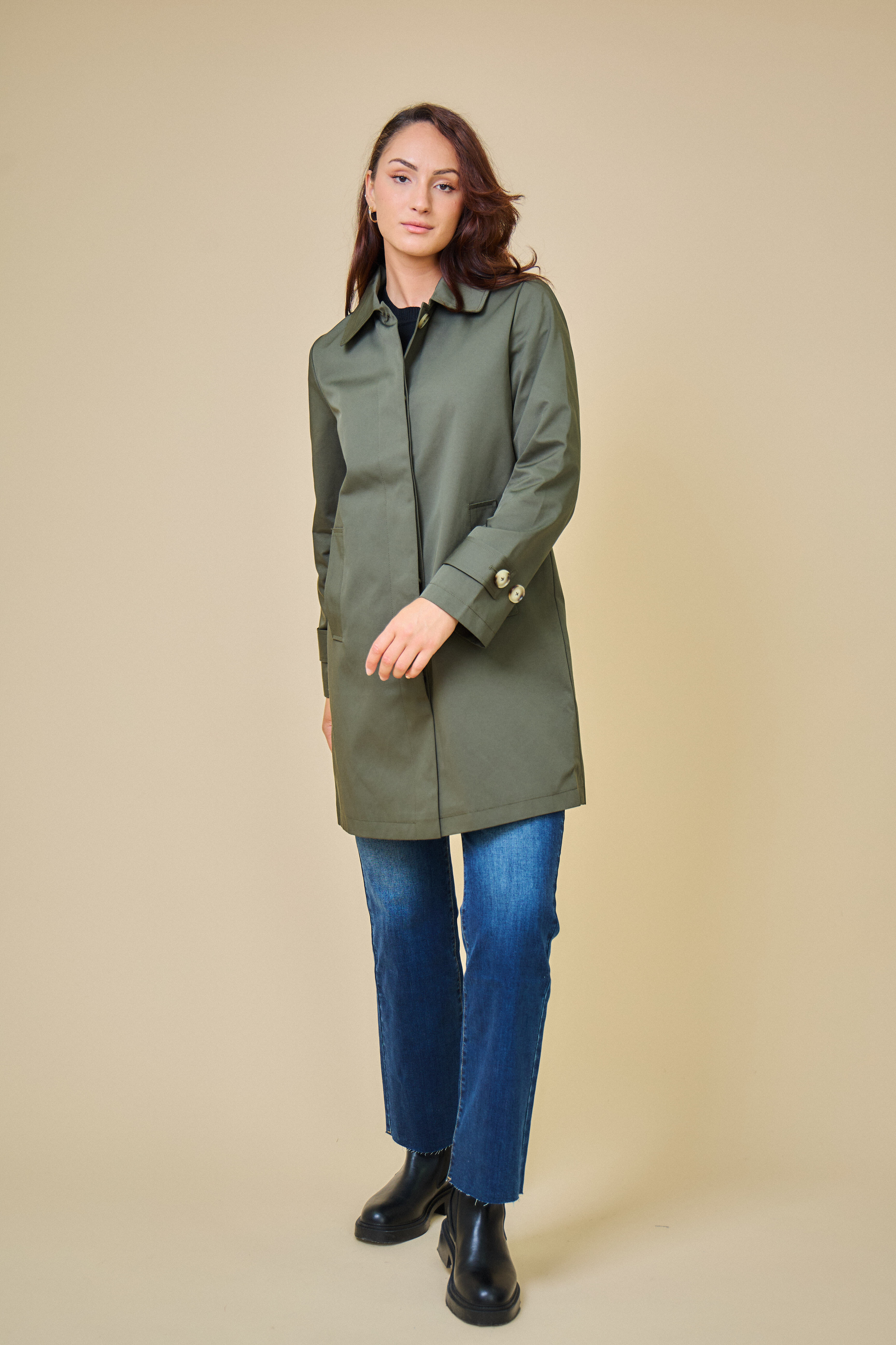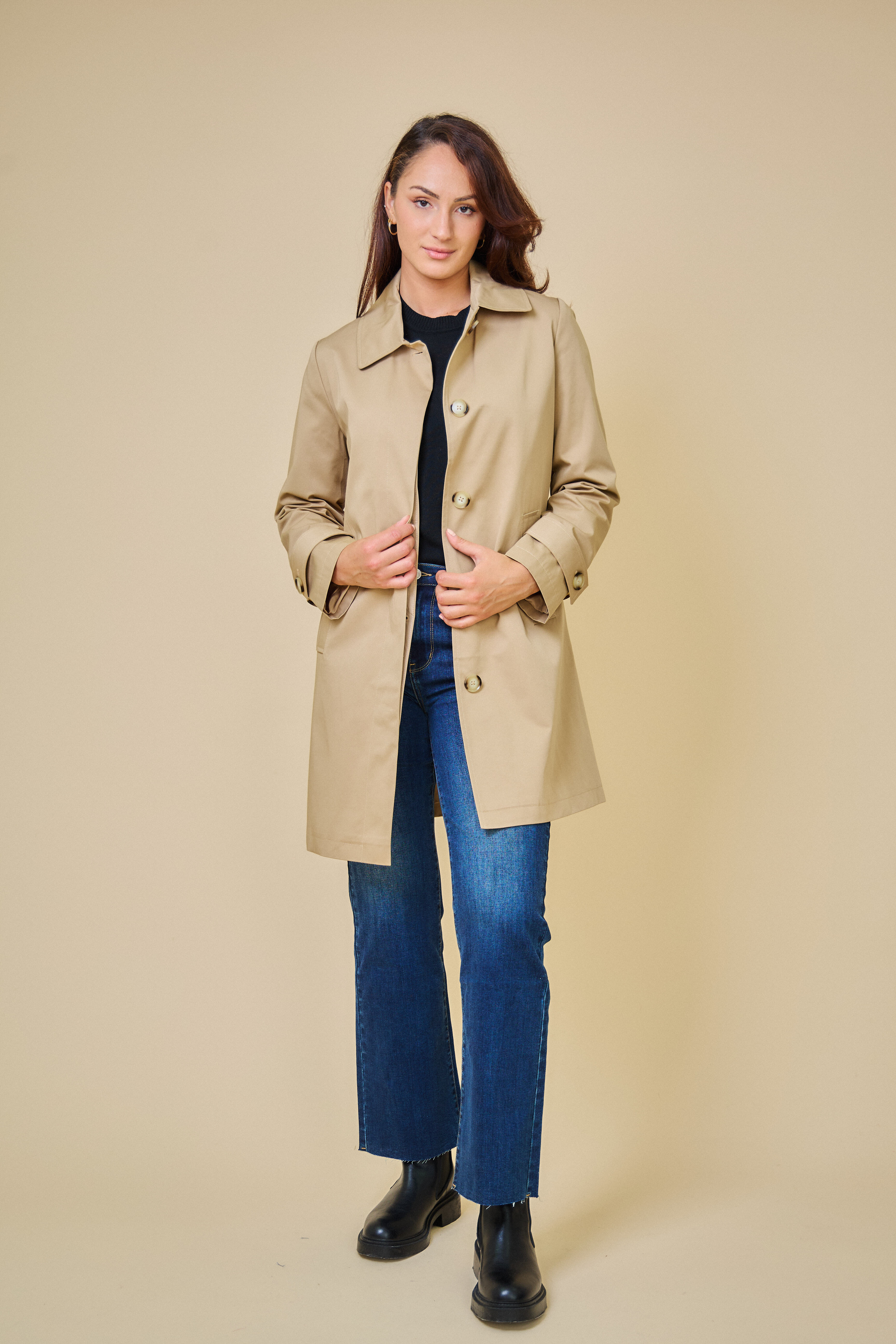 Trenčkotová bunda se zapínáním na knoflíčky. Escandelle Paris