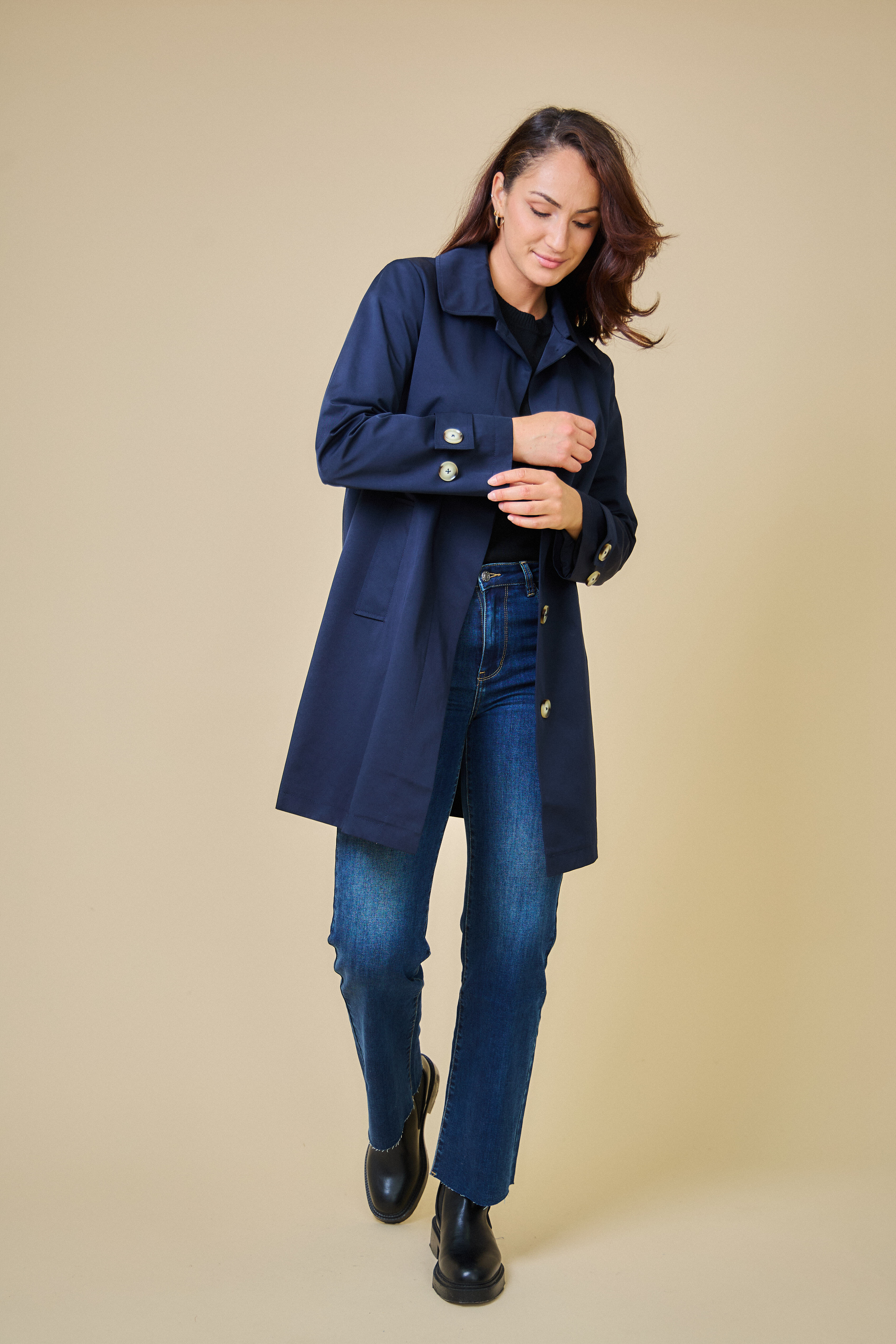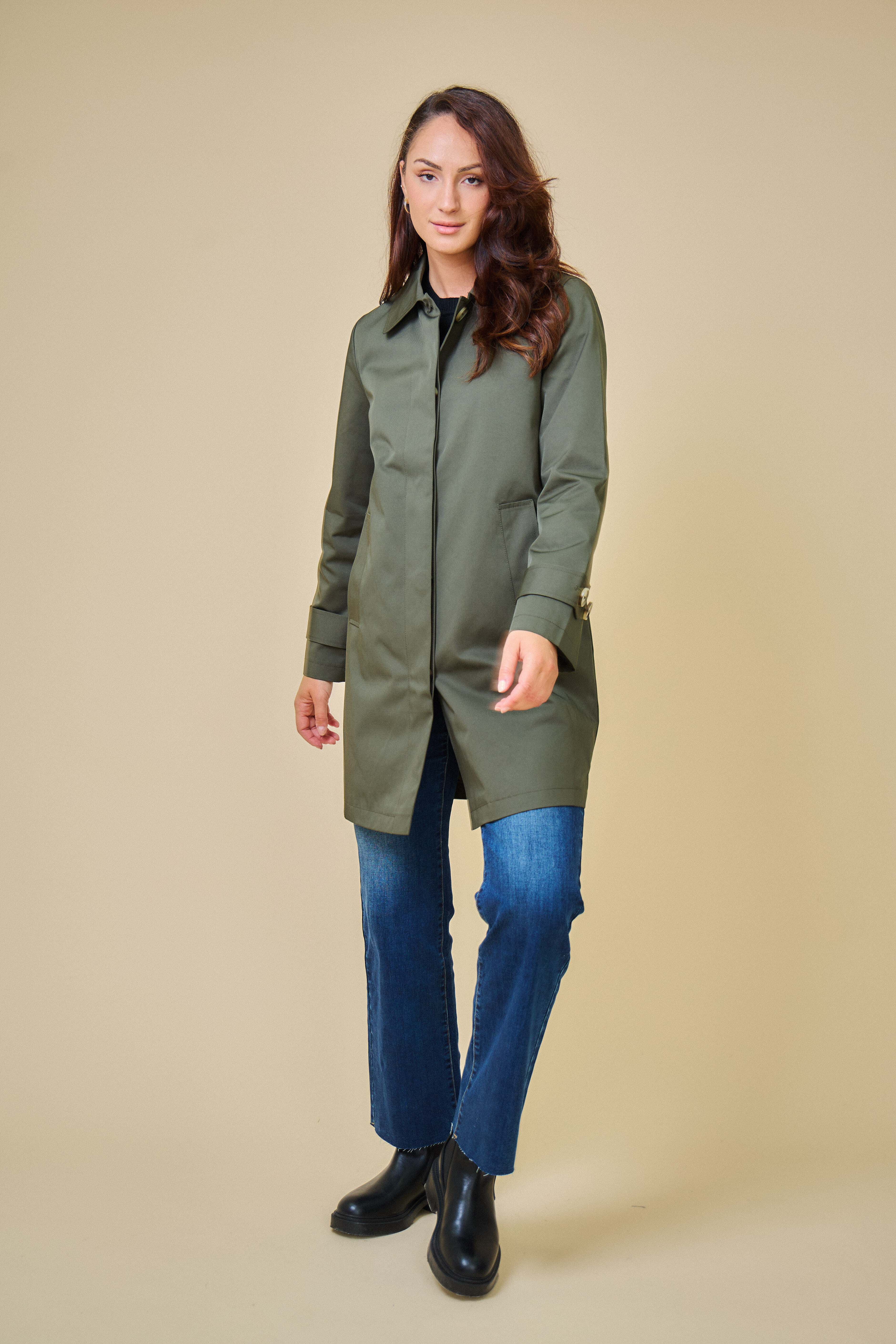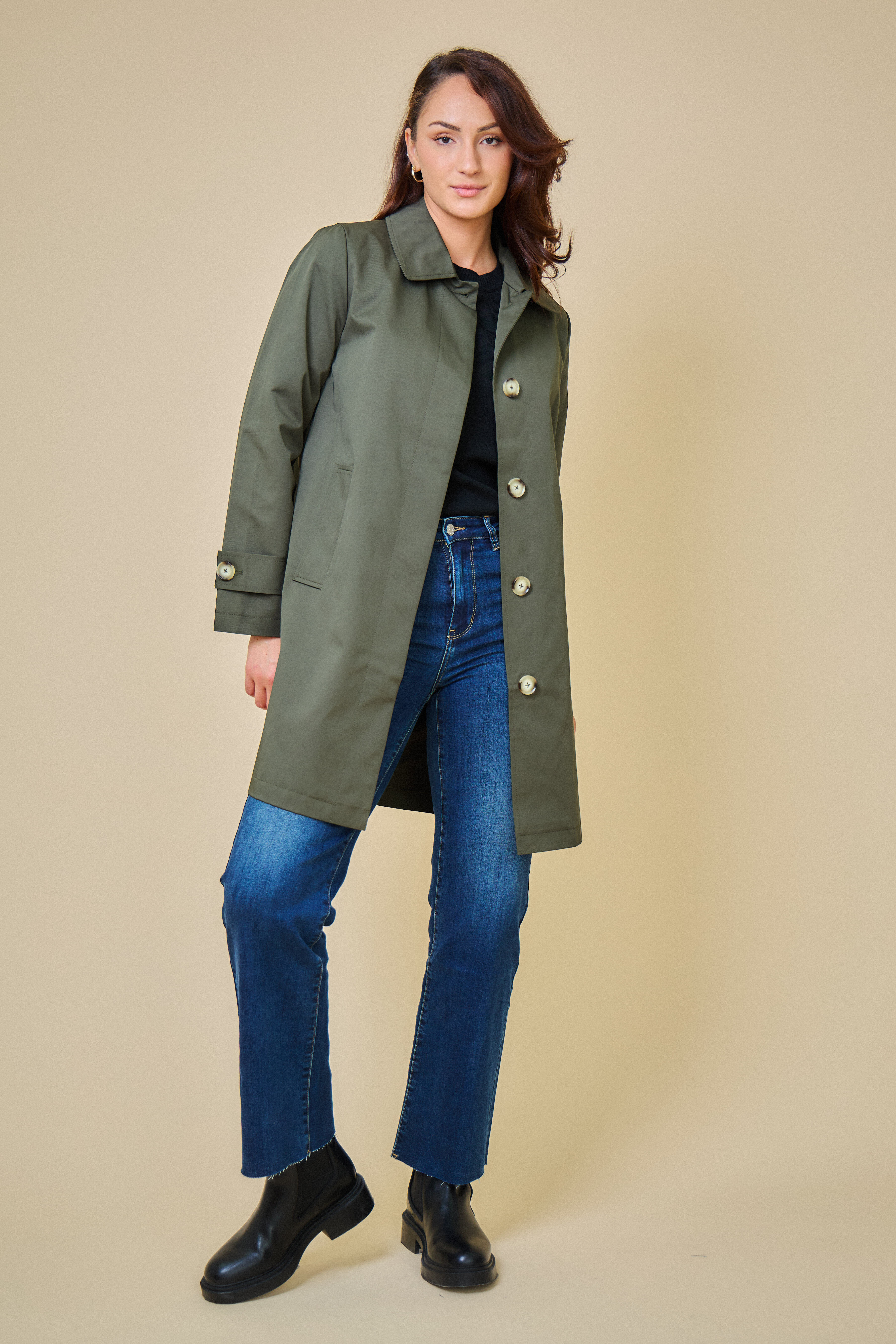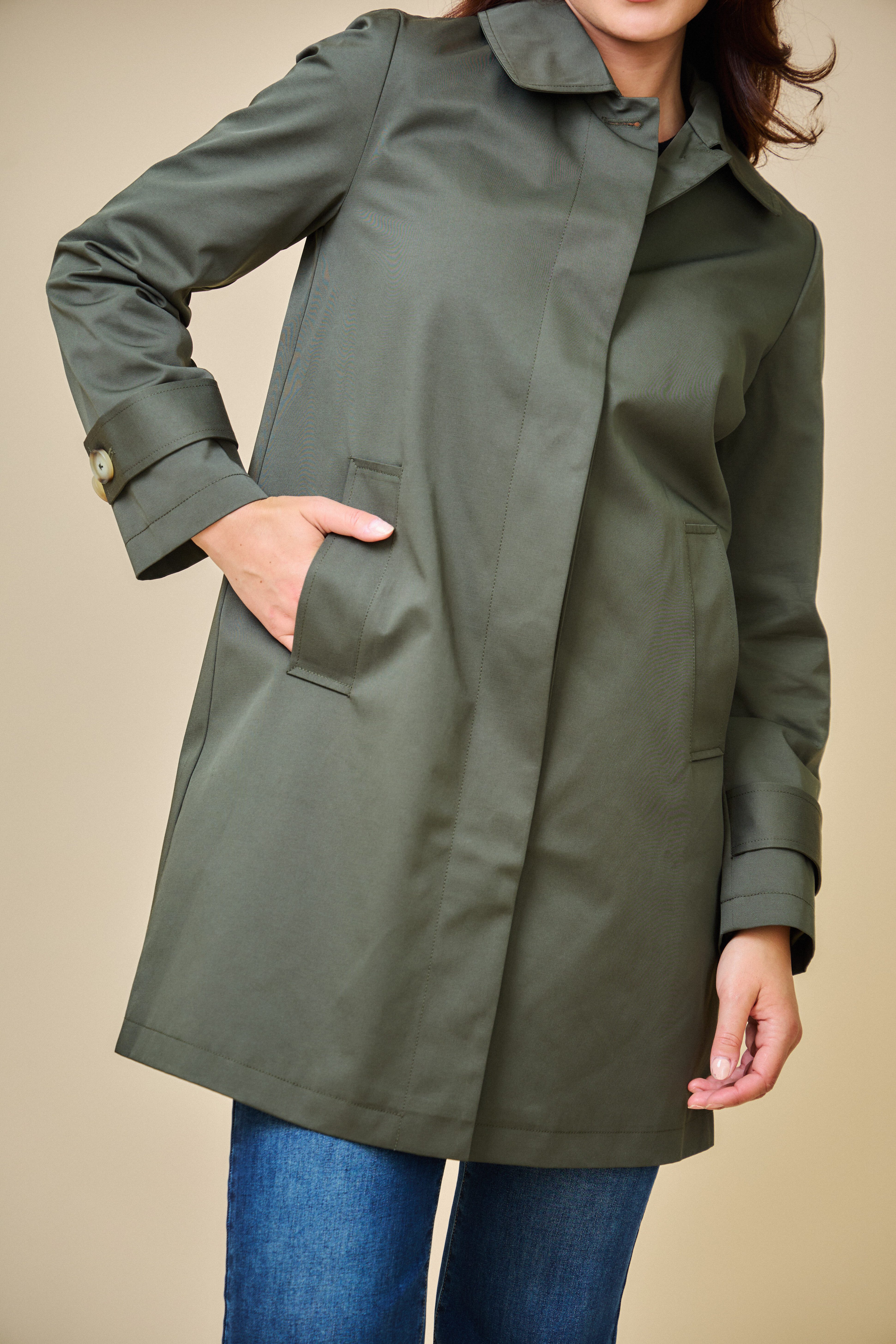 Trenčkotová bunda se zapínáním na knoflíčky. Escandelle Paris