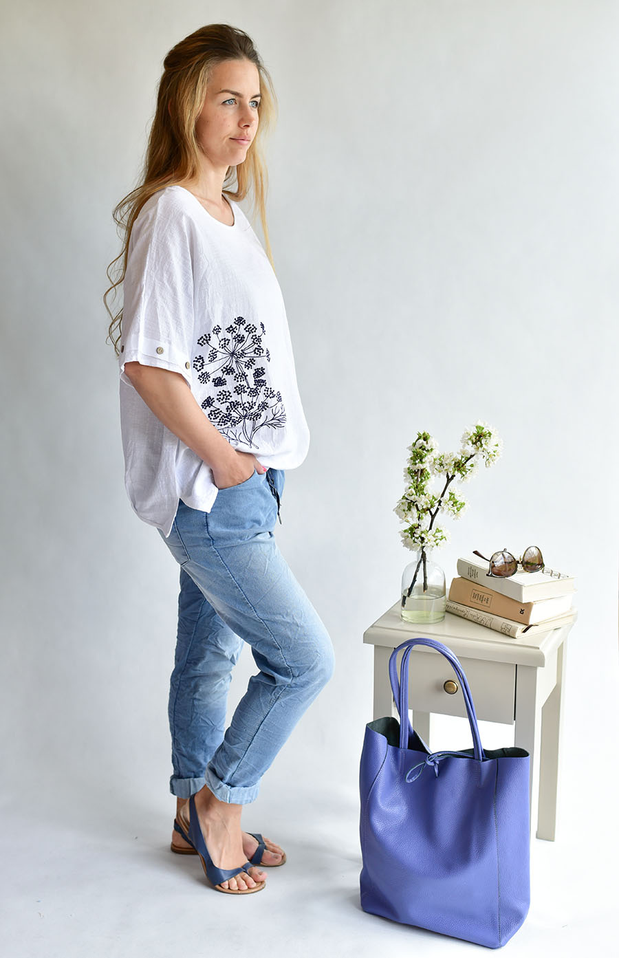 C01-301 halenka len Itálie barva: modrá tmavá, Velikost: Univerzální