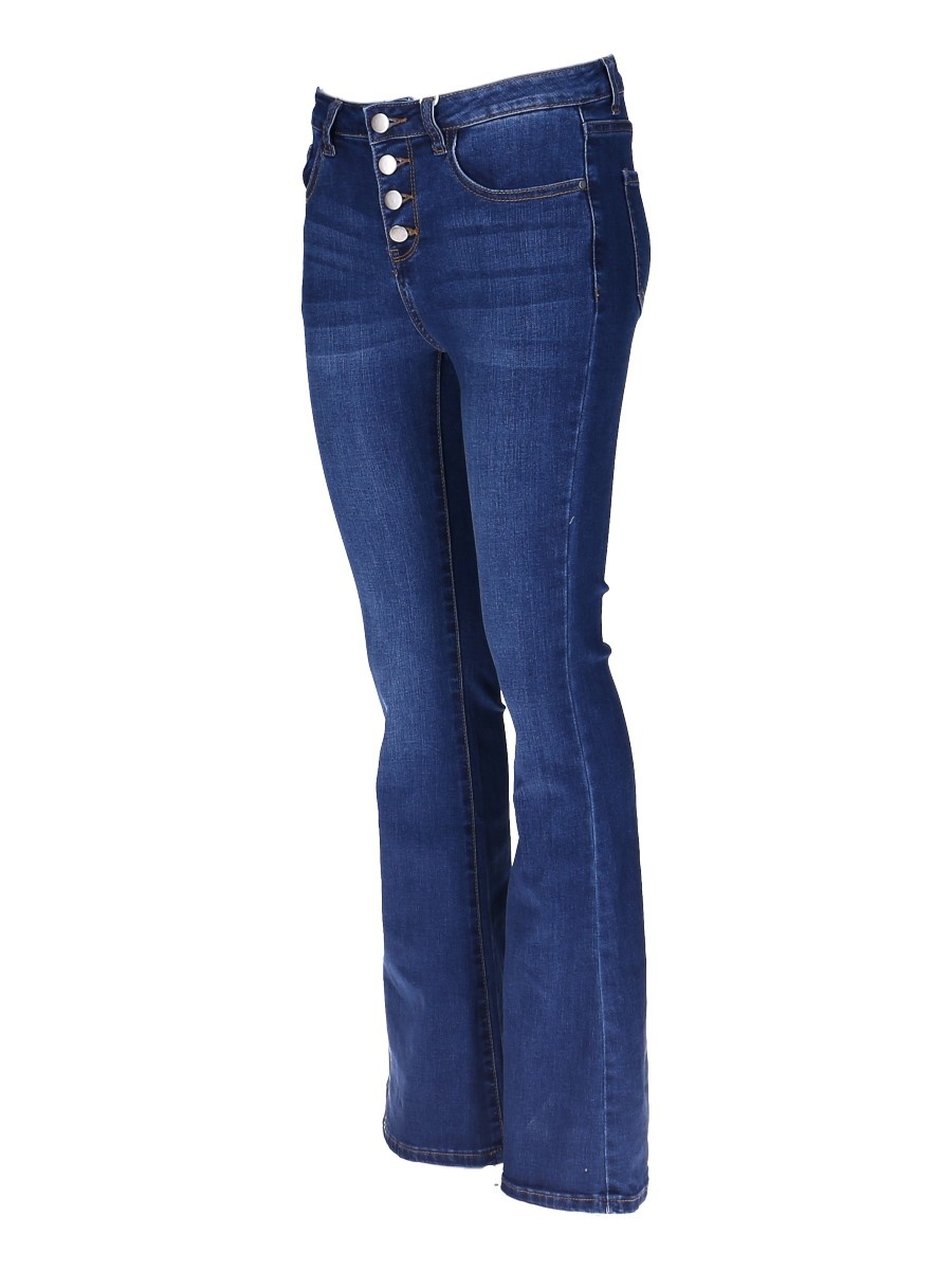 Dámské jeans 2 přední kapsy 2 zadní kapsy zapínání na knoflík a zip poutka na pásek nášivka s