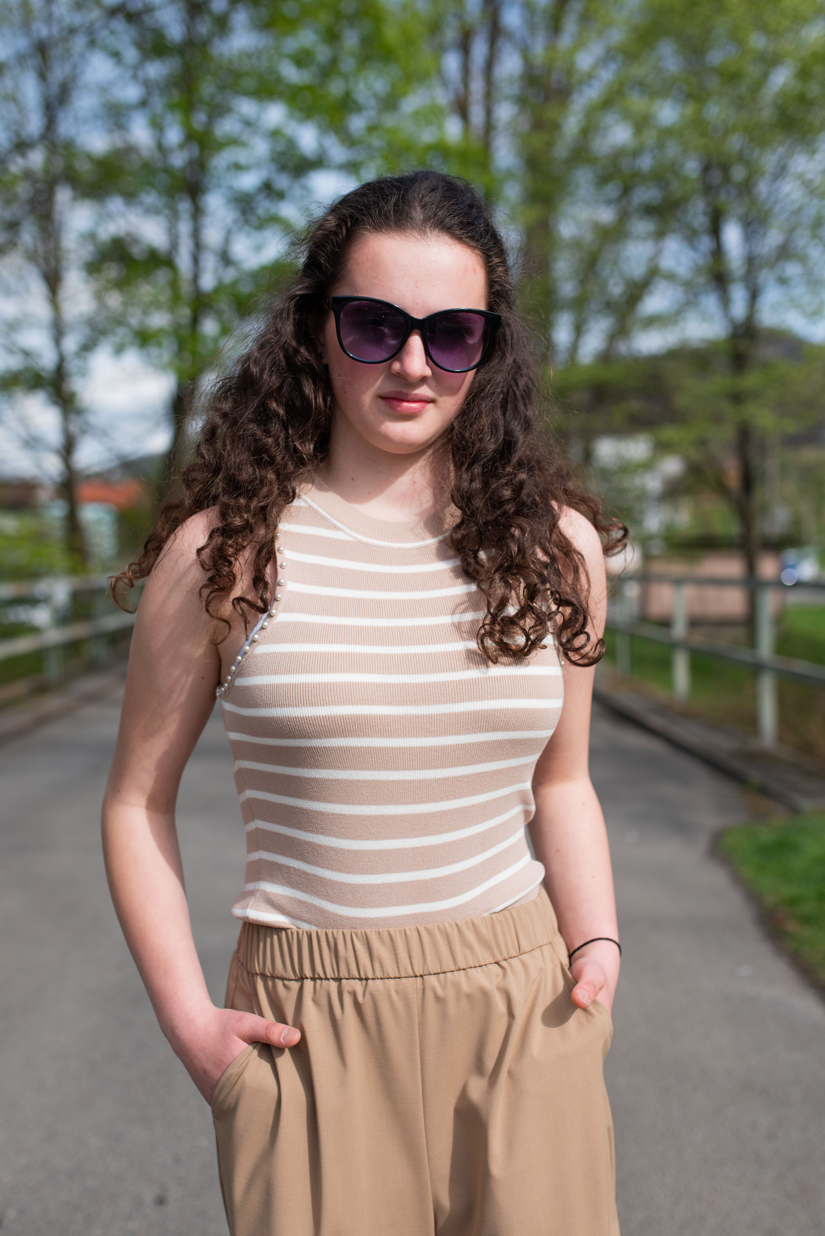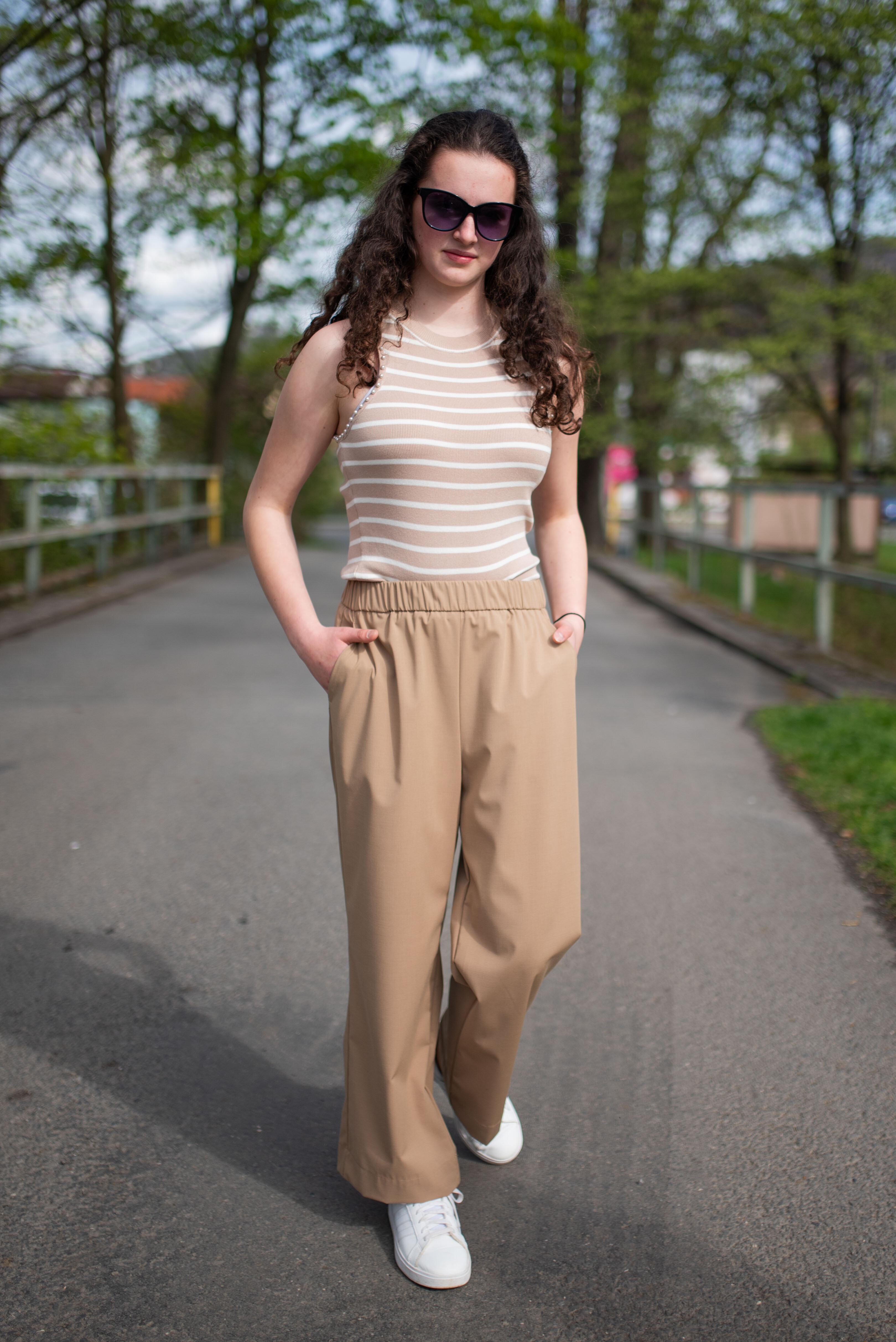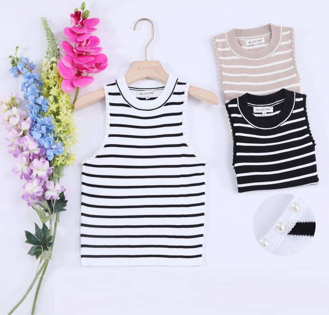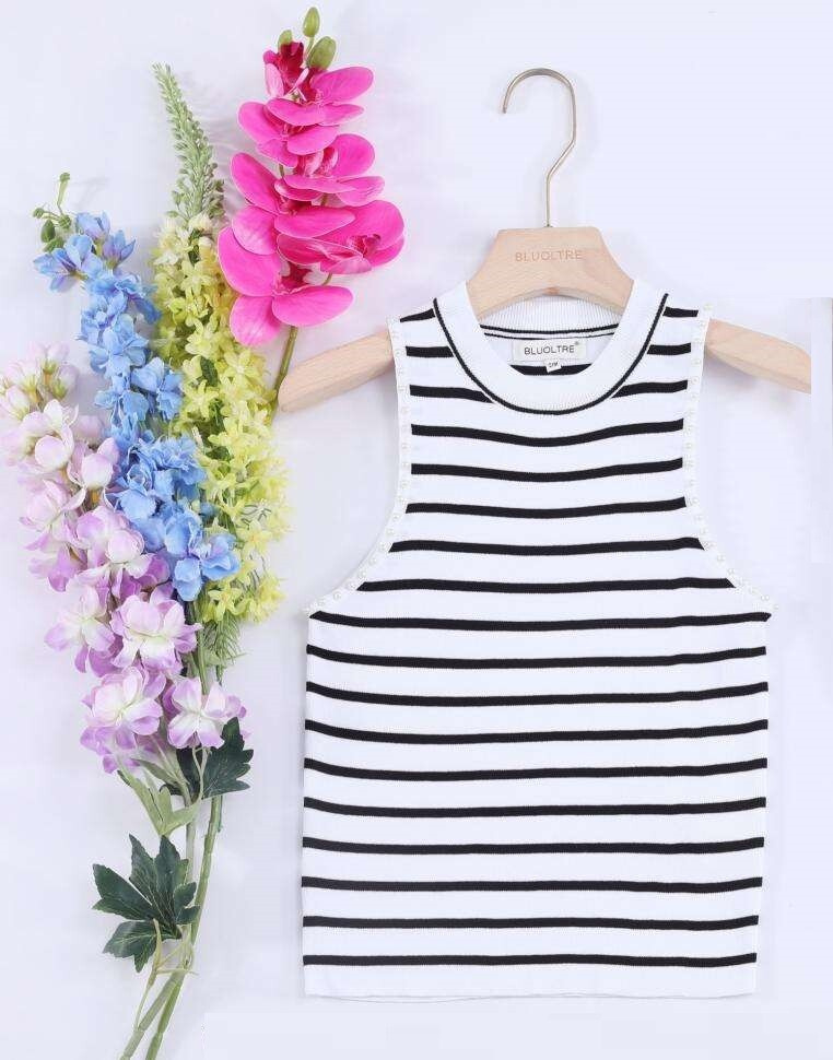 Úpletové crop top tílko s proužkem, pružný úplet