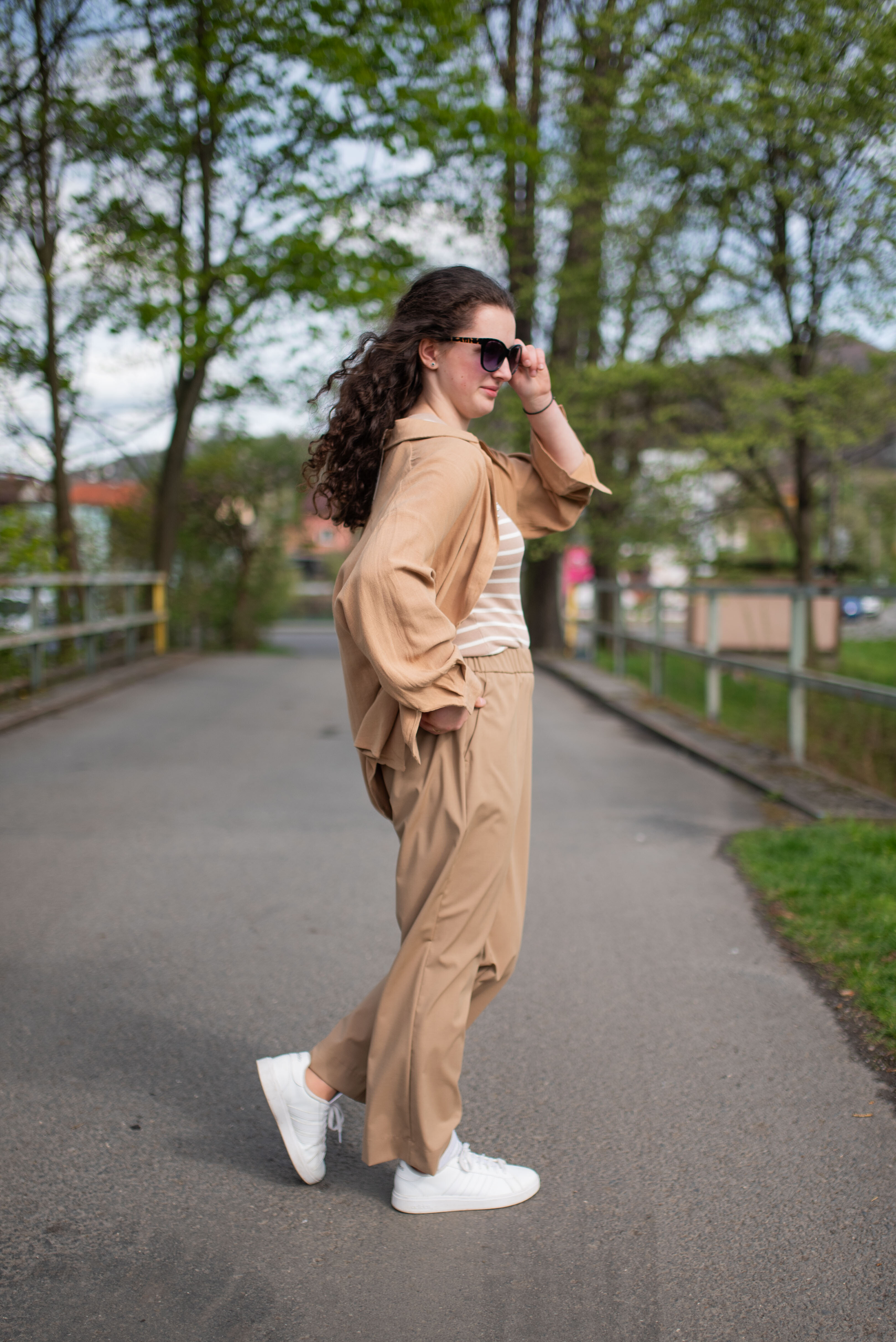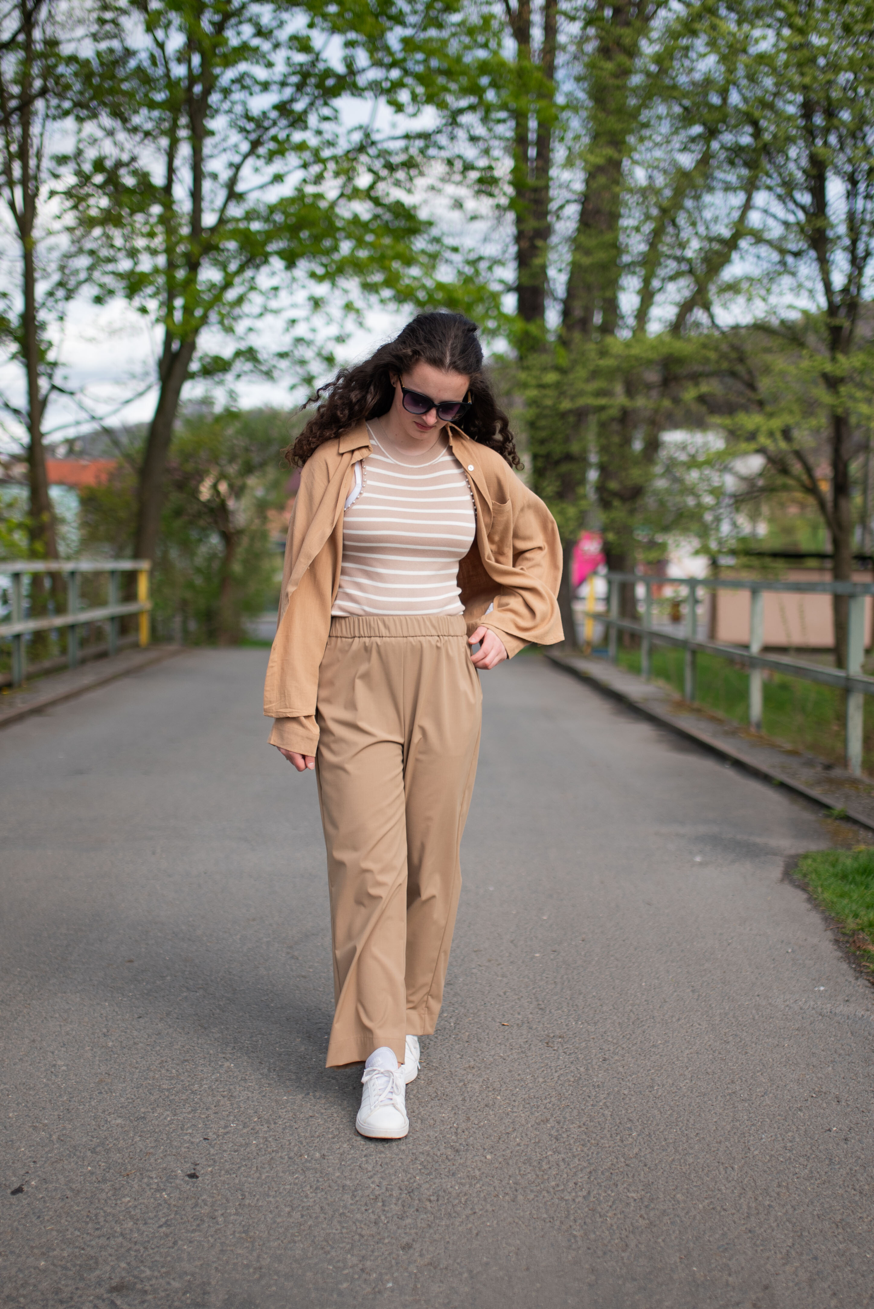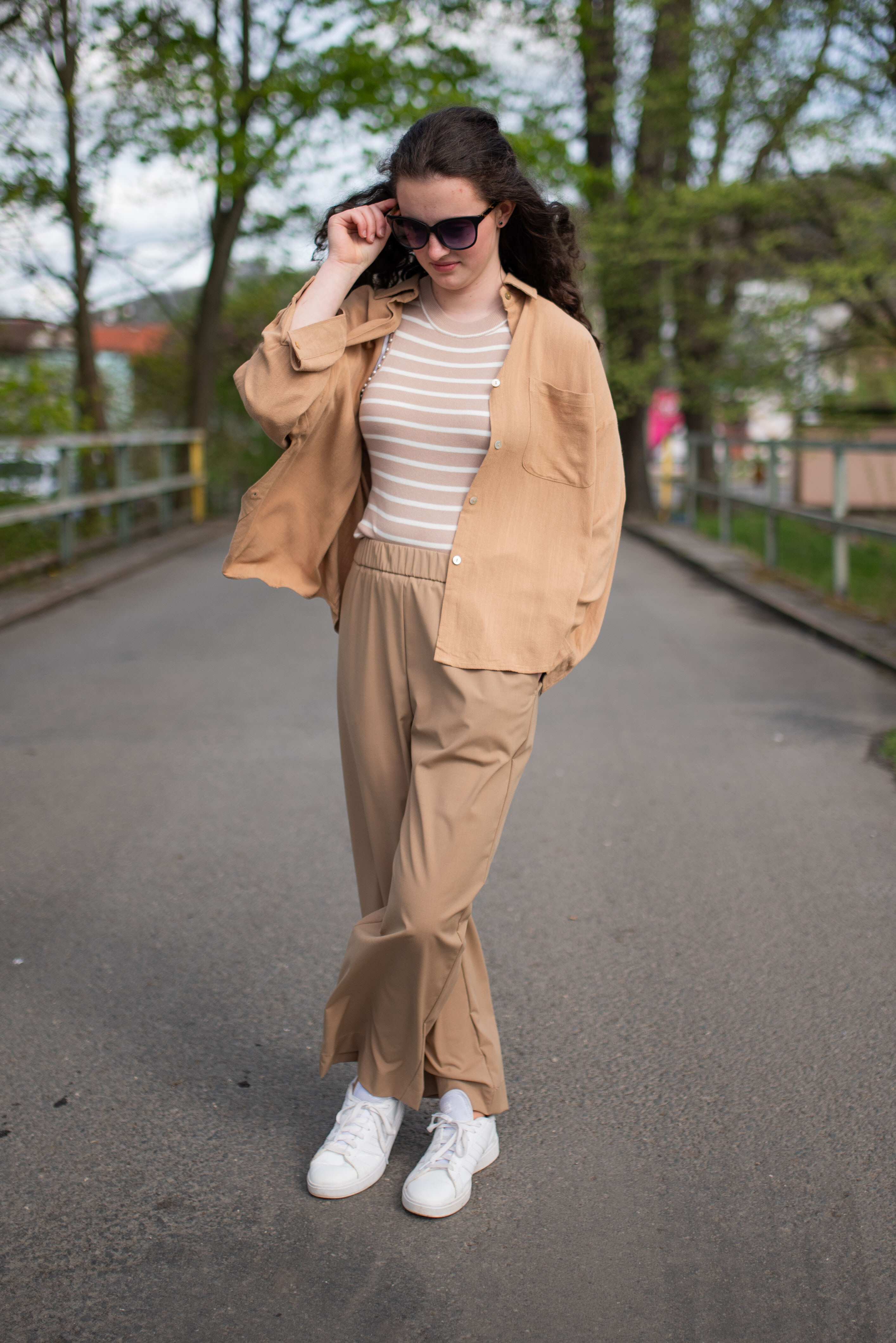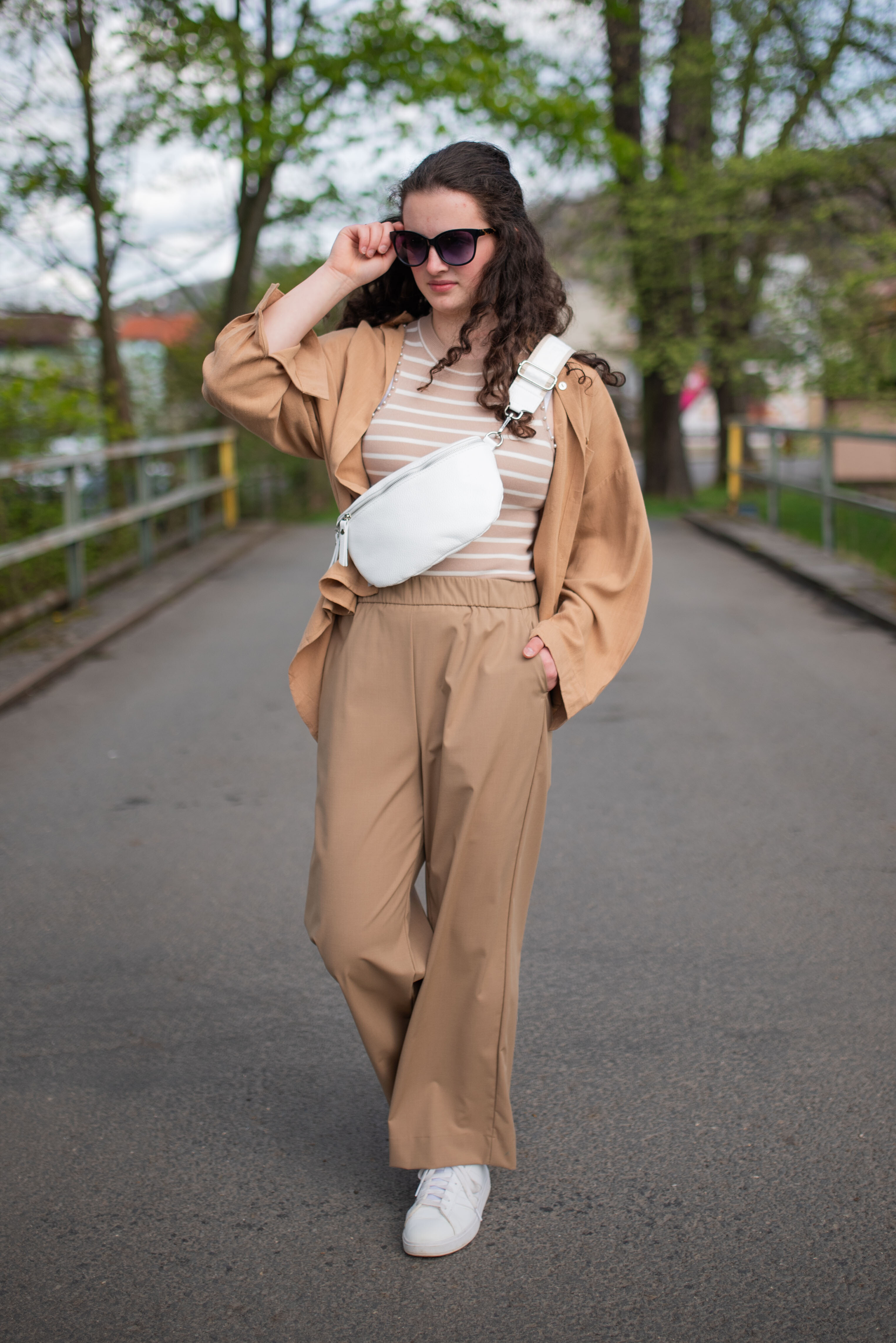 Úpletové crop top tílko s proužkem, pružný úplet