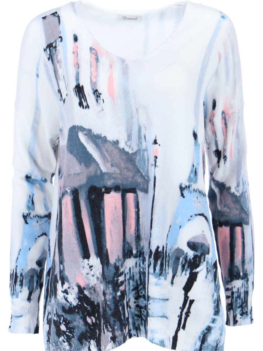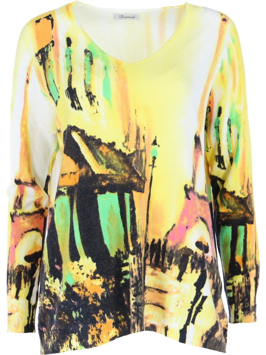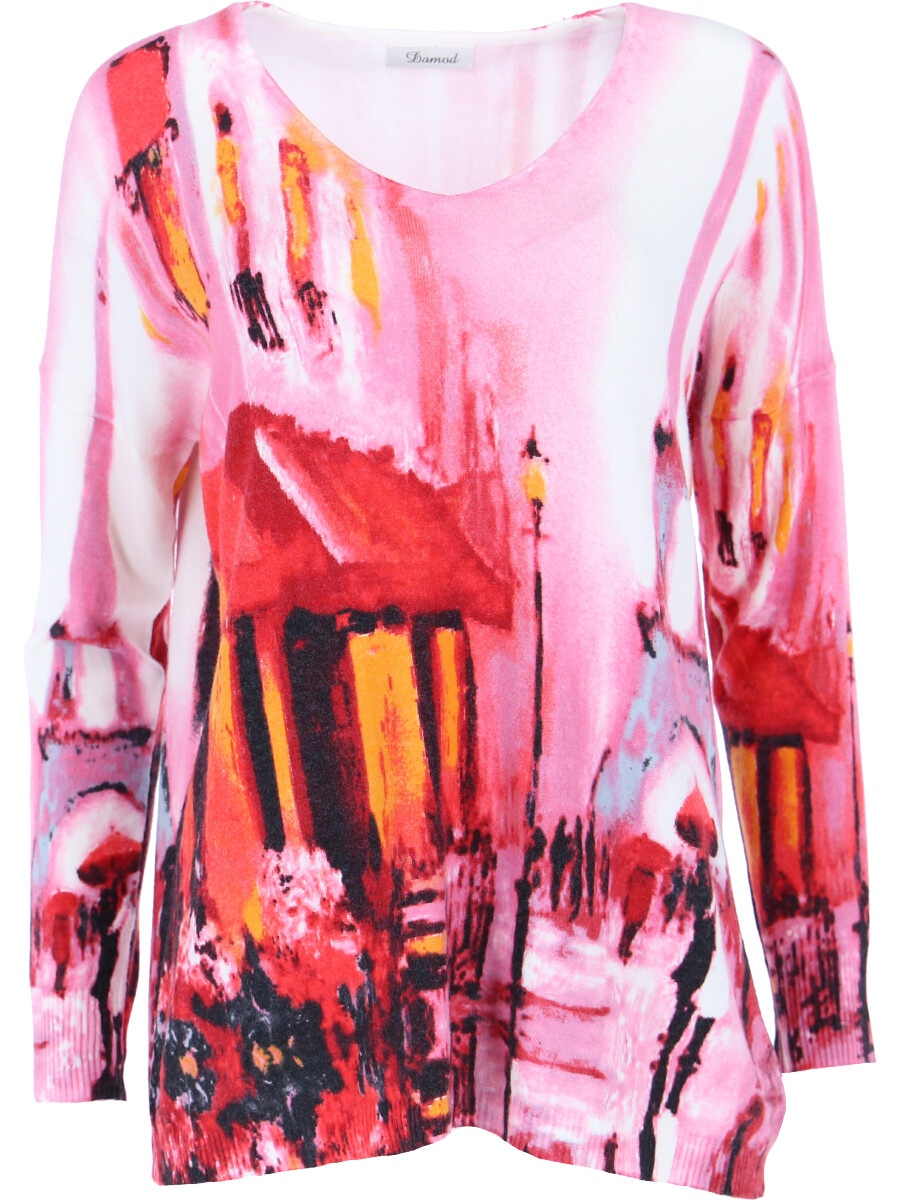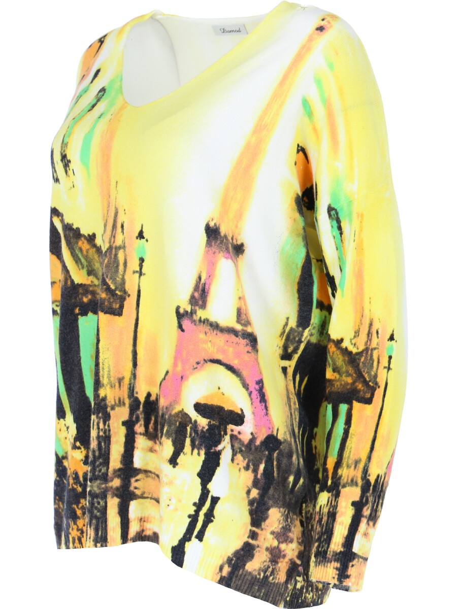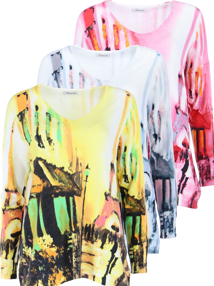 Módní úpletový svetřík s potiskem, Lady velikost-oversized