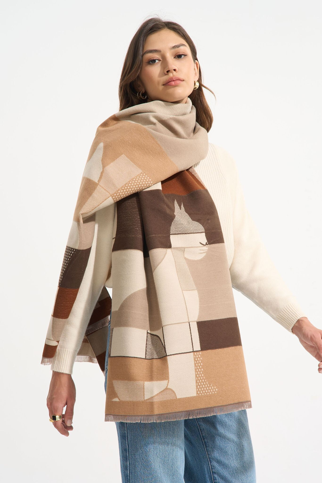 Dámská elegantní šála se zvířecím vzorem koček.