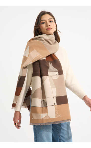 Dámská šála vzor kočka E-09378