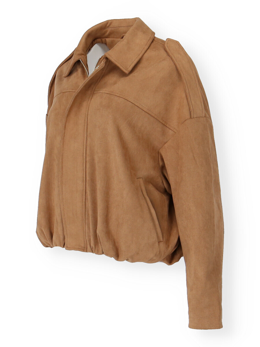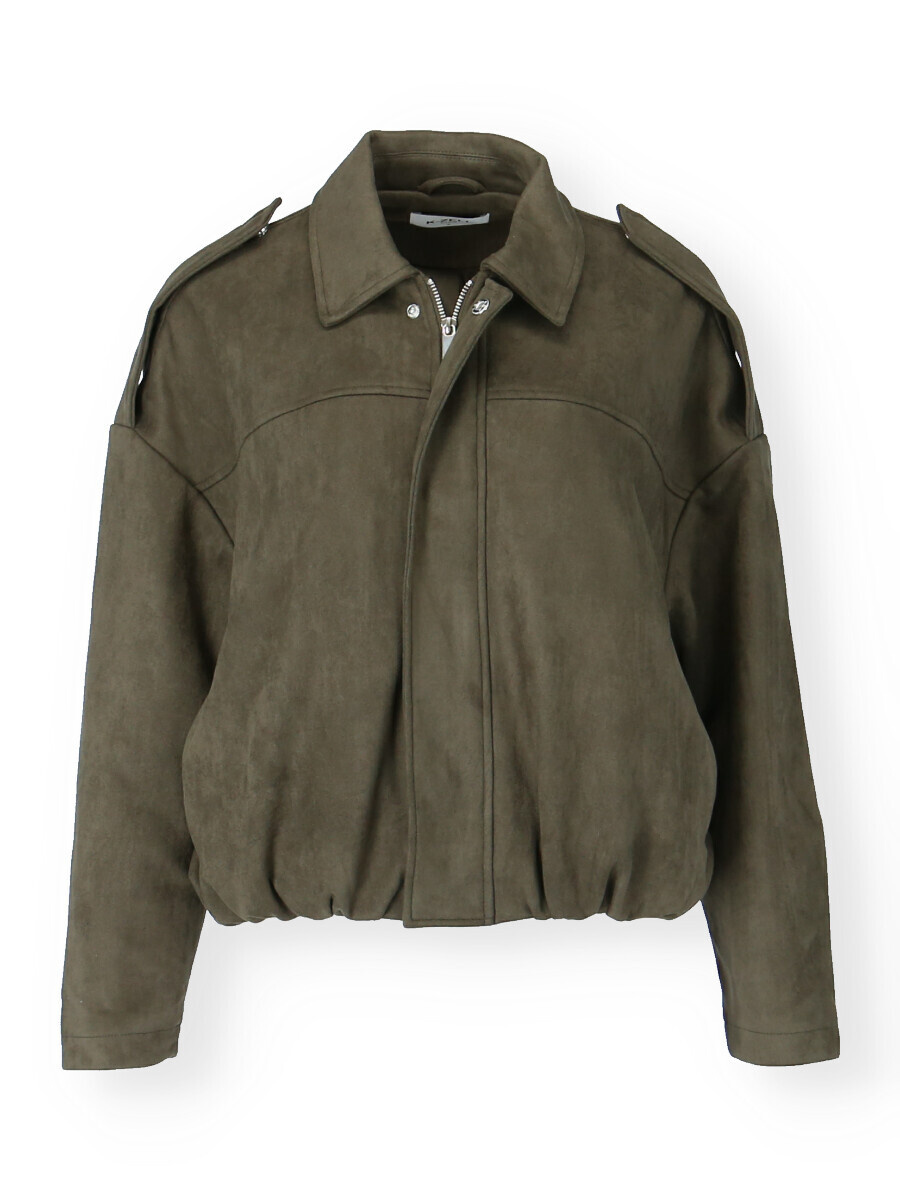 Stylová bunda krátká oversized střihu. Bunda se zapínáním na zip a cvoky, řasení ve spodní části.