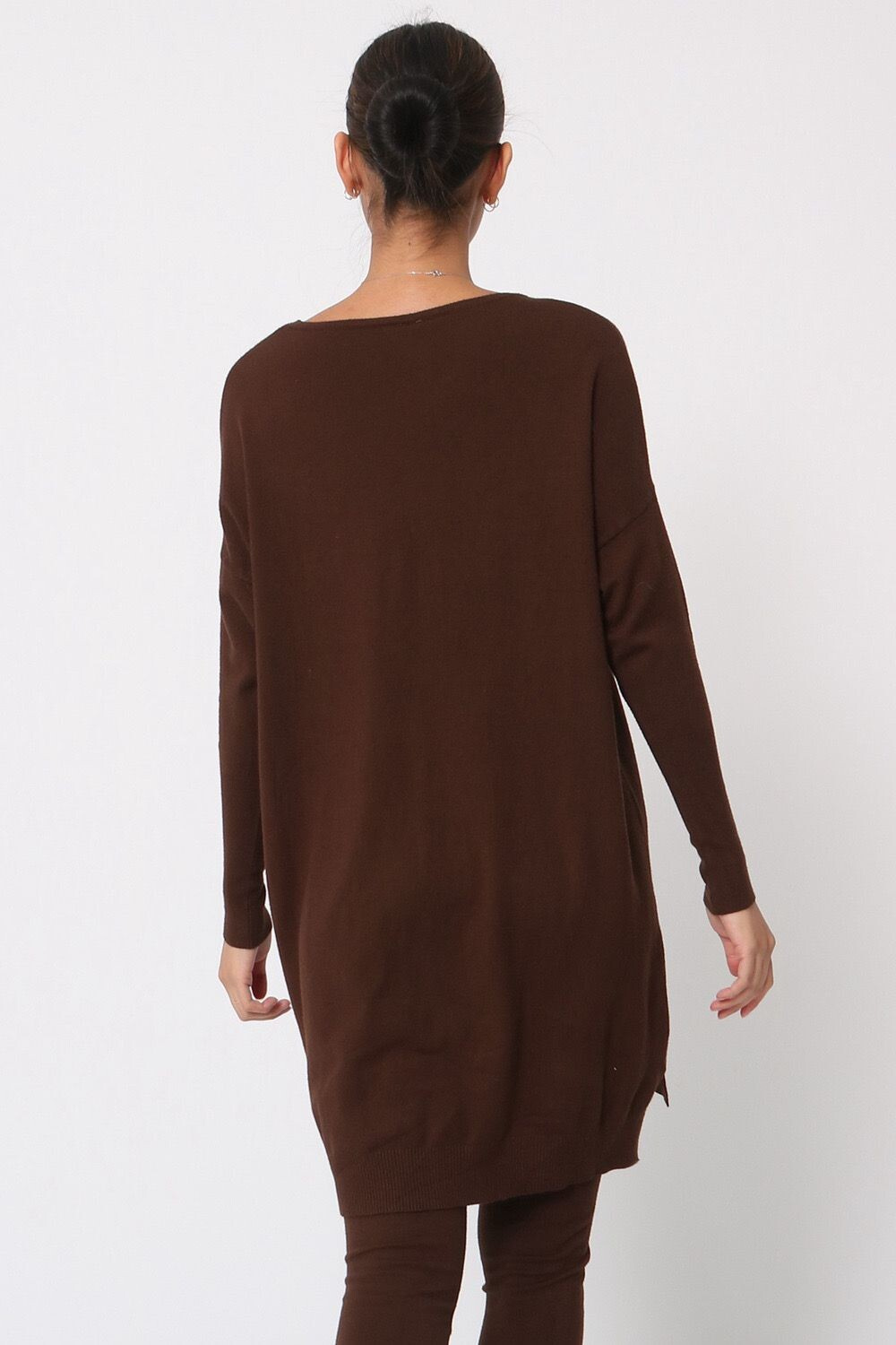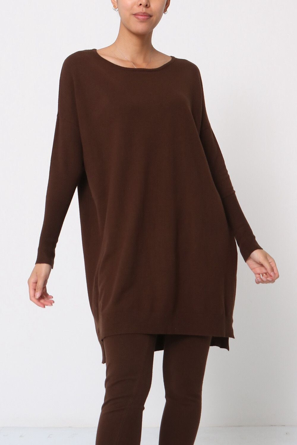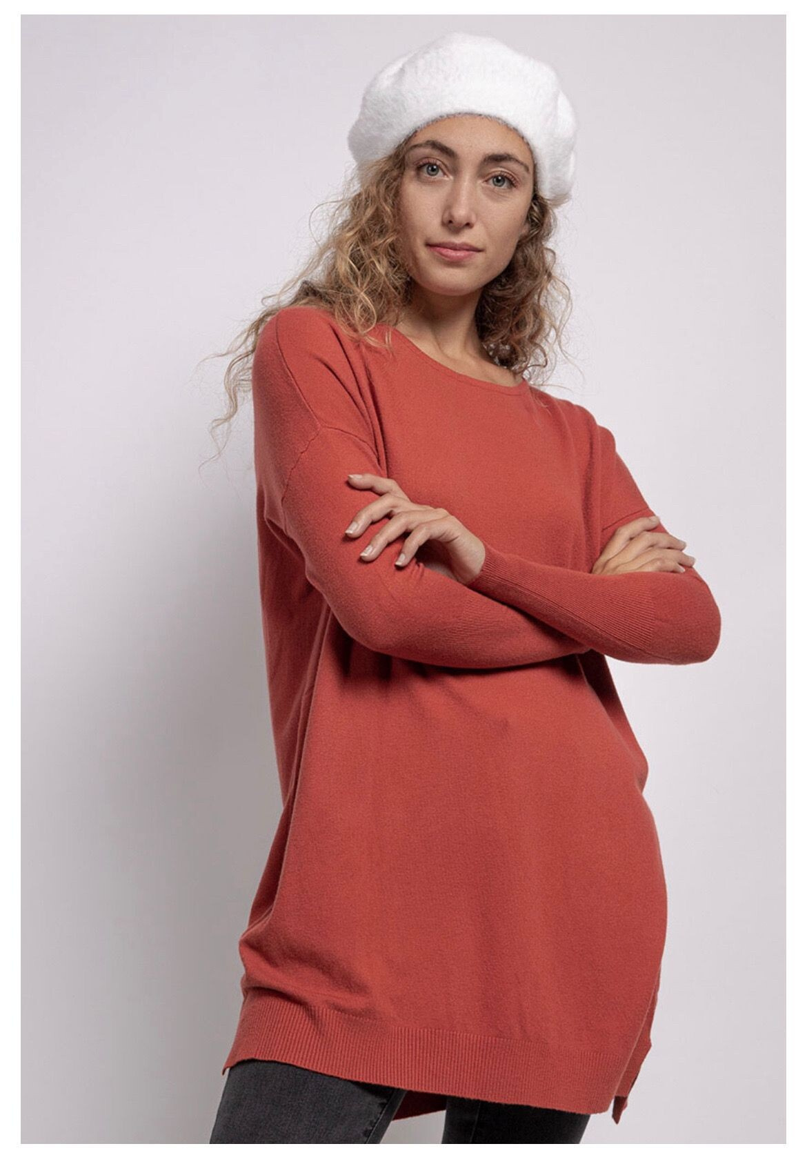 Dámská basic tunika z úpletového materiálu. Tunika je volnějšího střihu s kulatým výstřihem.