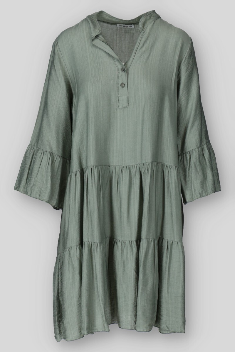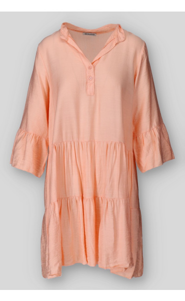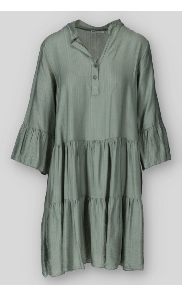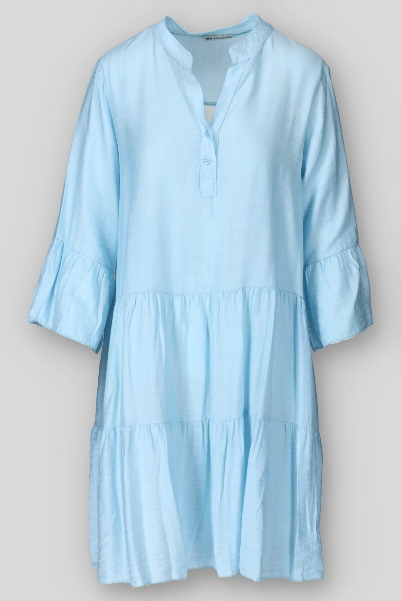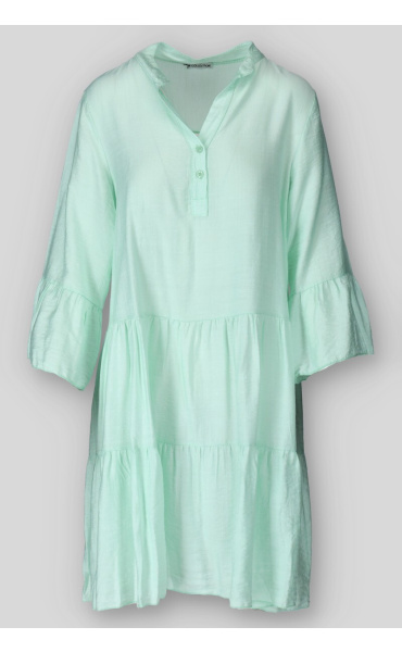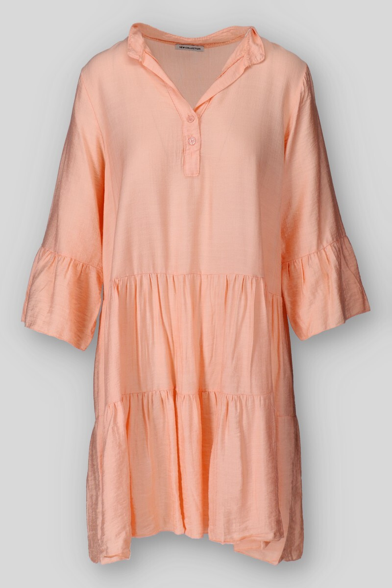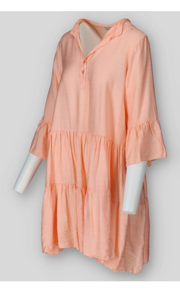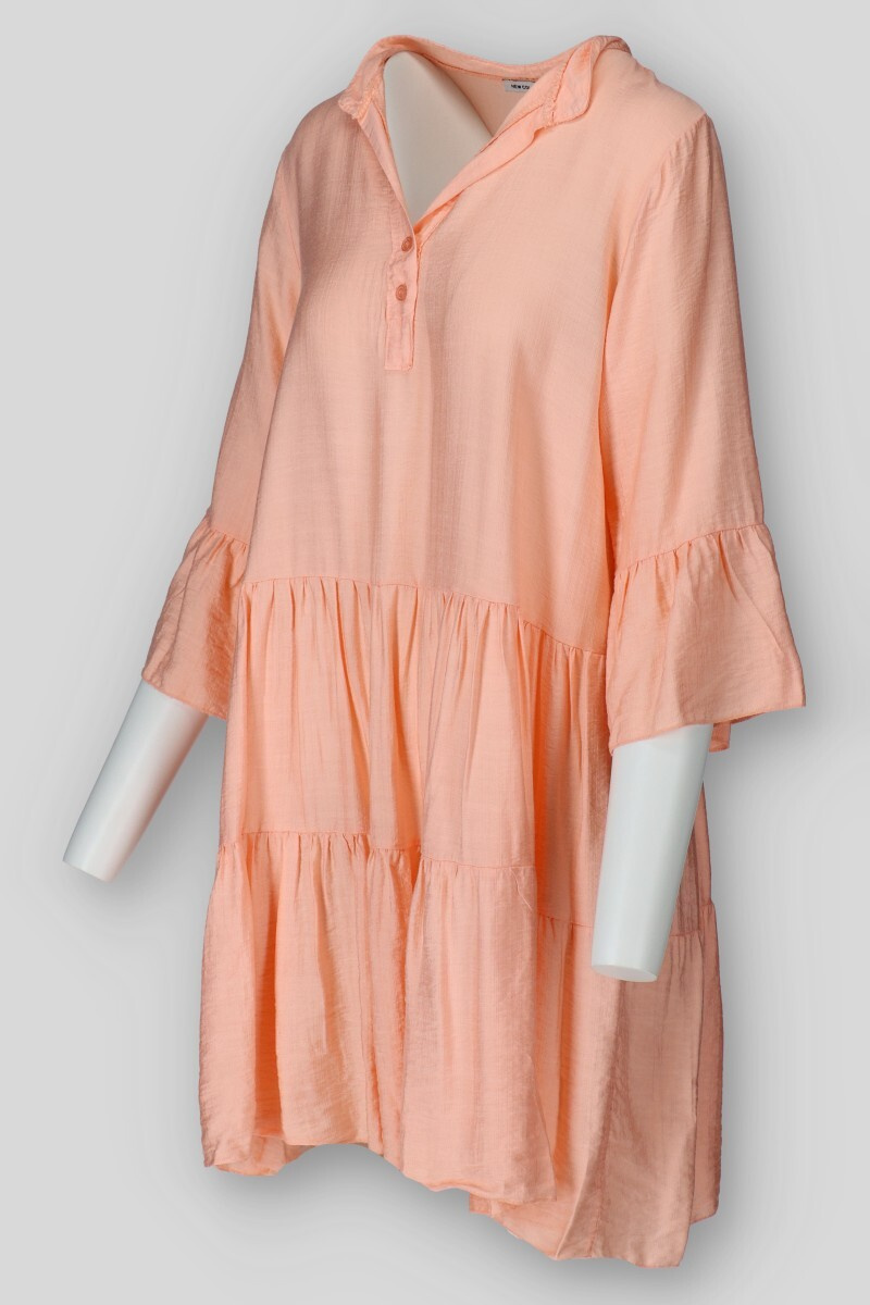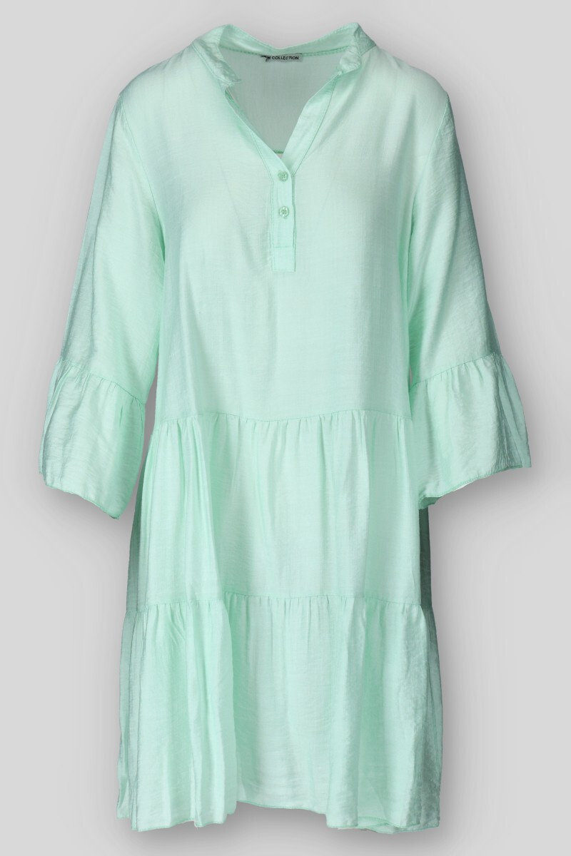 Dámské volánové šaty s límečkem. Šaty mají 3/4 volánový rukáv.