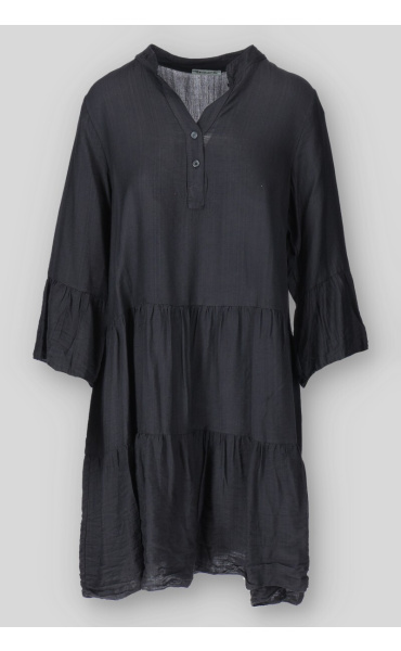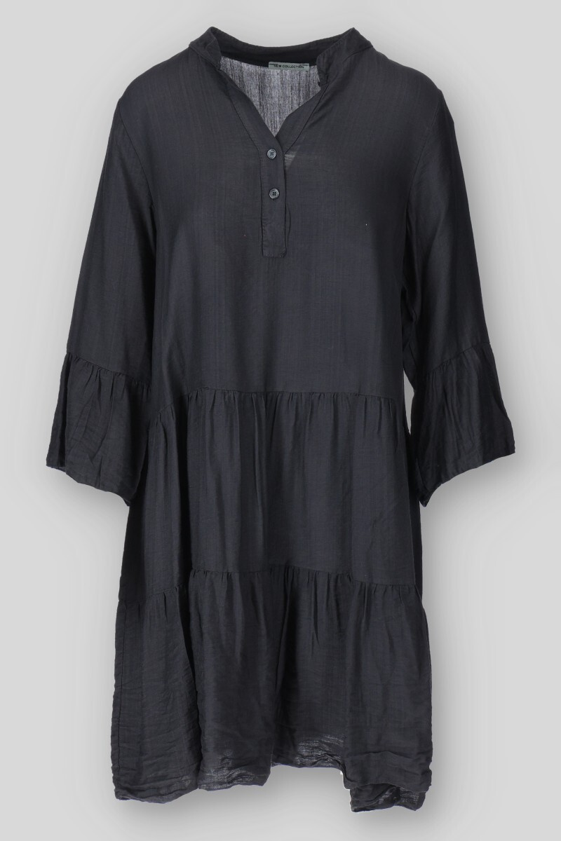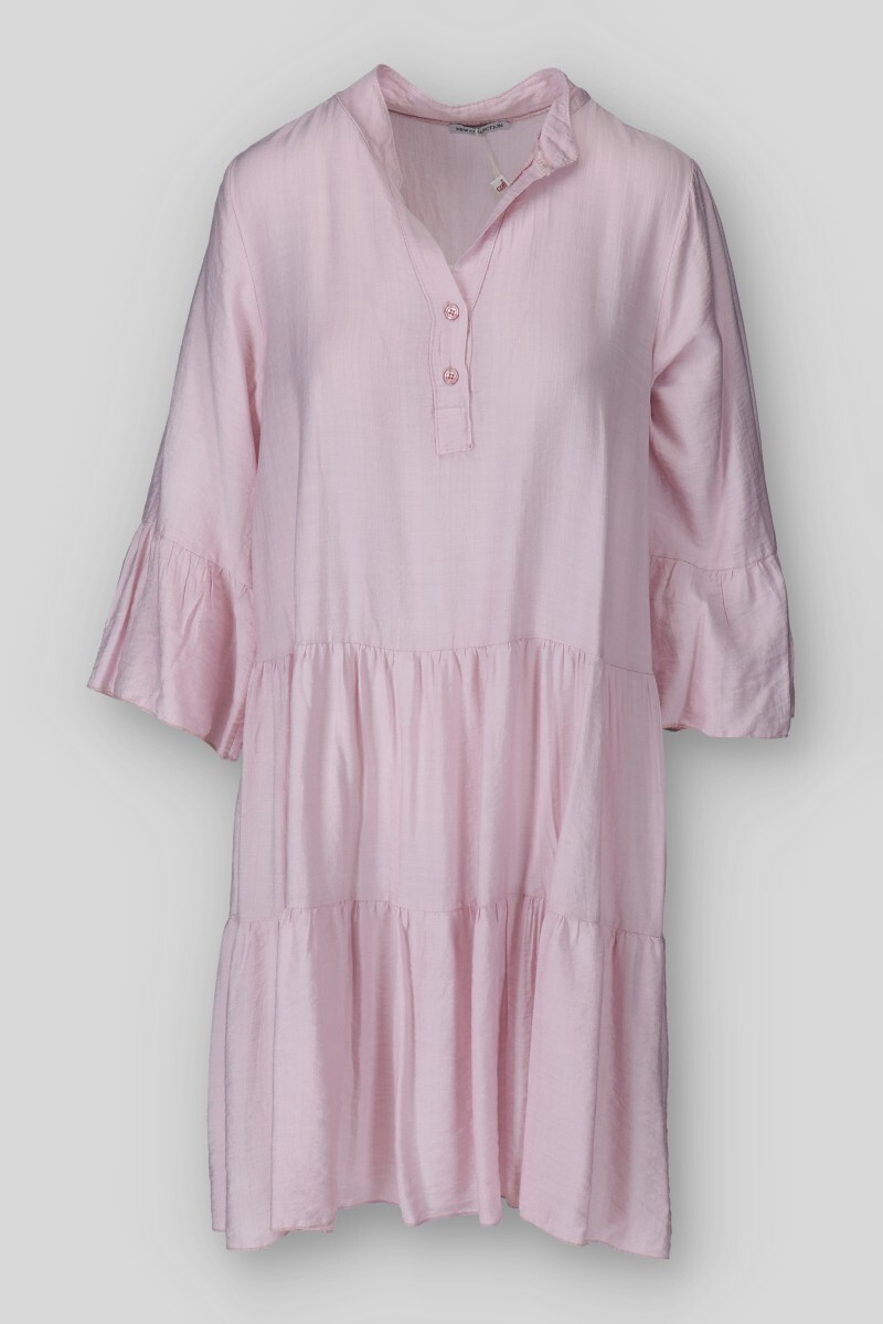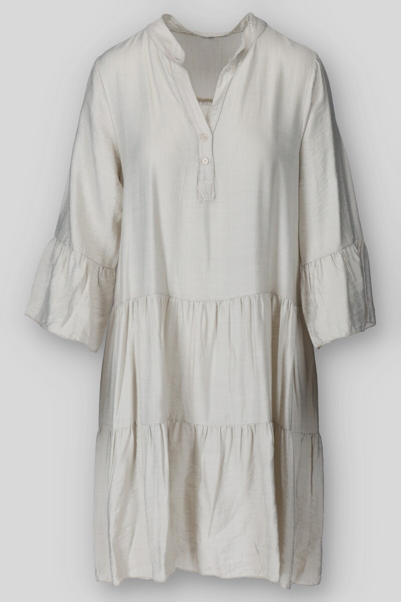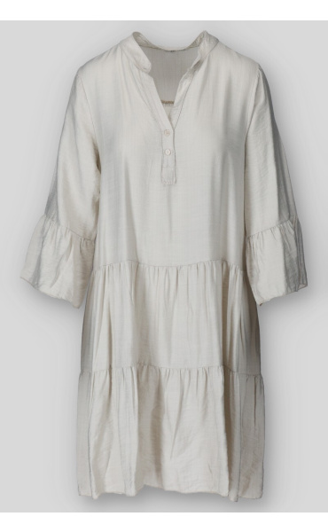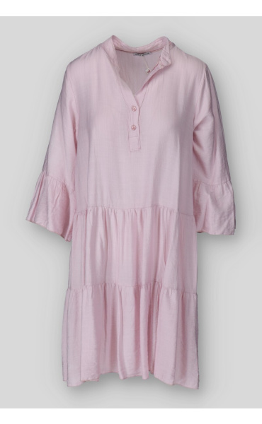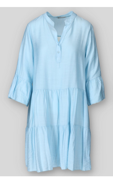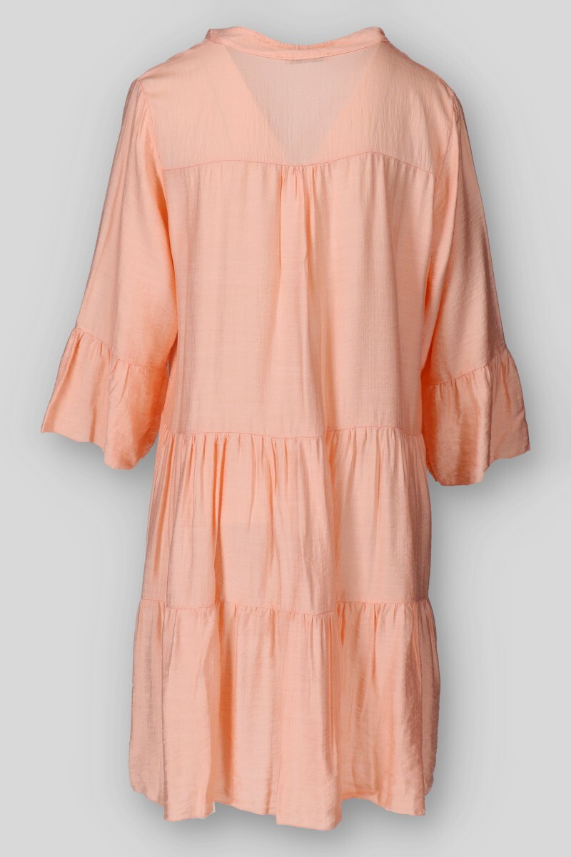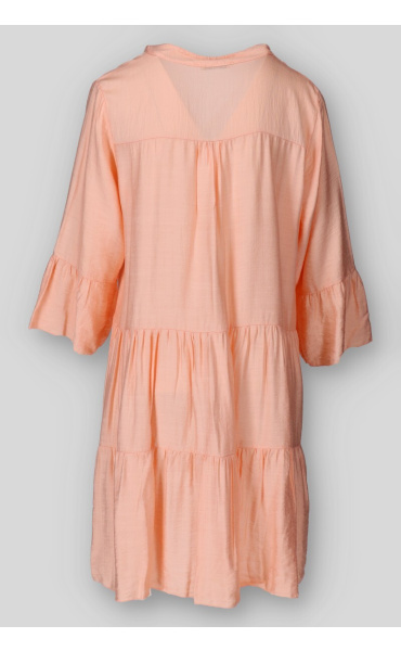 Dámské volánové šaty s límečkem. Šaty mají 3/4 volánový rukáv.