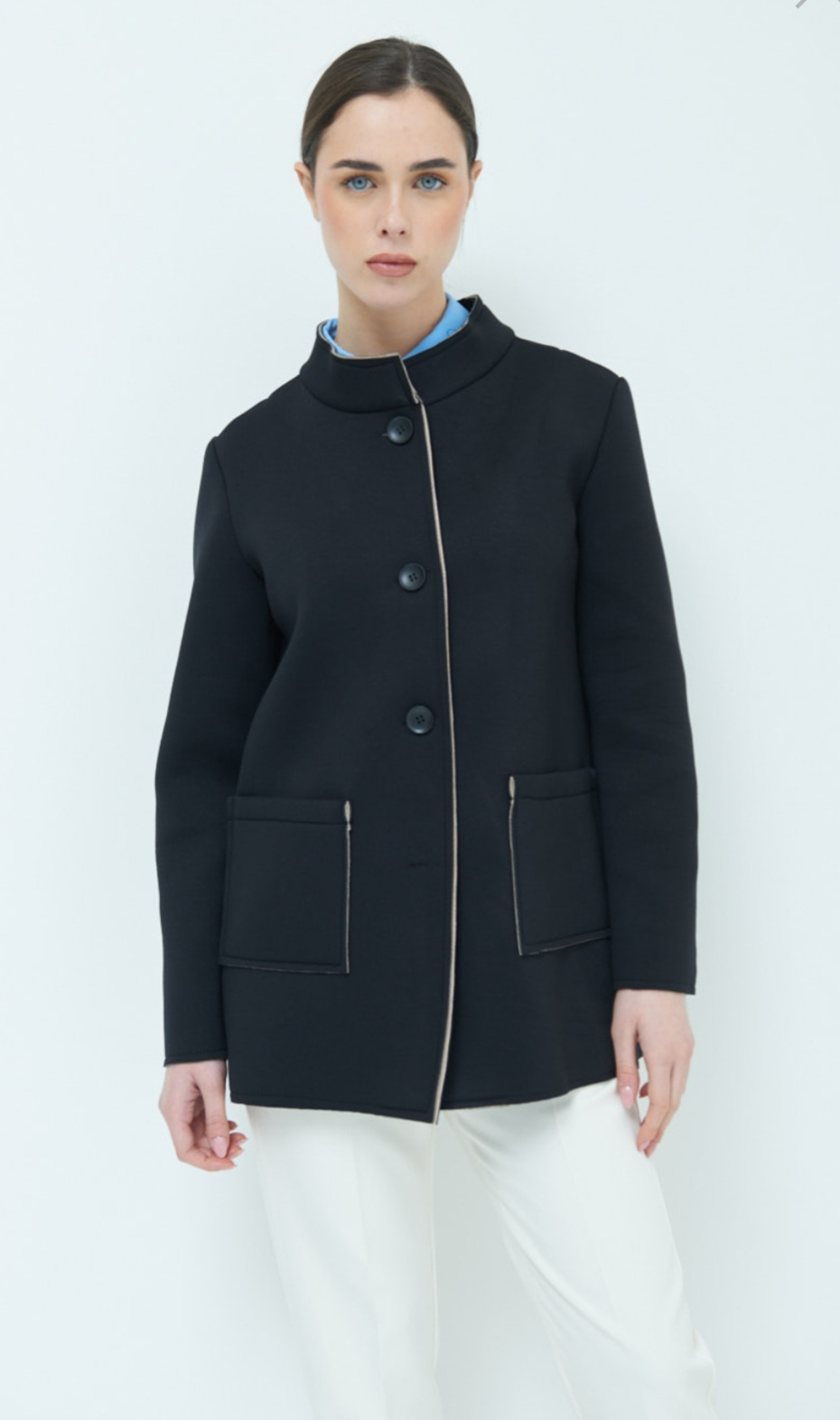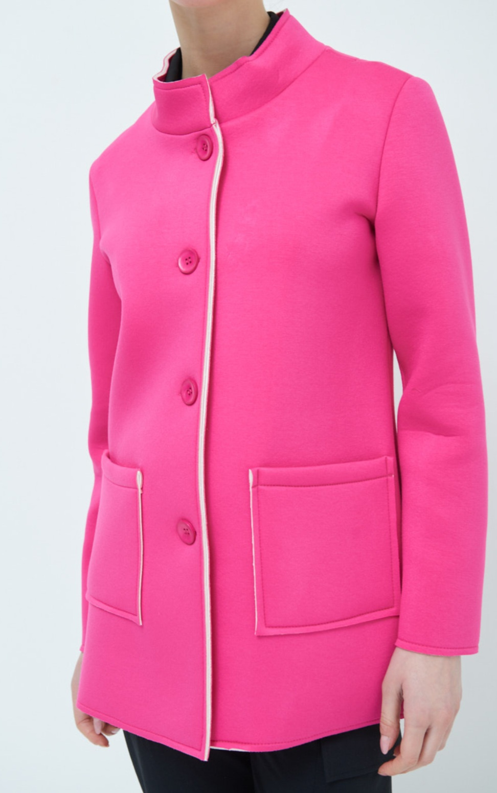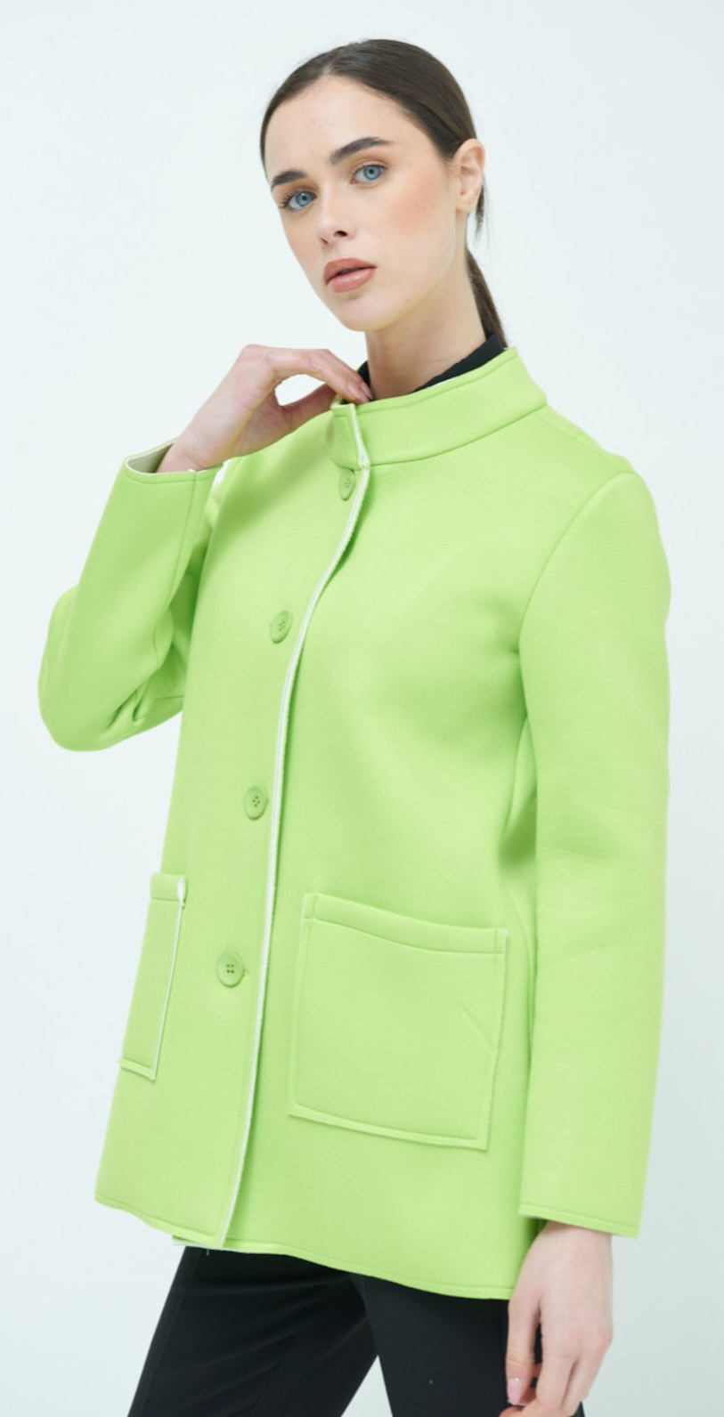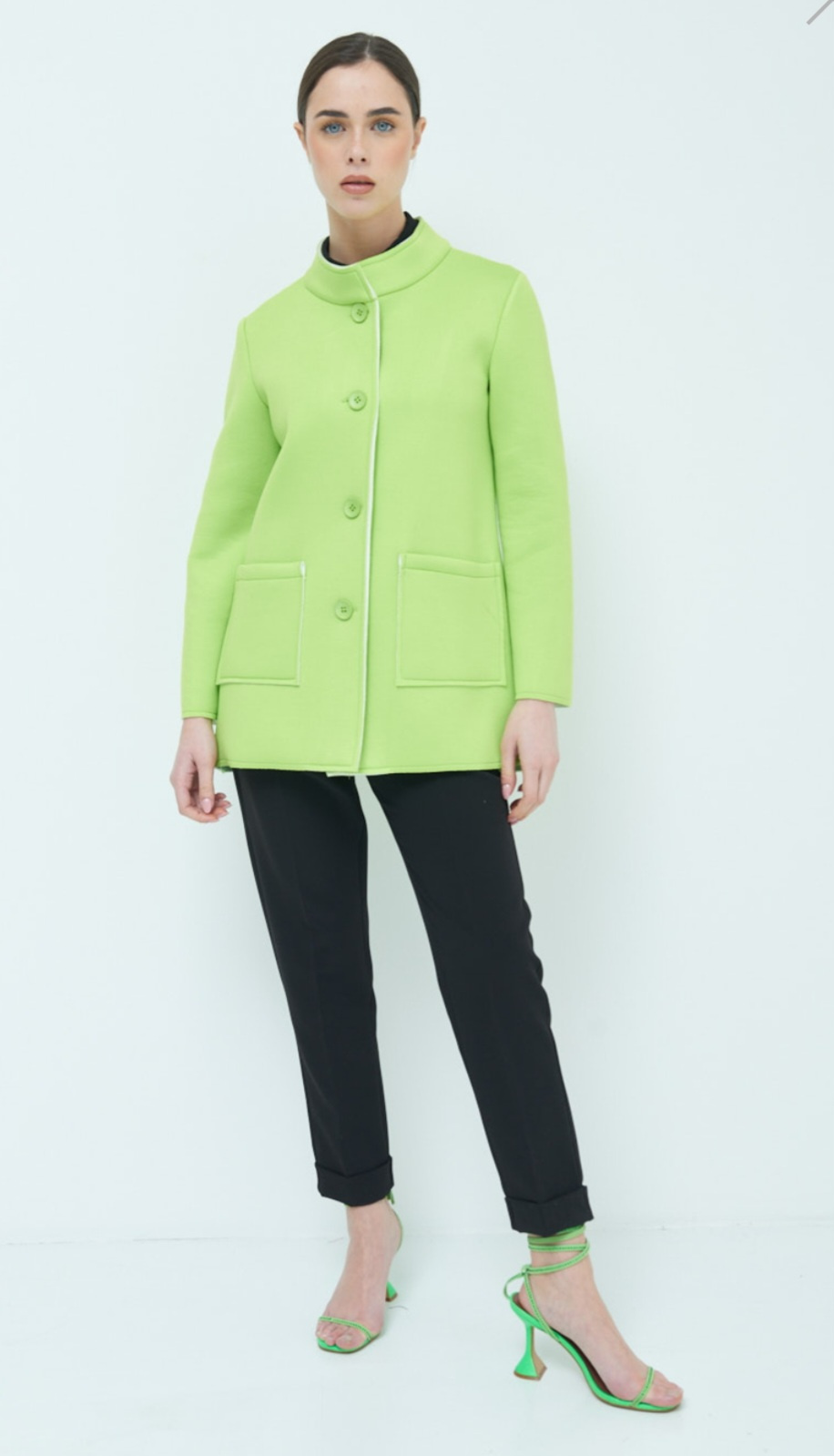 Dámský jarní stylový kabátek se stojákem, neoprenová struktura materiálu