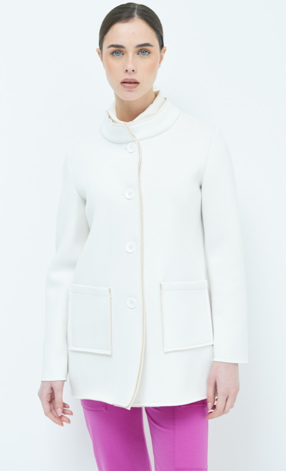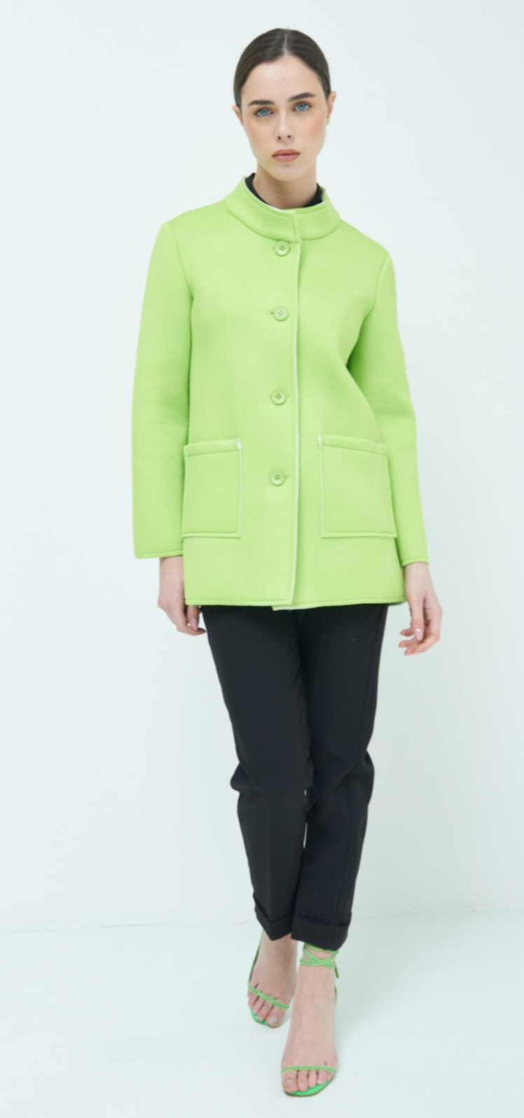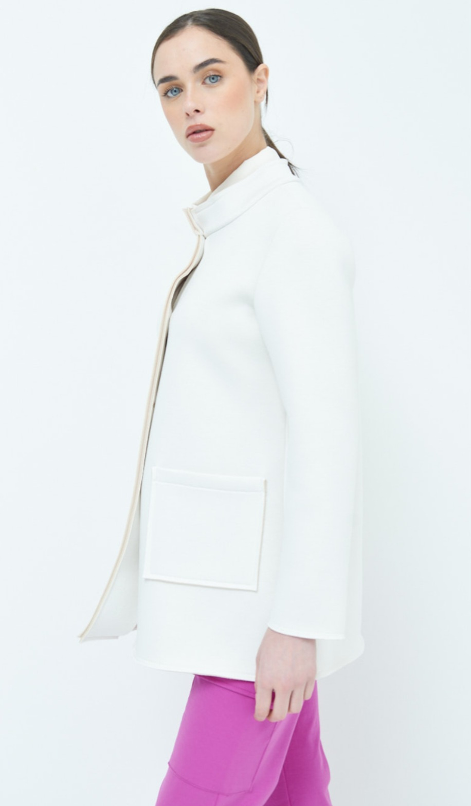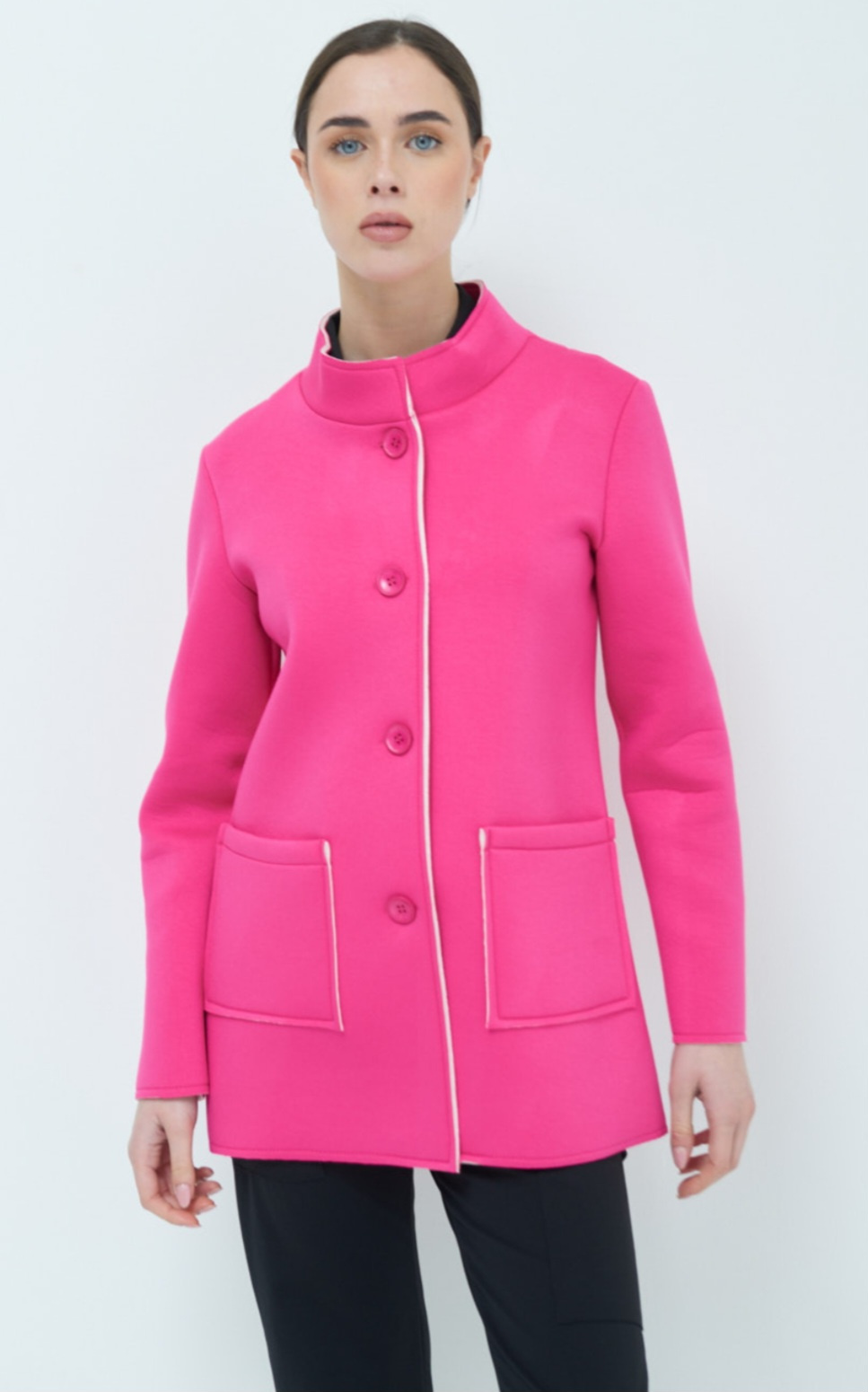 Dámský jarní stylový kabátek se stojákem, neoprenová struktura materiálu