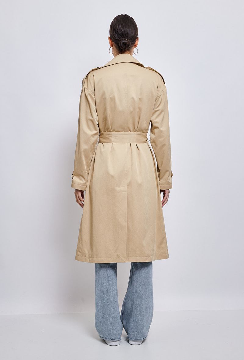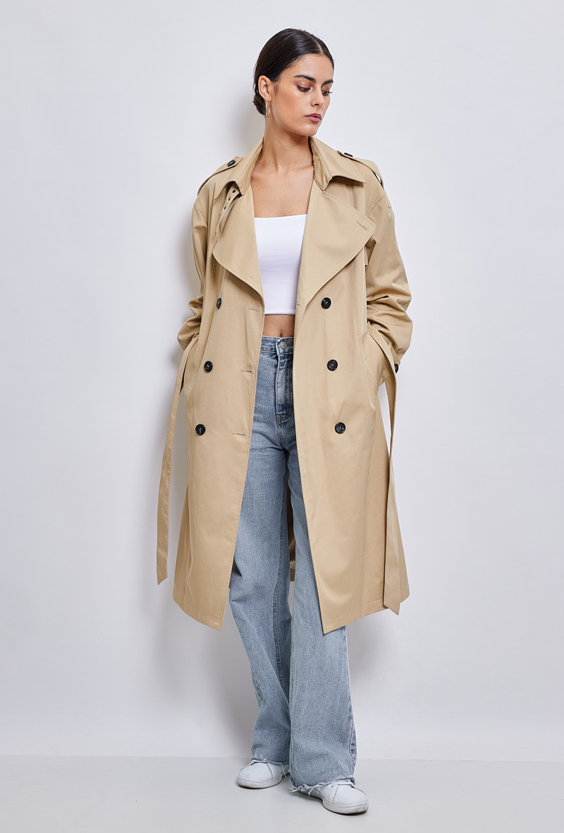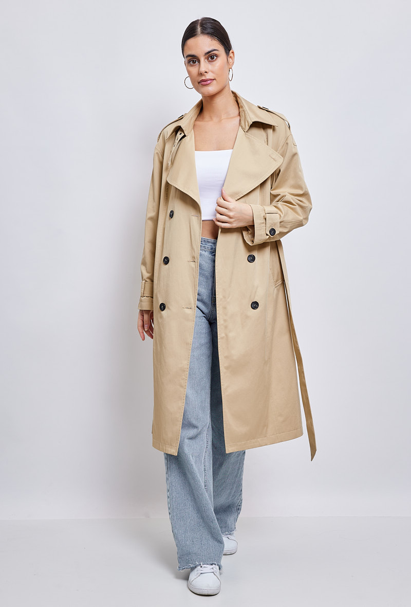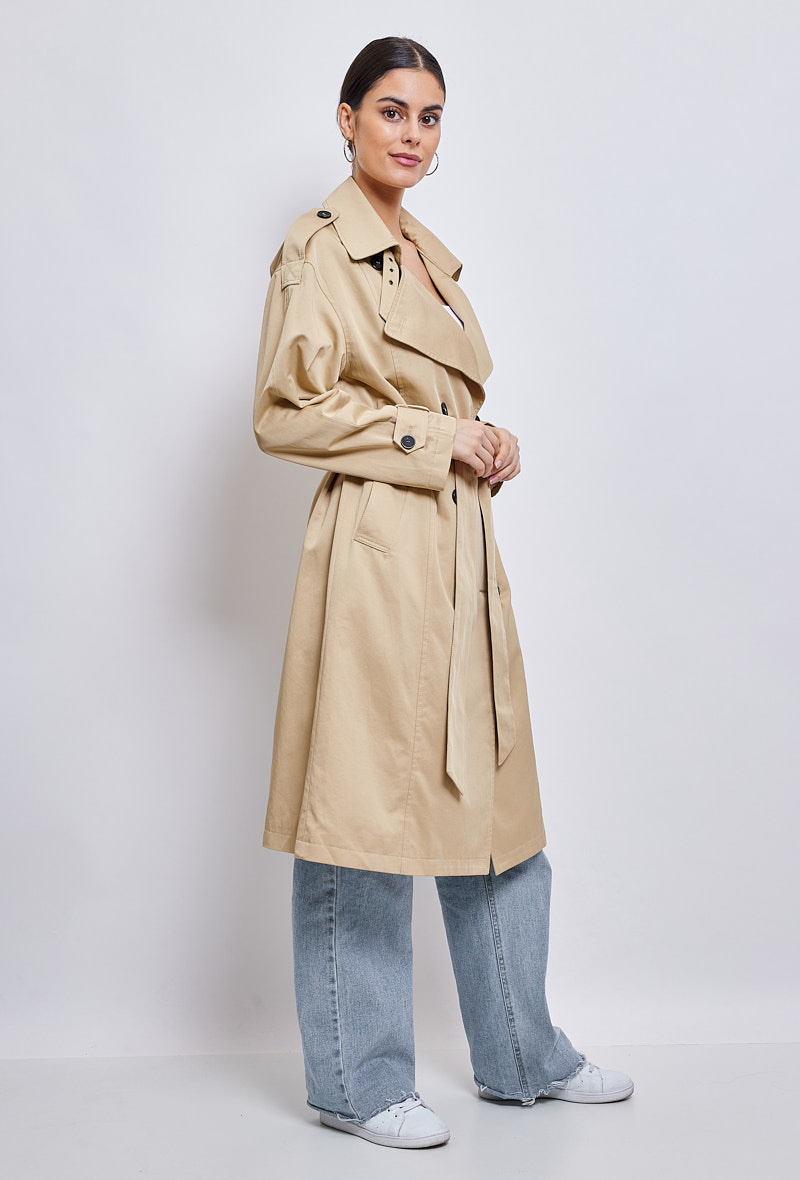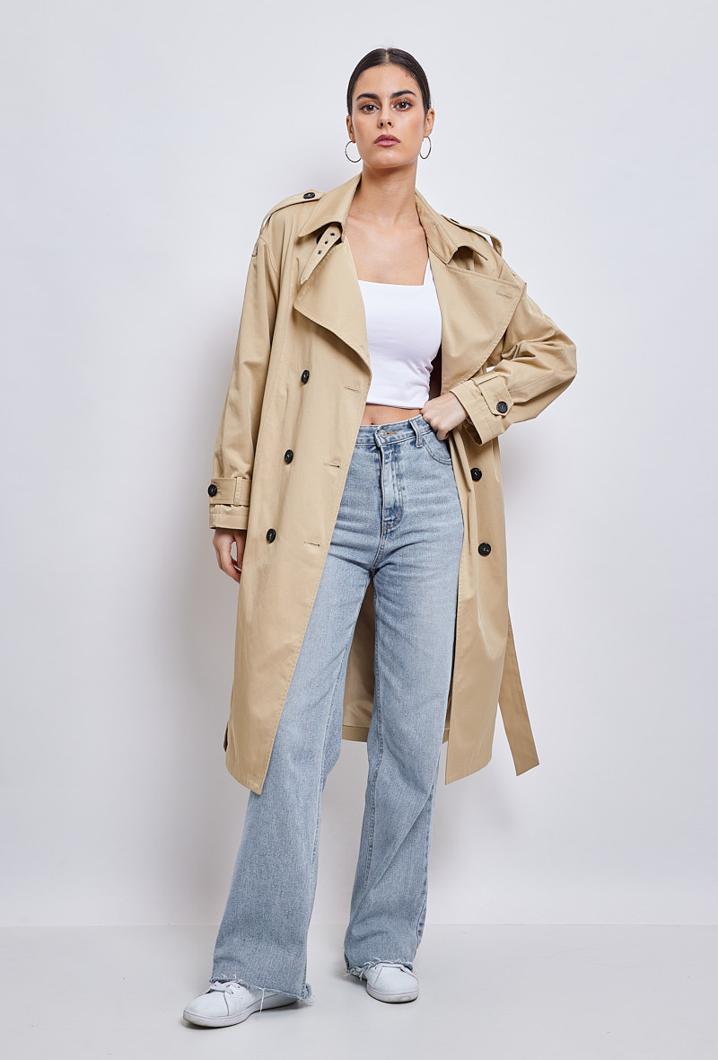Klasický a zásadní, dlouhý trenčkot, díky kterému budete vypadat skvěle během okamžiku. Díky přizpůsobenému límci a odnímatelnému pásku je vhodná pro podtržení ženskosti. Měkké a poddajné složení bavlněné směsi je příjemné a ideální pro všechna roční období.