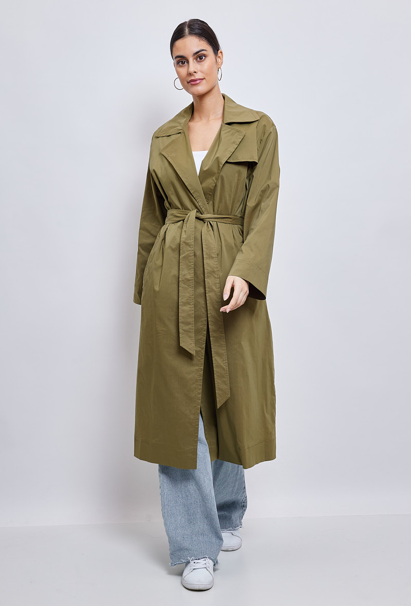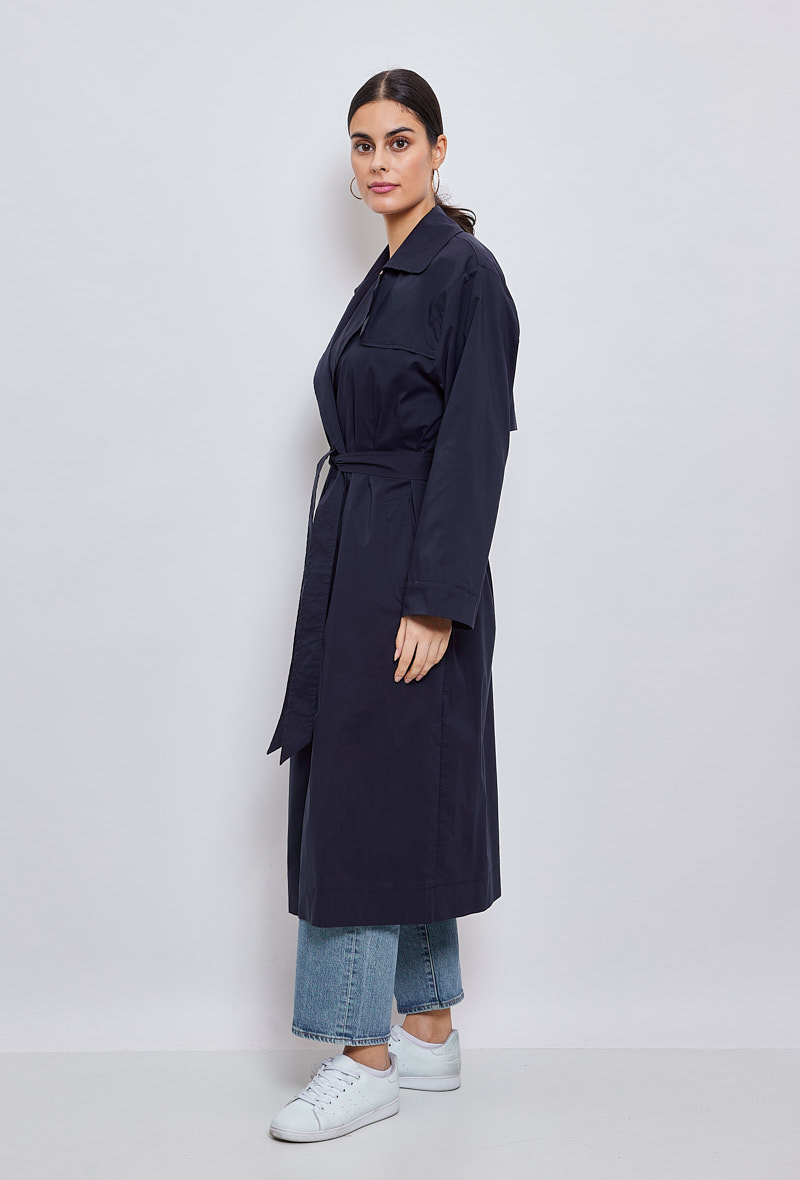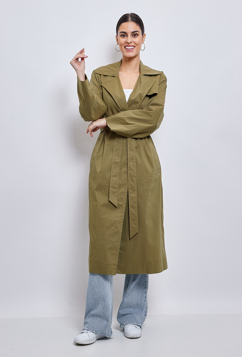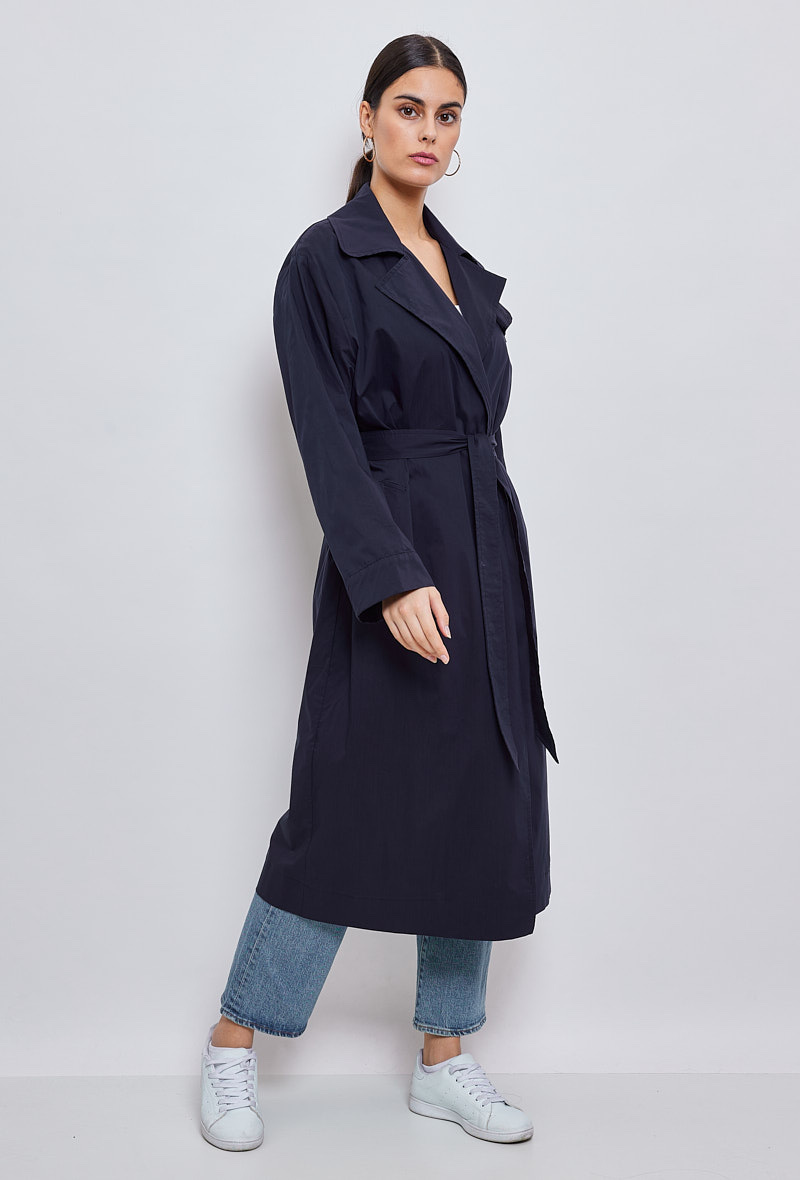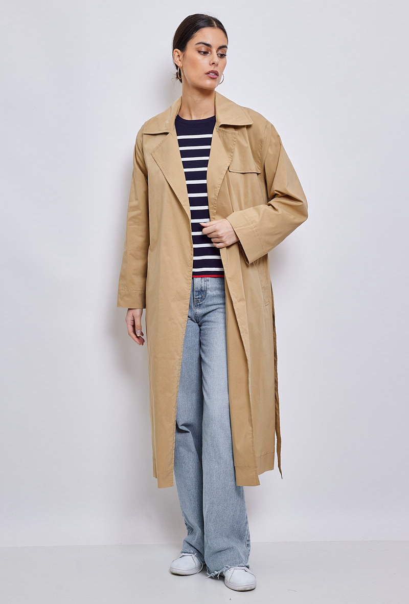 Klasický a zásadní, dlouhý trenčkot, díky kterému budete vypadat skvěle během okamžiku. Díky přizpůsobenému límci a odnímatelnému pásku je vhodná pro podtržení ženskosti. Měkké a poddajné složení bavlněné směsi je příjemné a ideální pro všechna roční období.