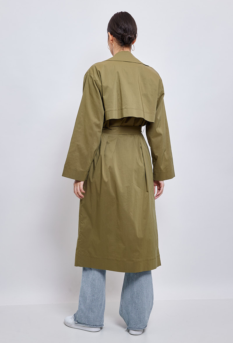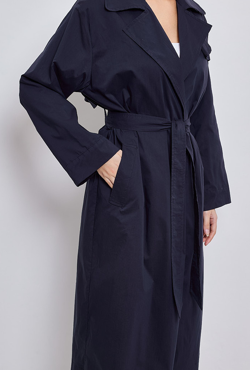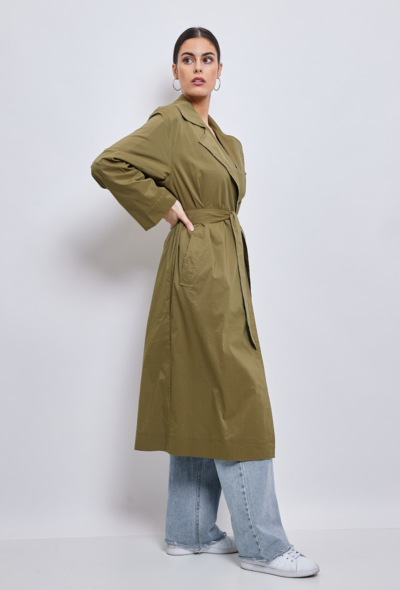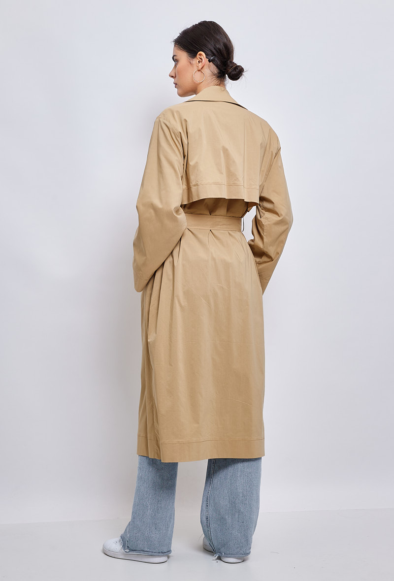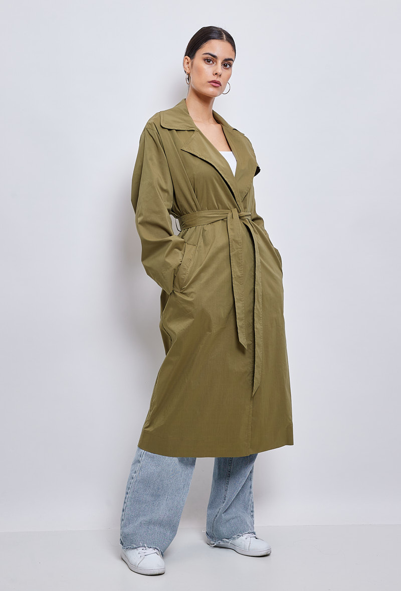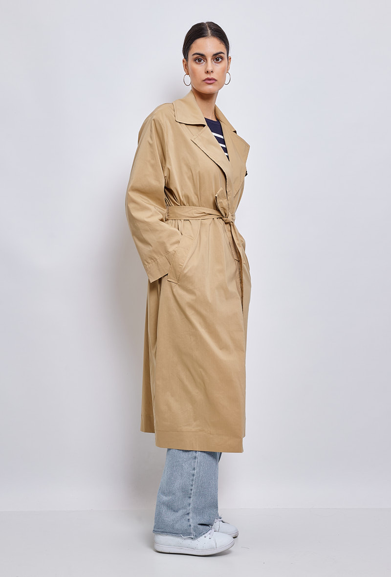 Klasický a zásadní, dlouhý trenčkot, díky kterému budete vypadat skvěle během okamžiku. Díky přizpůsobenému límci a odnímatelnému pásku je vhodná pro podtržení ženskosti. Měkké a poddajné složení bavlněné směsi je příjemné a ideální pro všechna roční období.
