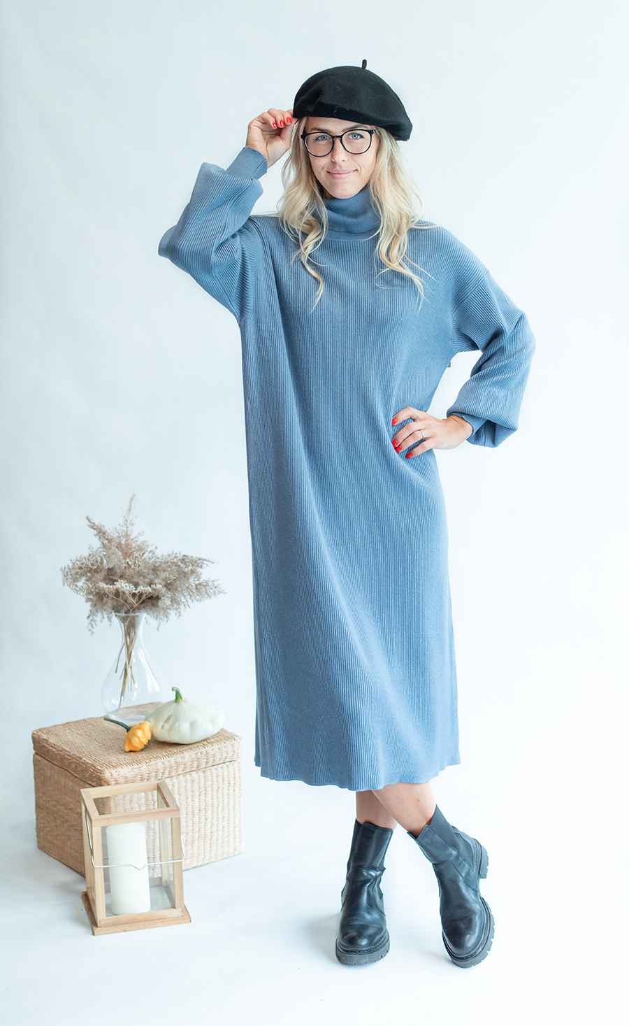 Delší úpletové šaty s opaskem a stylovou kapsičkou Itálie