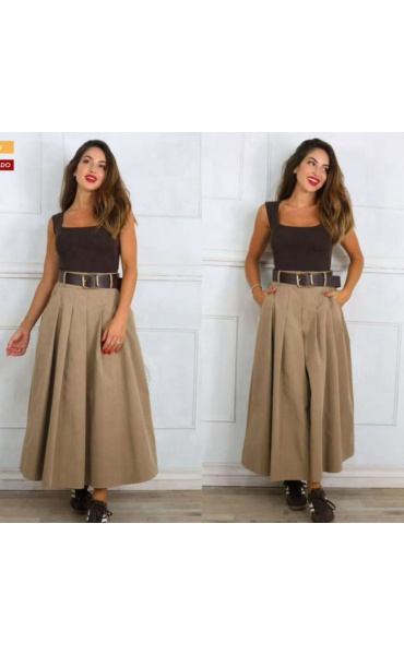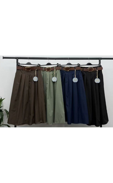 Trendy široka sukně v pase do gumy. Sukně je doplněny syntetickým páskem. Materiál připomíná Taft. Vyrobeno v Itálii.