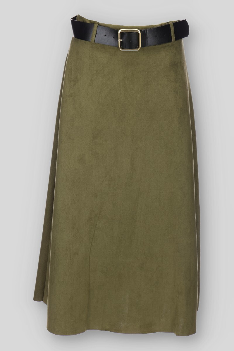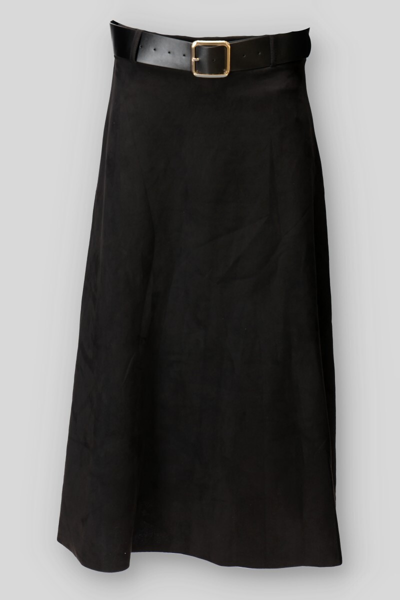 Dámská dlouhá sukně v pase do gumy. Sukně je teplejšího materiálu, áčkového střihu a je doplněna syntetickým páskem. Dovezeno z Itálie.