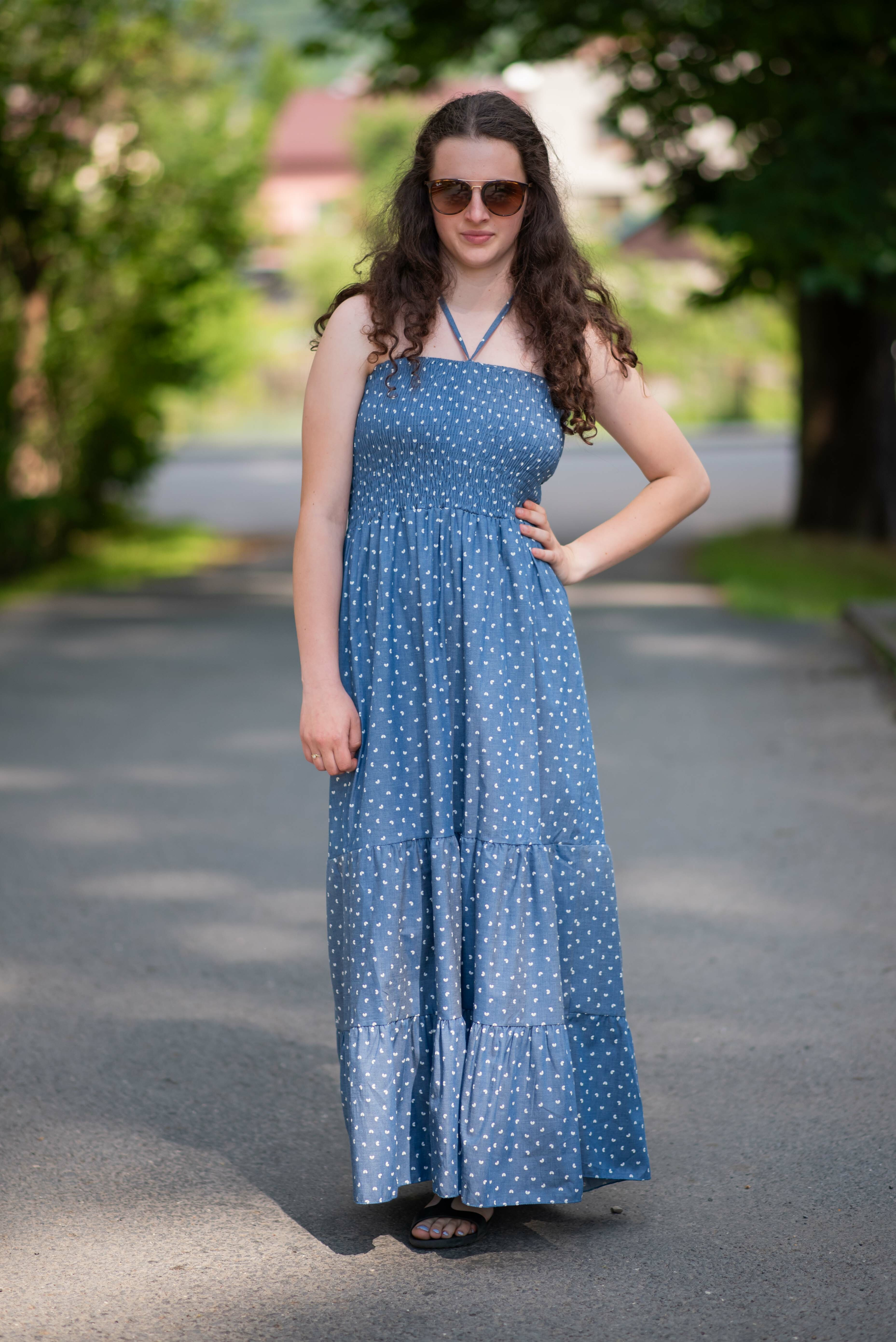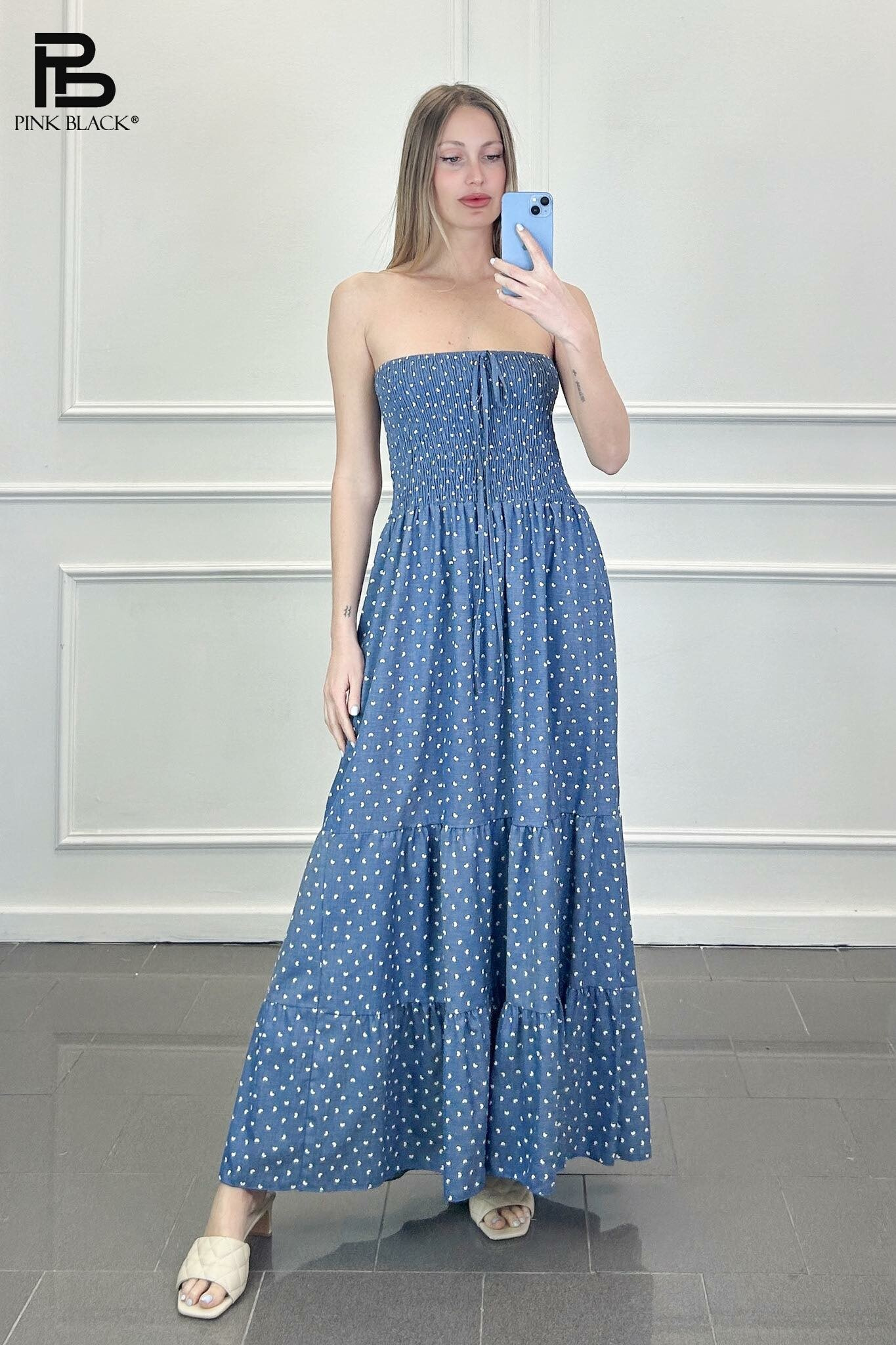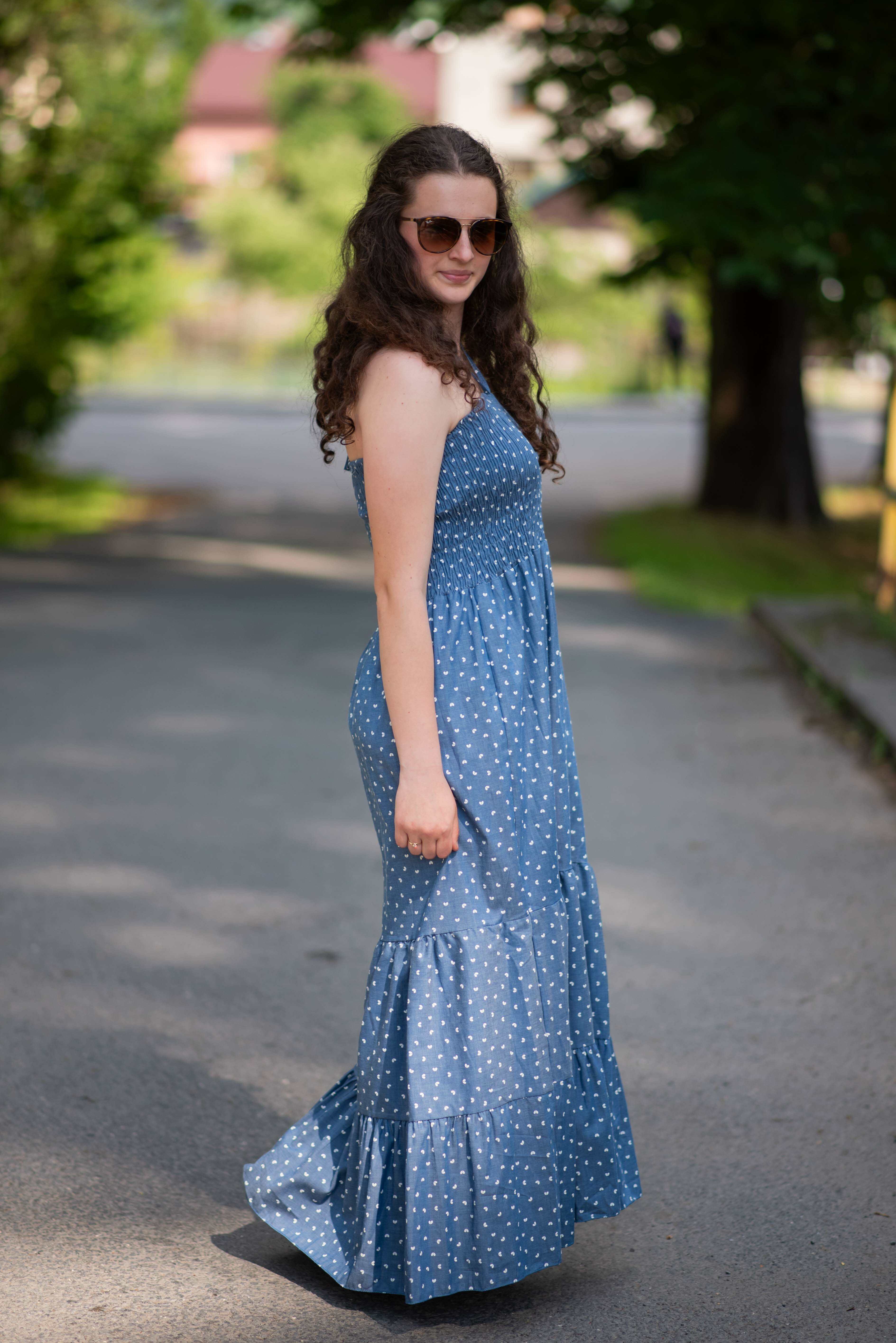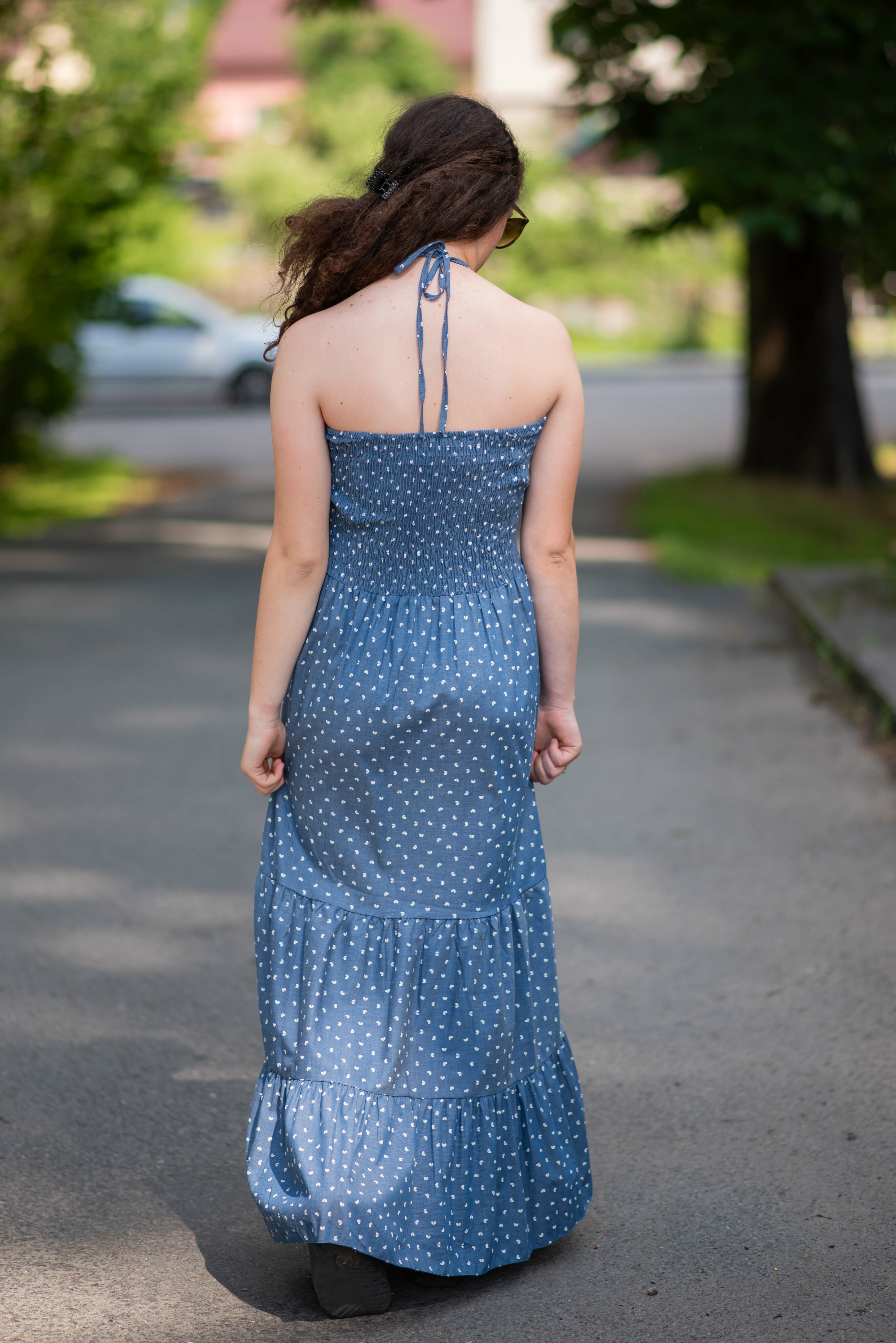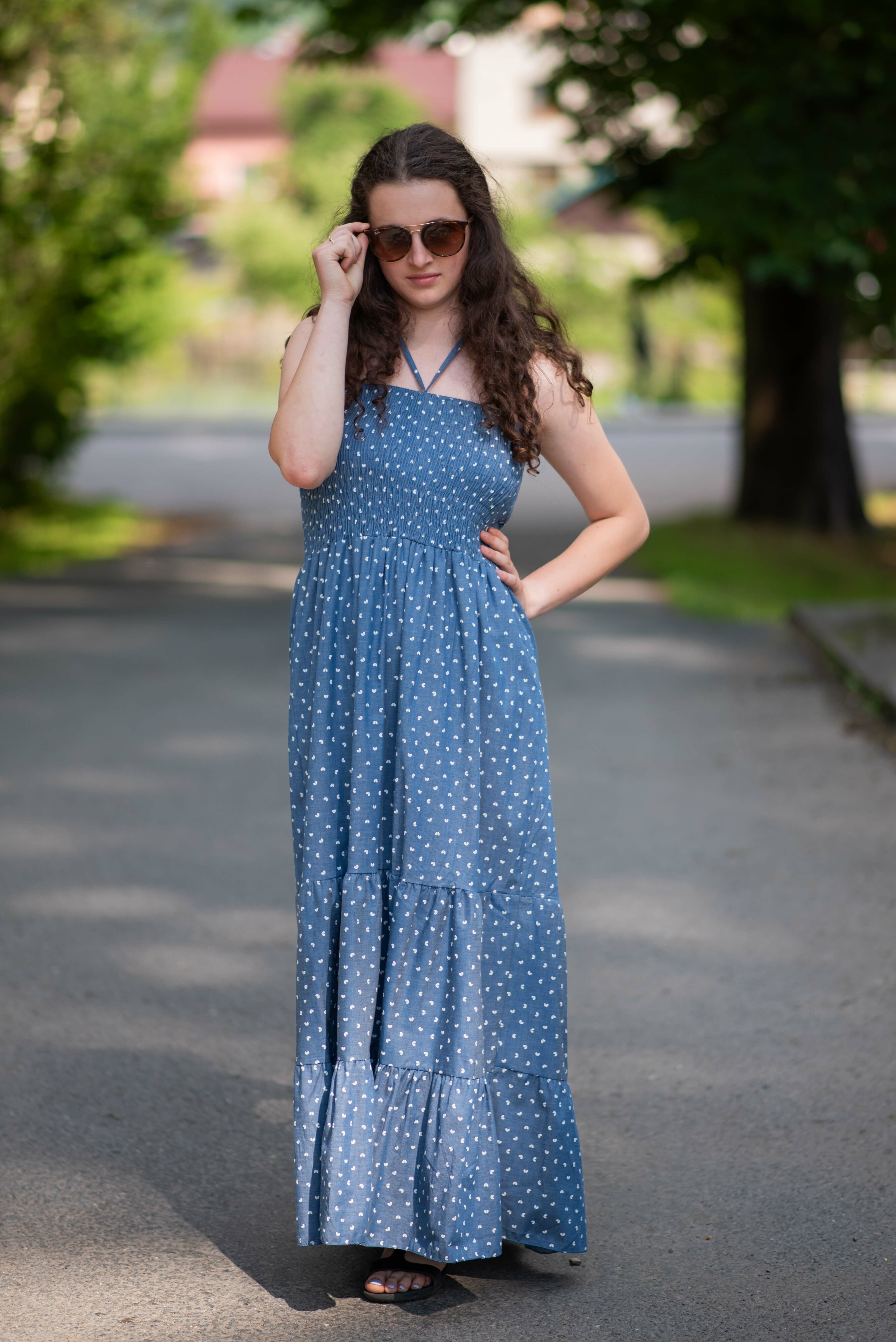 Dlouhé džínové šaty 35253 Itálie barva: modrá džínová, velikost: Univerzální-jedna velikost