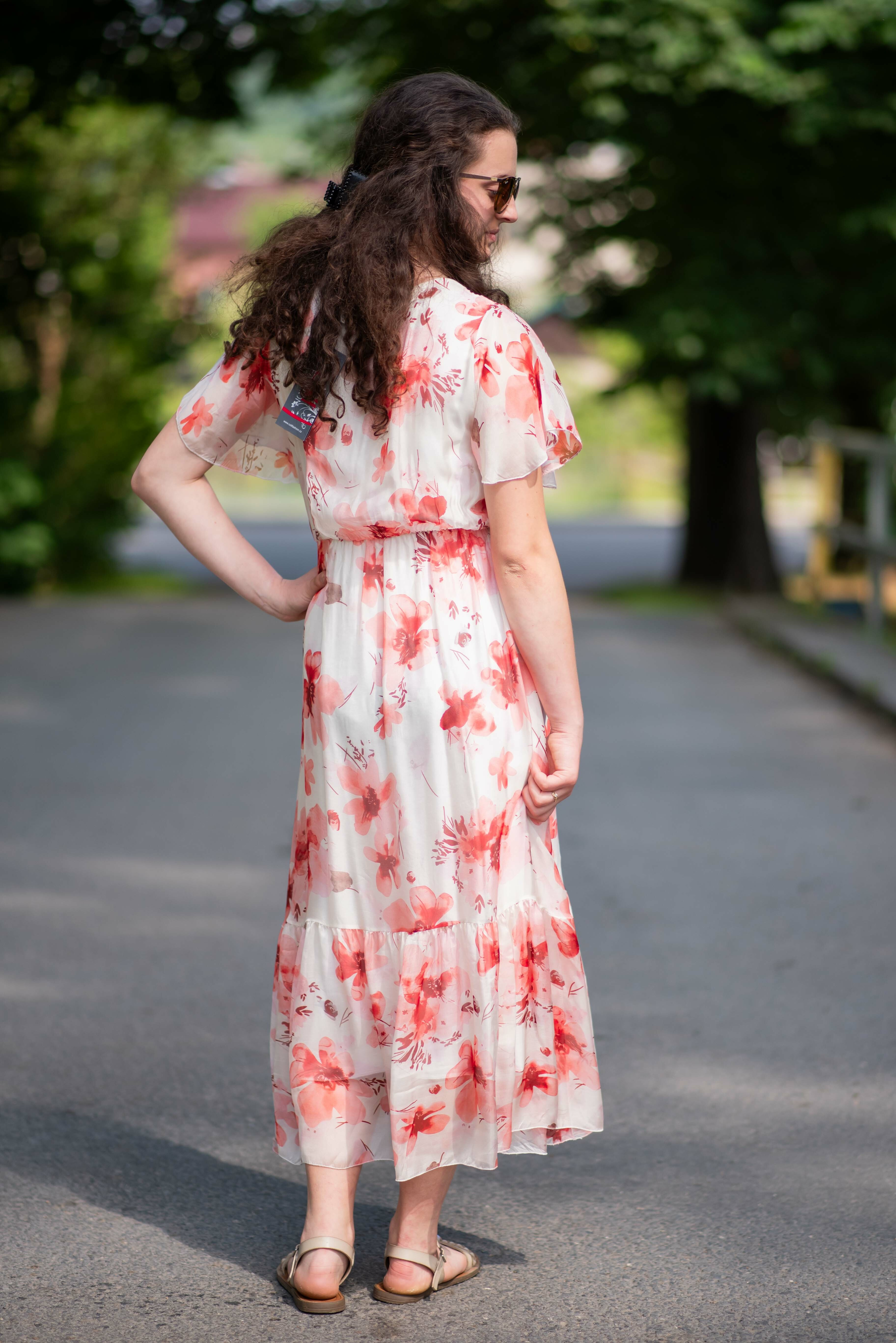 Dlouhé hedvábné šaty květ 21073B Italy