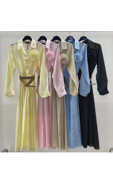 Dlouhé košilové šaty s proužkem a broží U 13795