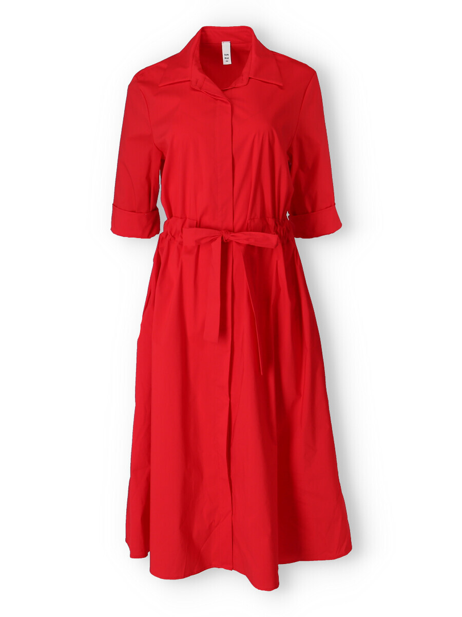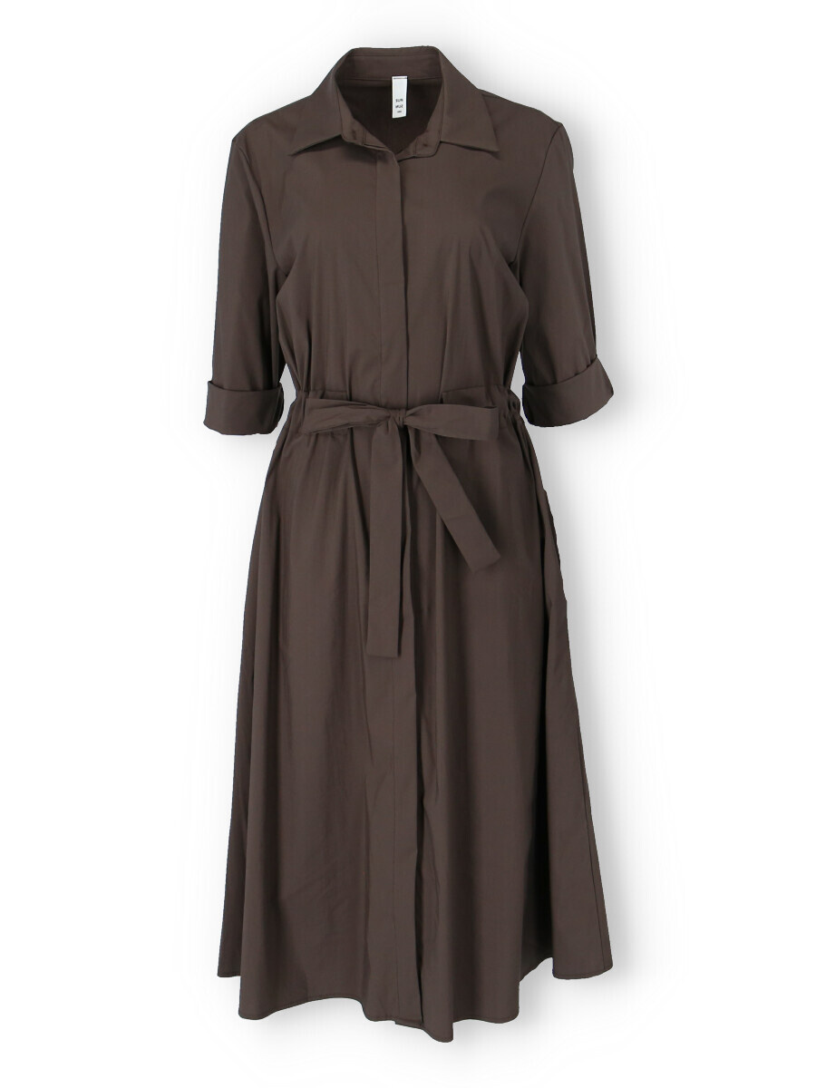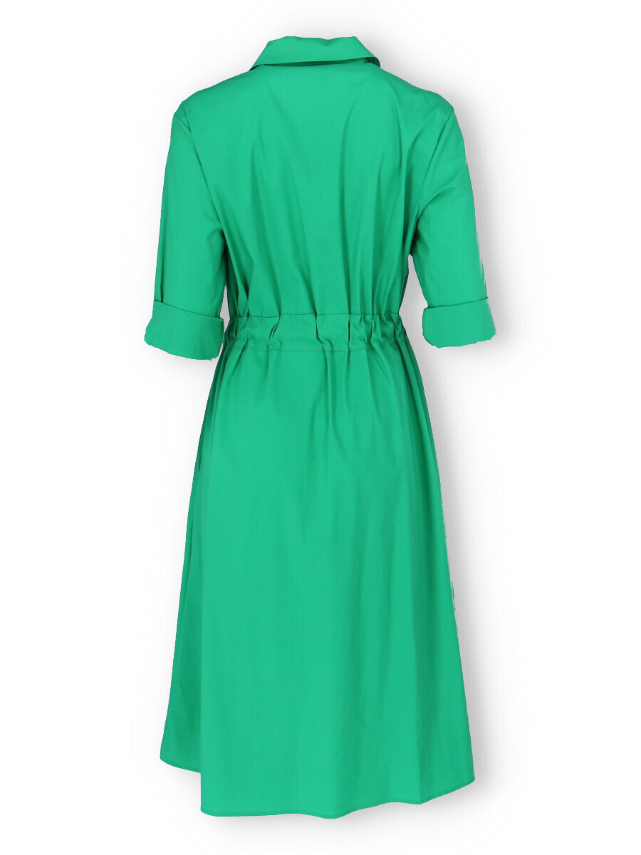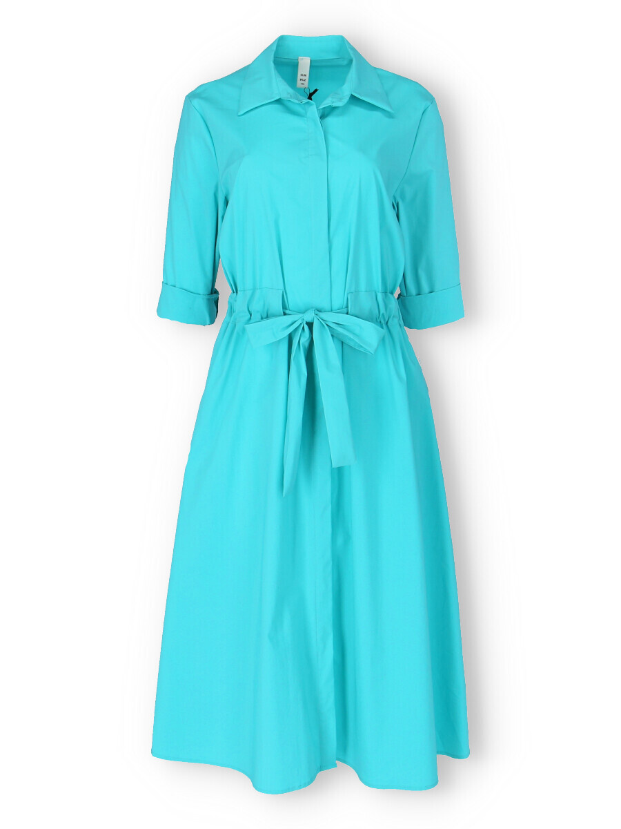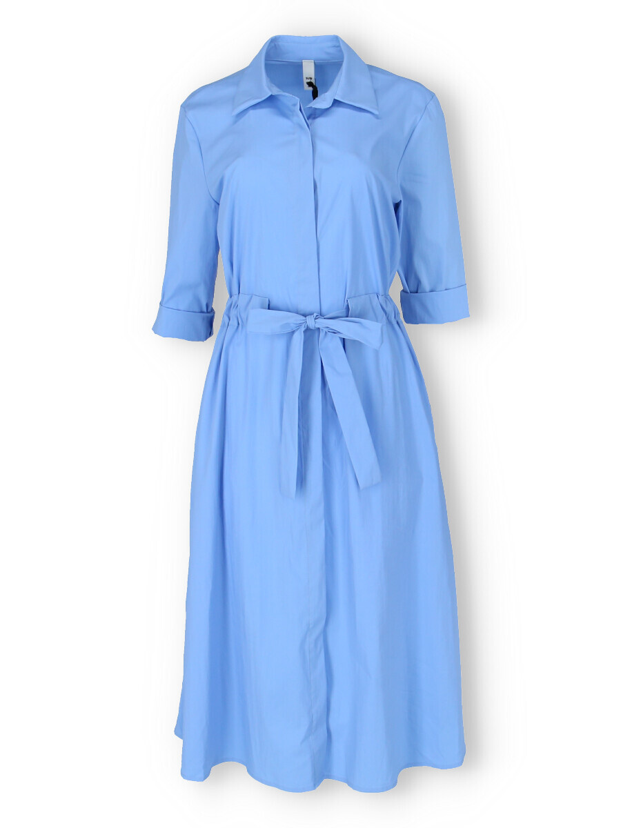 Dámské dlouhé košilové šaty s 3/4 rukávem. Šaty mají v pase regulaci na šňůrku, jsou propínací a po stranách mají všité kapsy. Vyrobeno v Itálii.