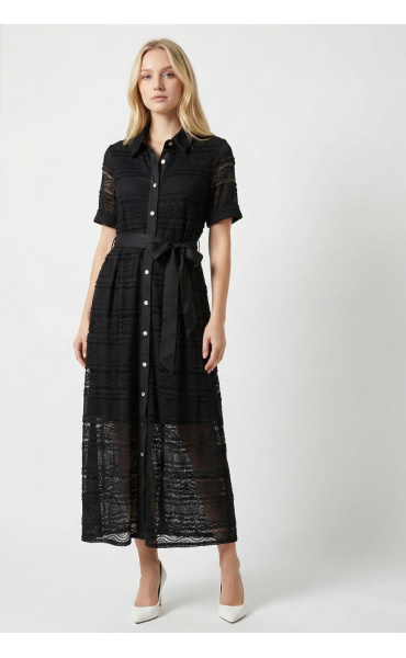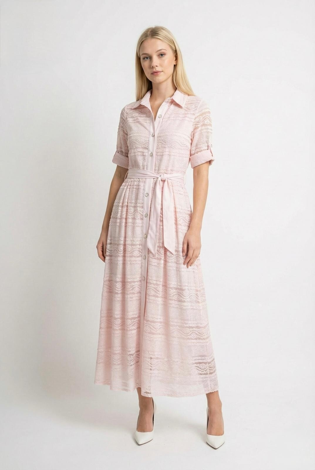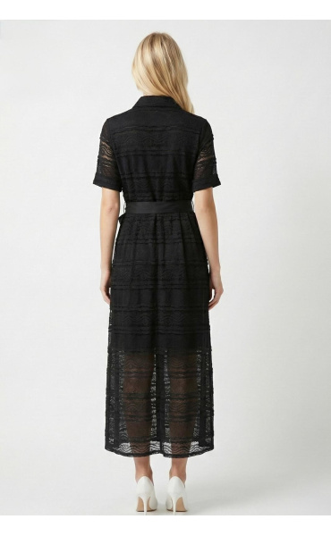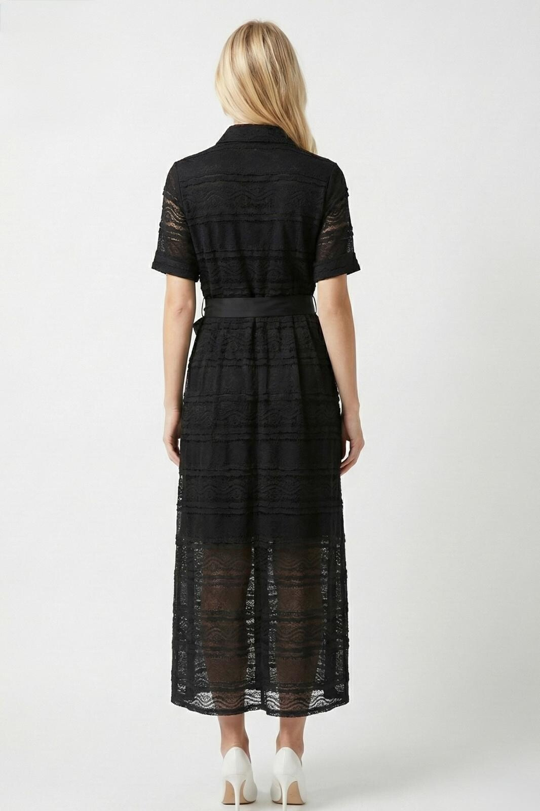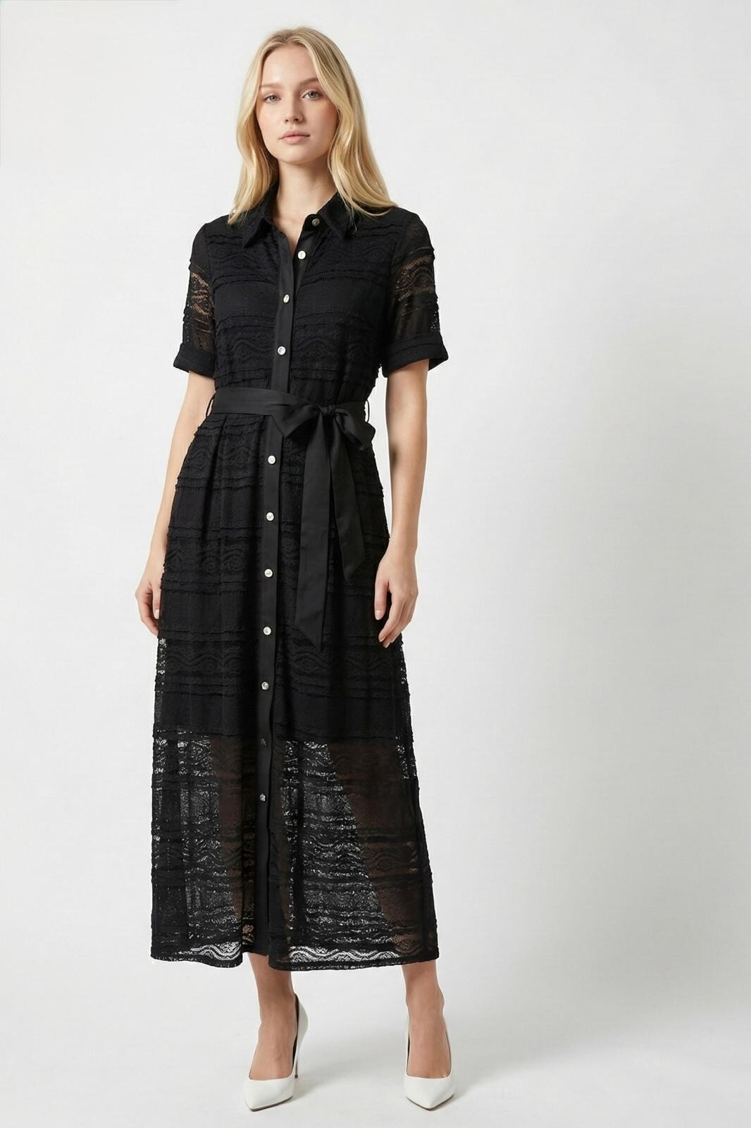 Elegantní krajkové dlouhé šaty. Šaty jsou košilové, propínací, mají krátký rukáv a podšívku.