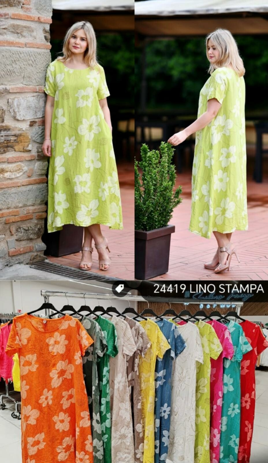 Dlouhé lněné šaty květ 24419 Itálie