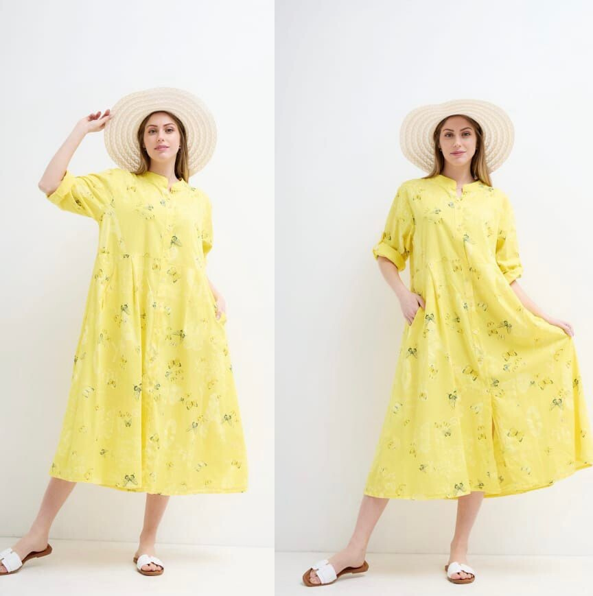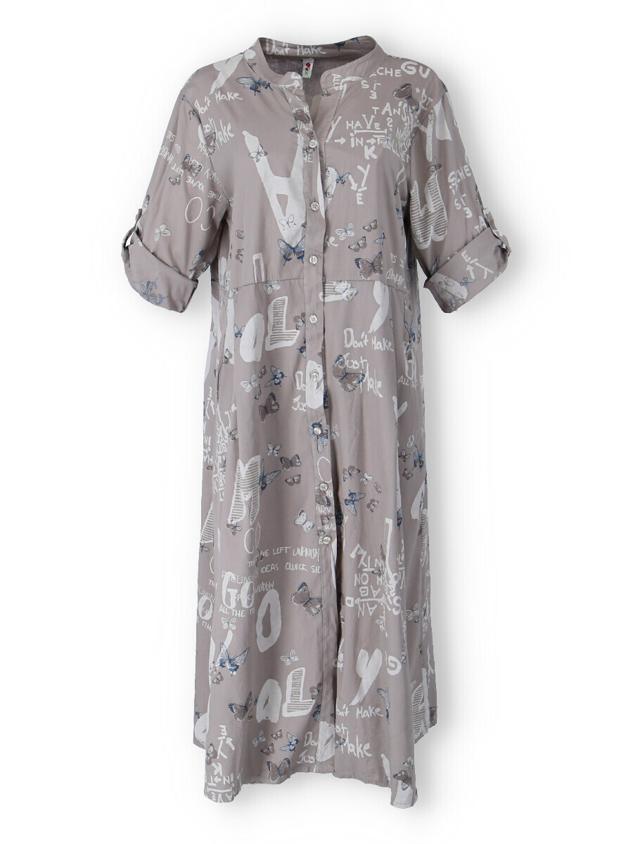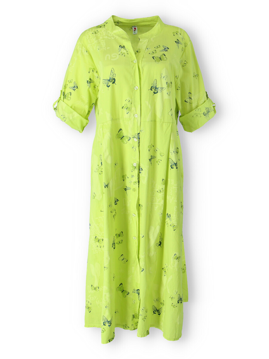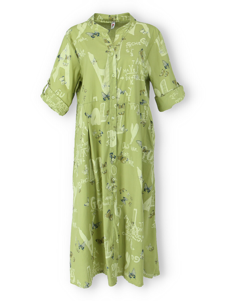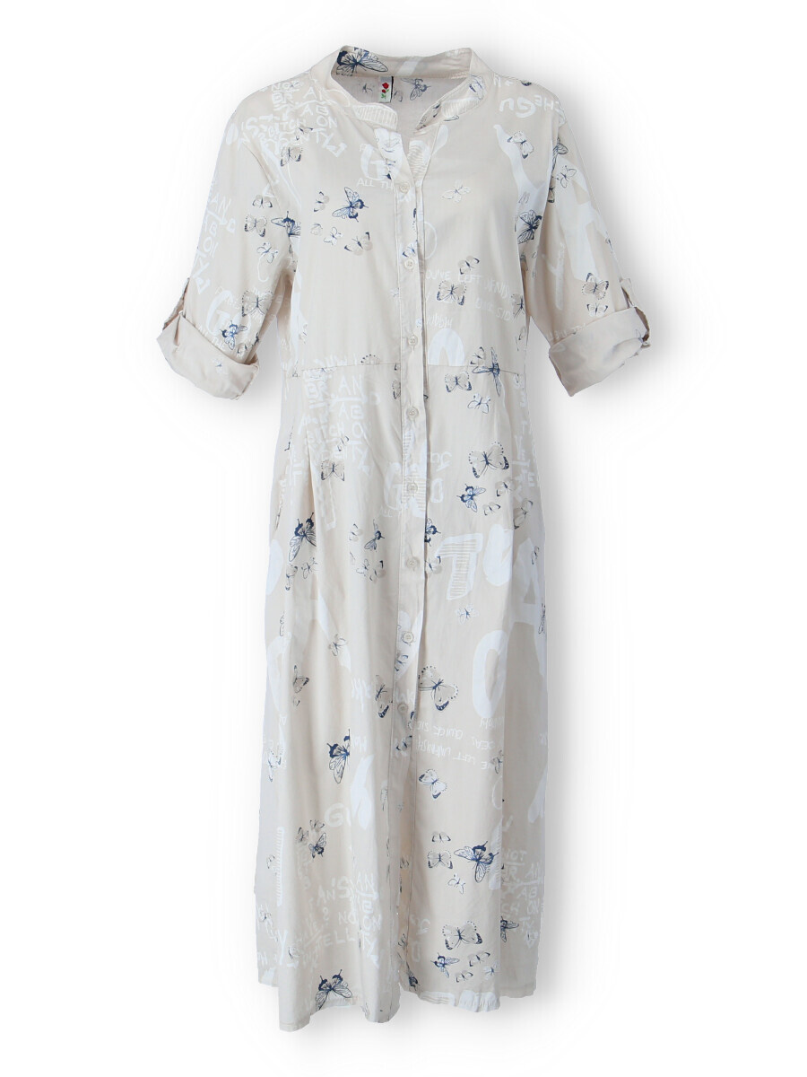 Dlouhé propínací šaty s potiskem motýlů. Šaty mají po stranách všité kapsy a 3/4 rukáv s regulací. Dovoz Itálie