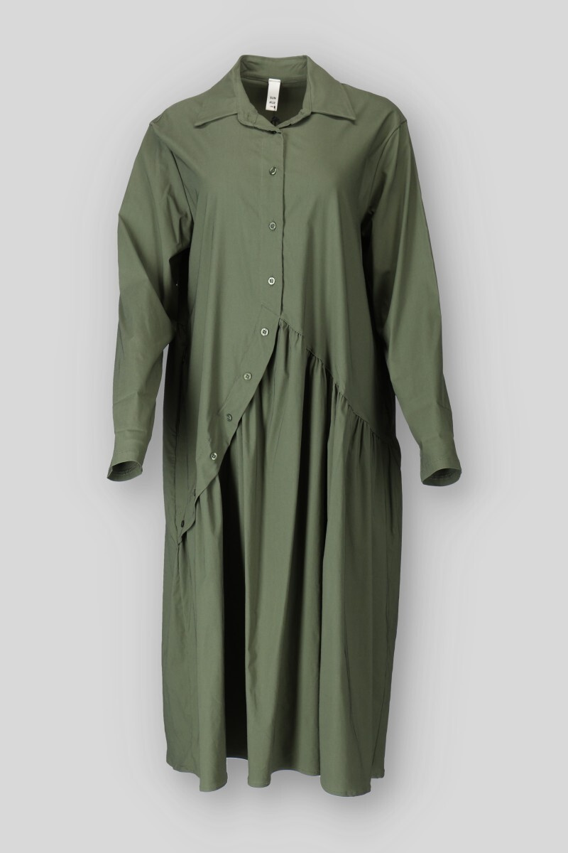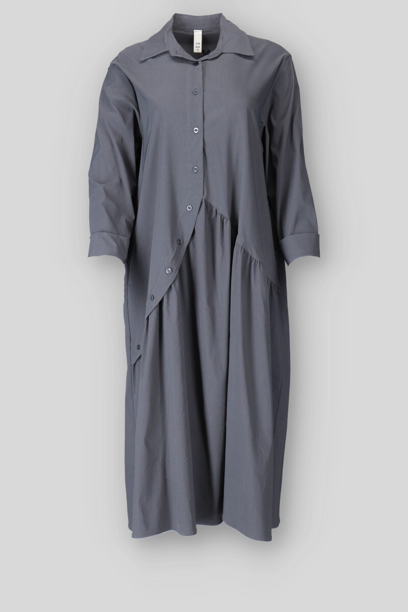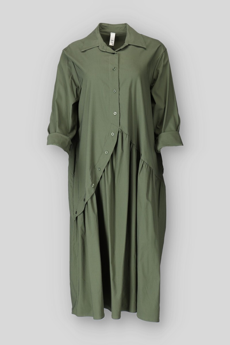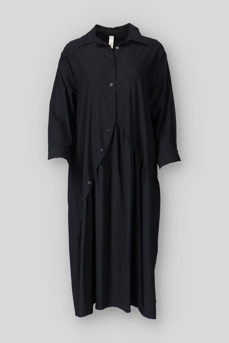 Dámské dlouhé balónové šaty s dlouhým rukávem. Šaty mají aplikaci knoflíků ve spodní částí a po stranách mají všité kapsy. Vyrobeno v Itálii.