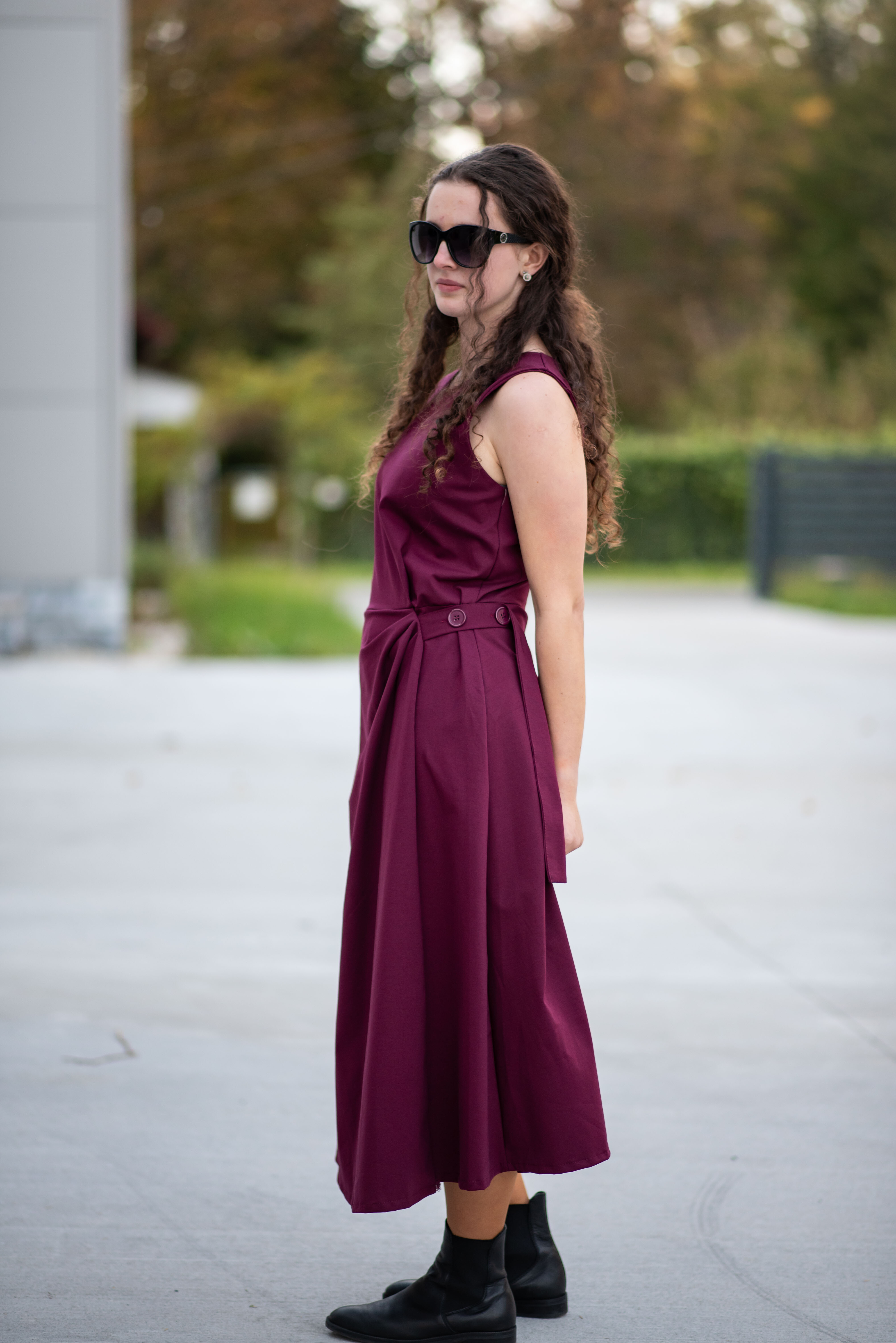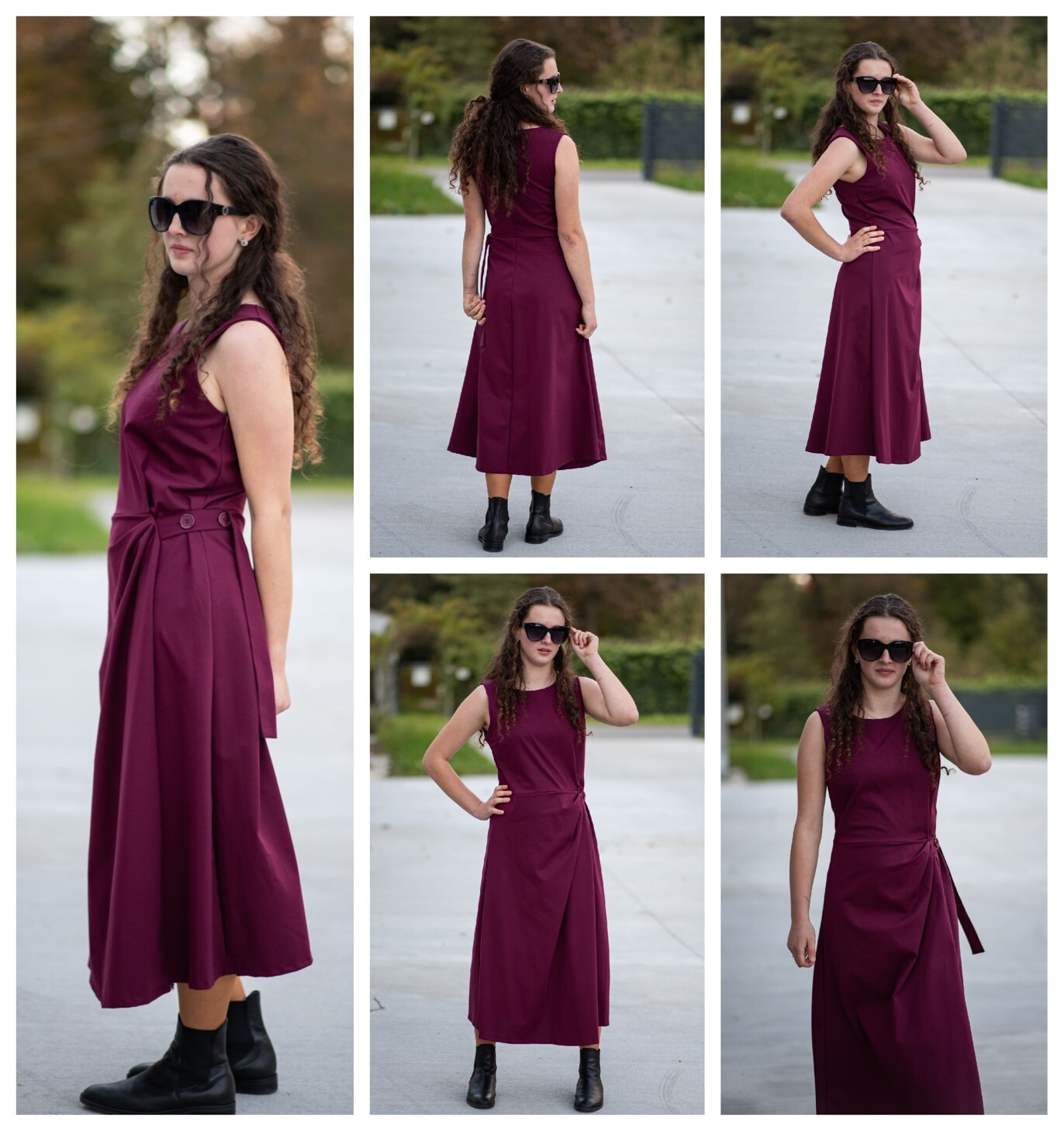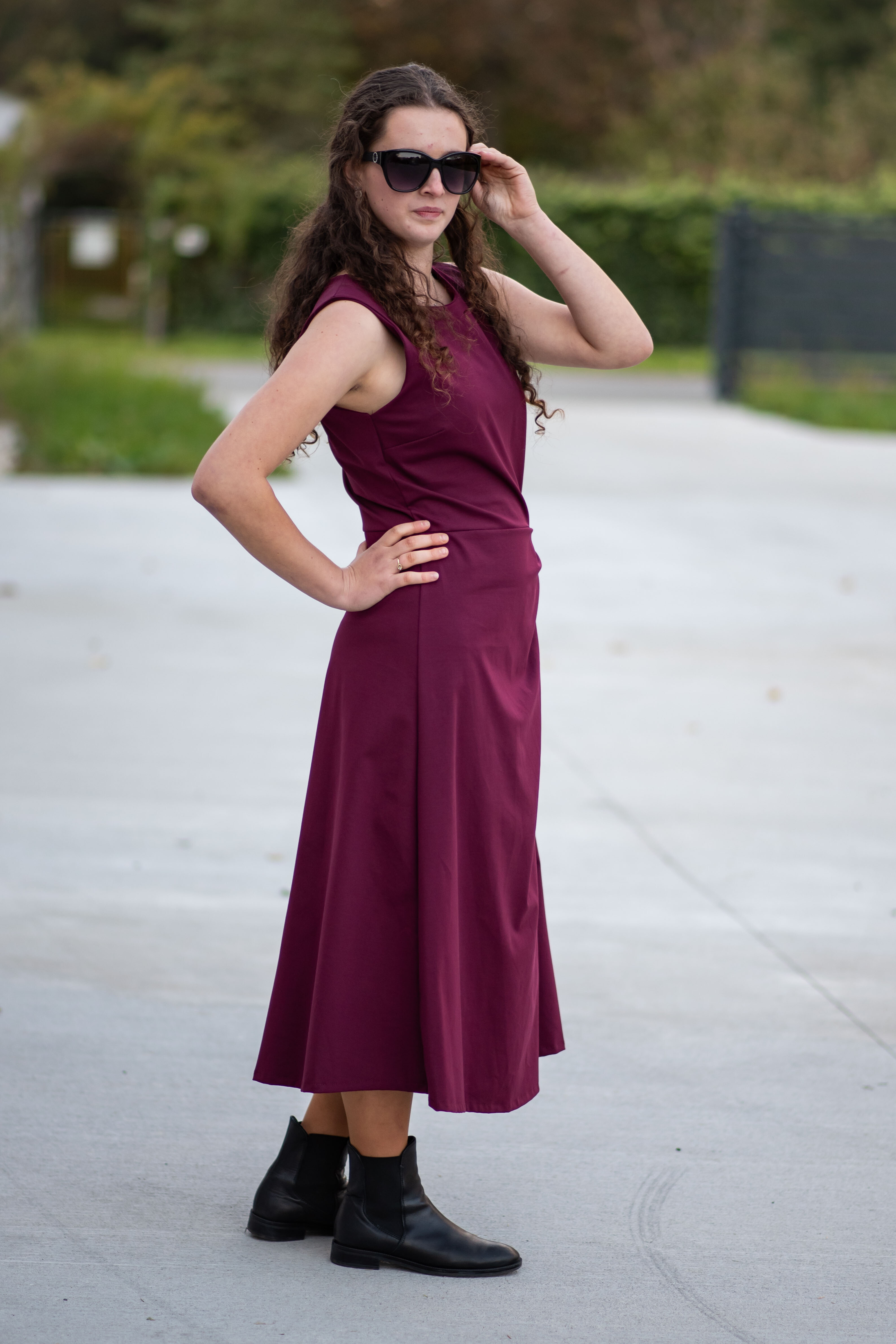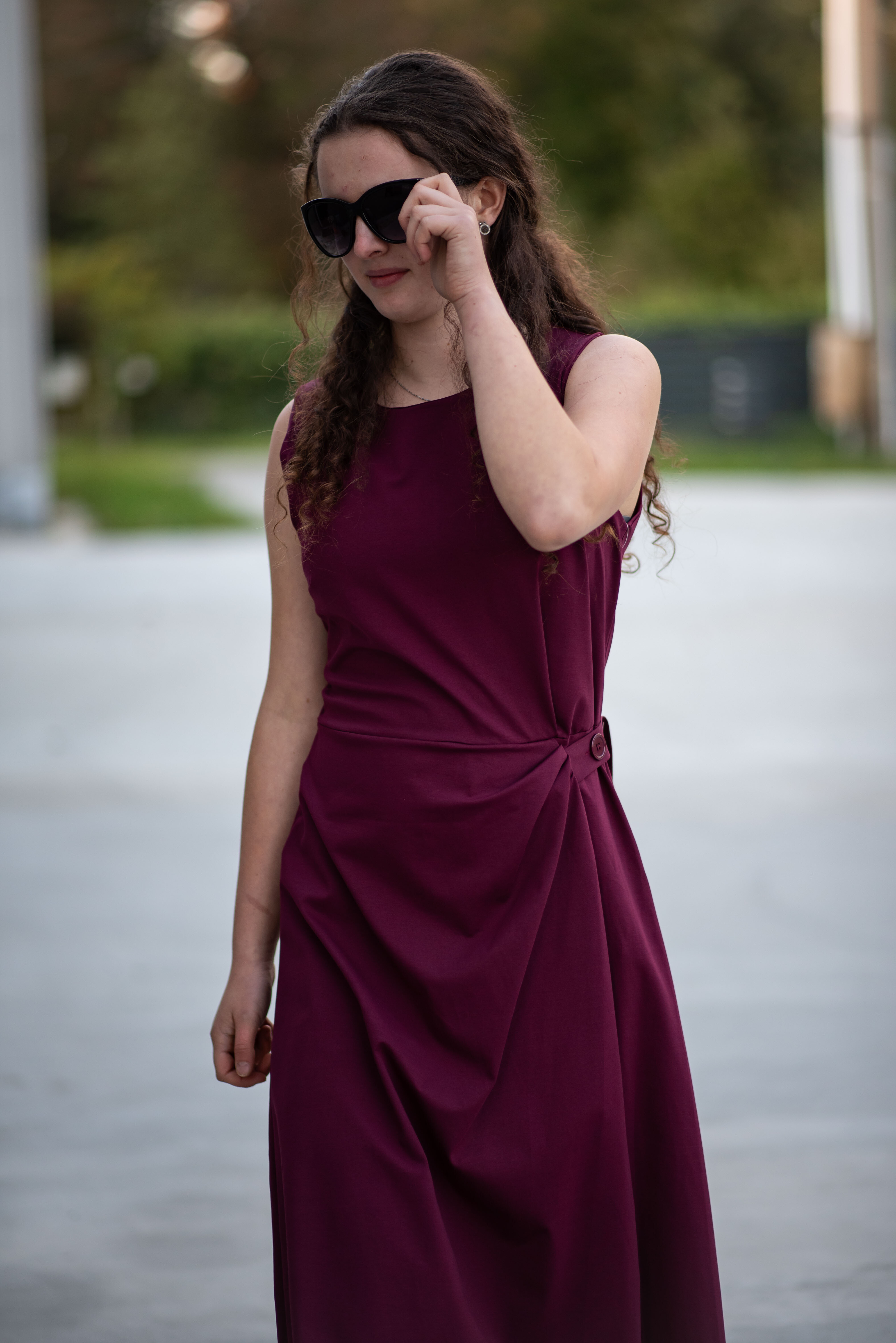 Elegantní šaty dlouhé bez rukávu a s kulatým výstřihem. Šaty jsou na zadní straně na zip a v oblasti pasu mají regulaci na knoflík.
