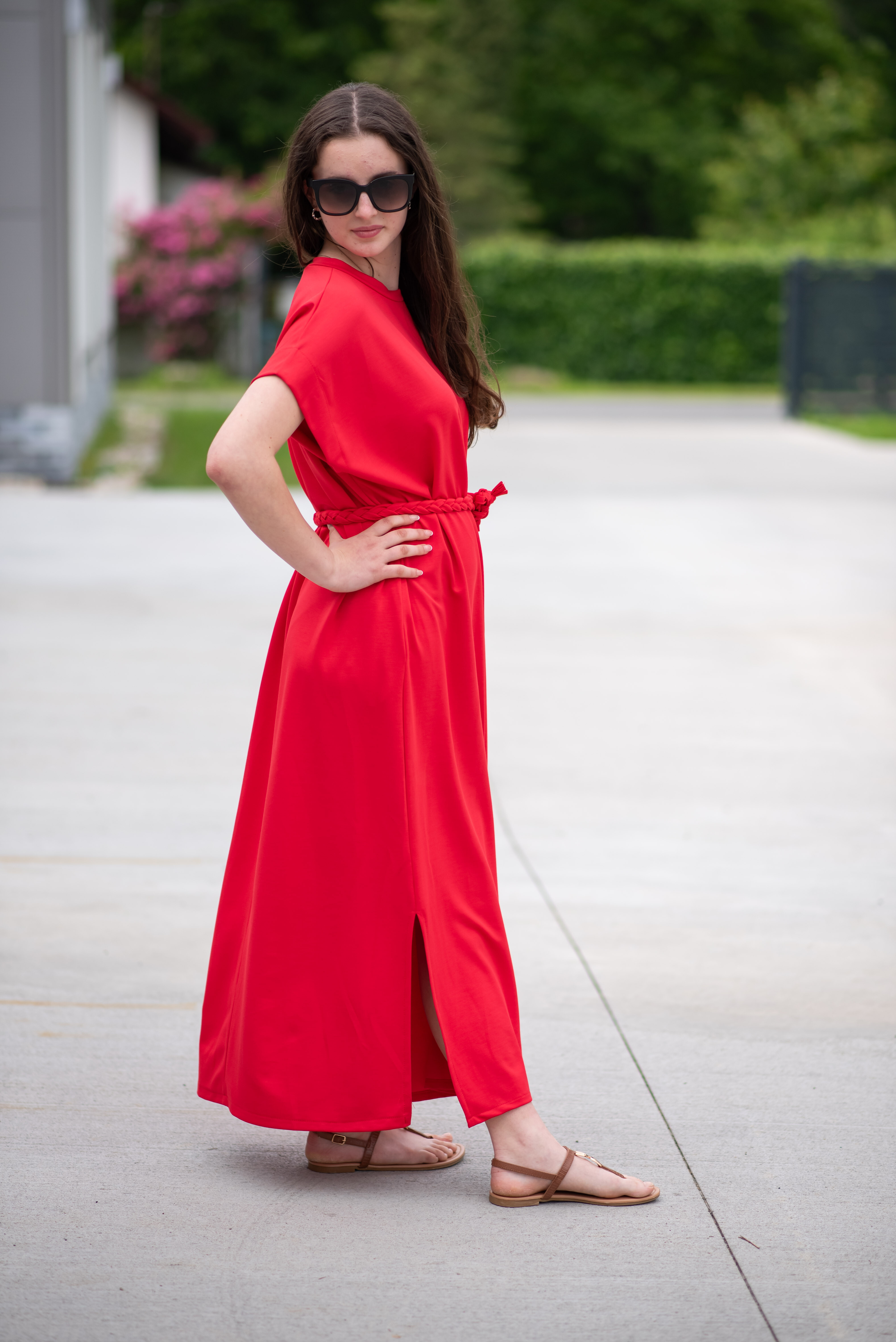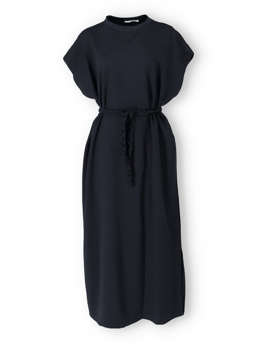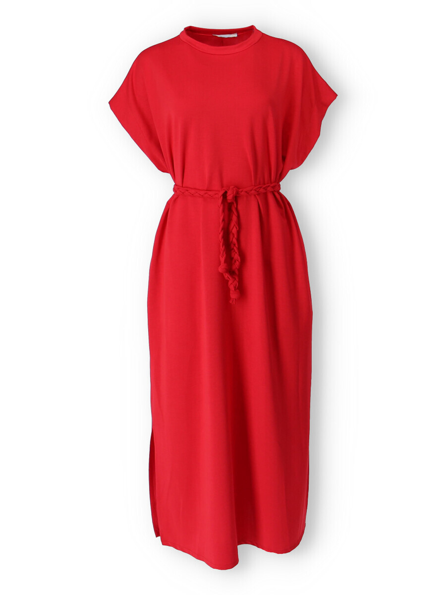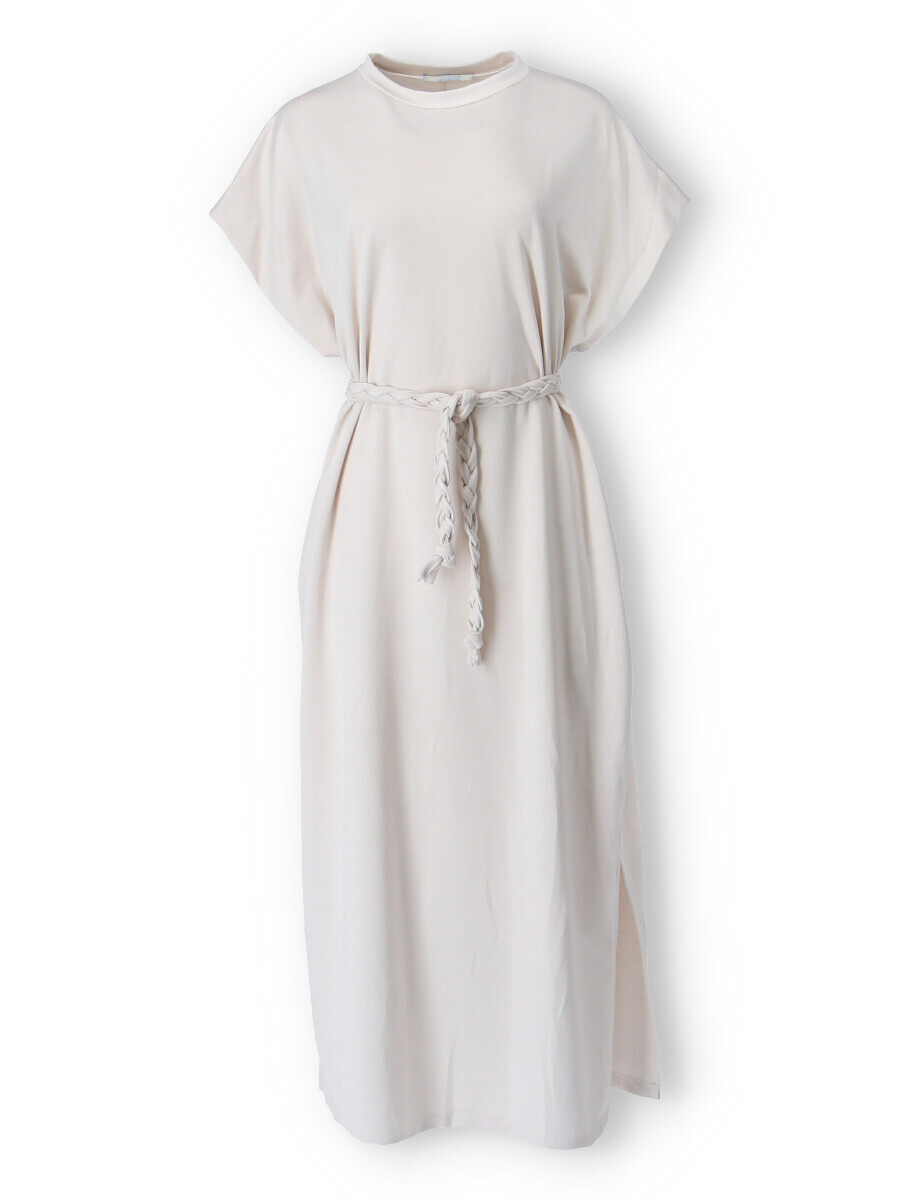 Dlouhé oversize MAXI šaty. Šaty mají všité kapsy a ve spodní části rozparky po stranách, jsou doplněny copánkovým páskem.