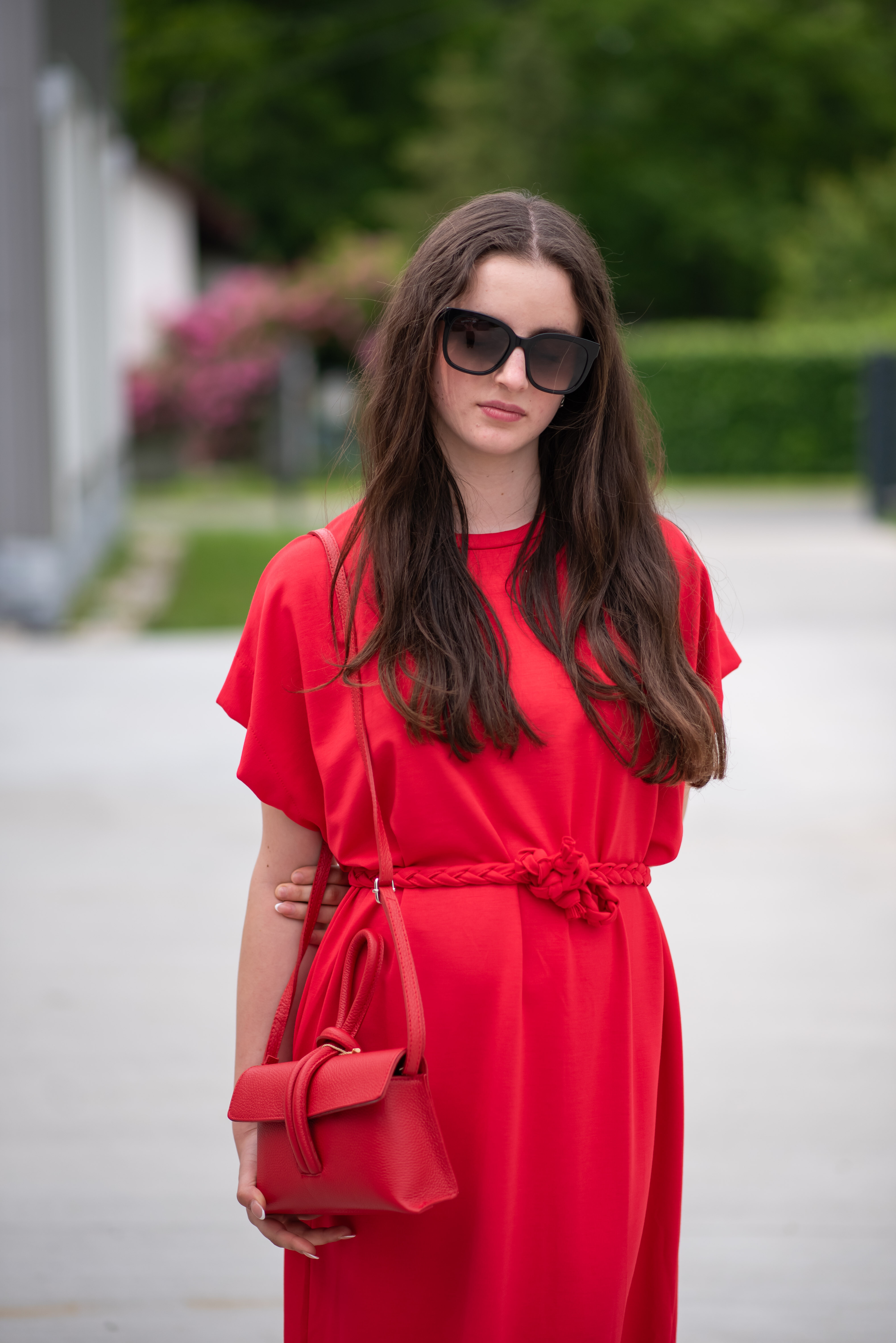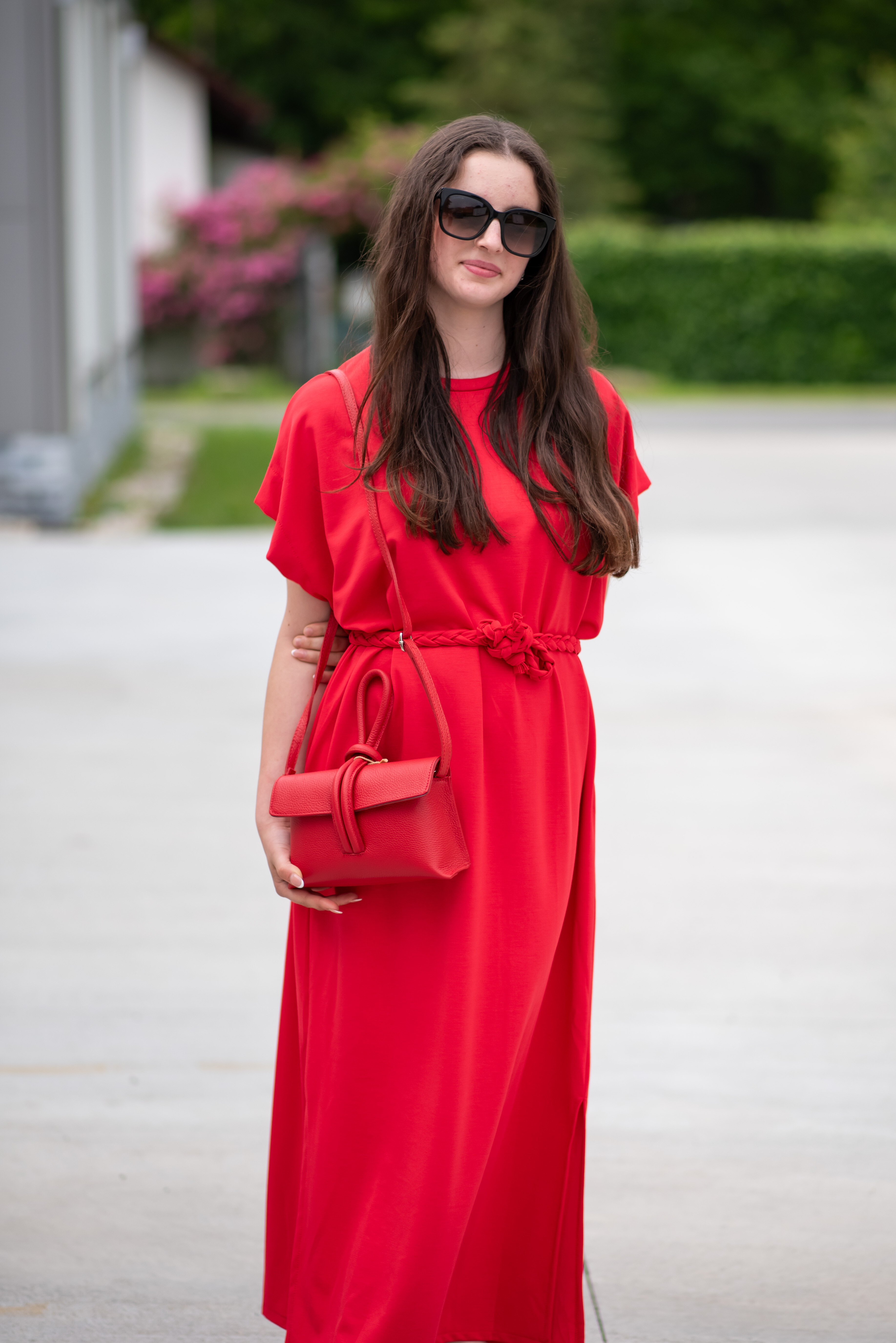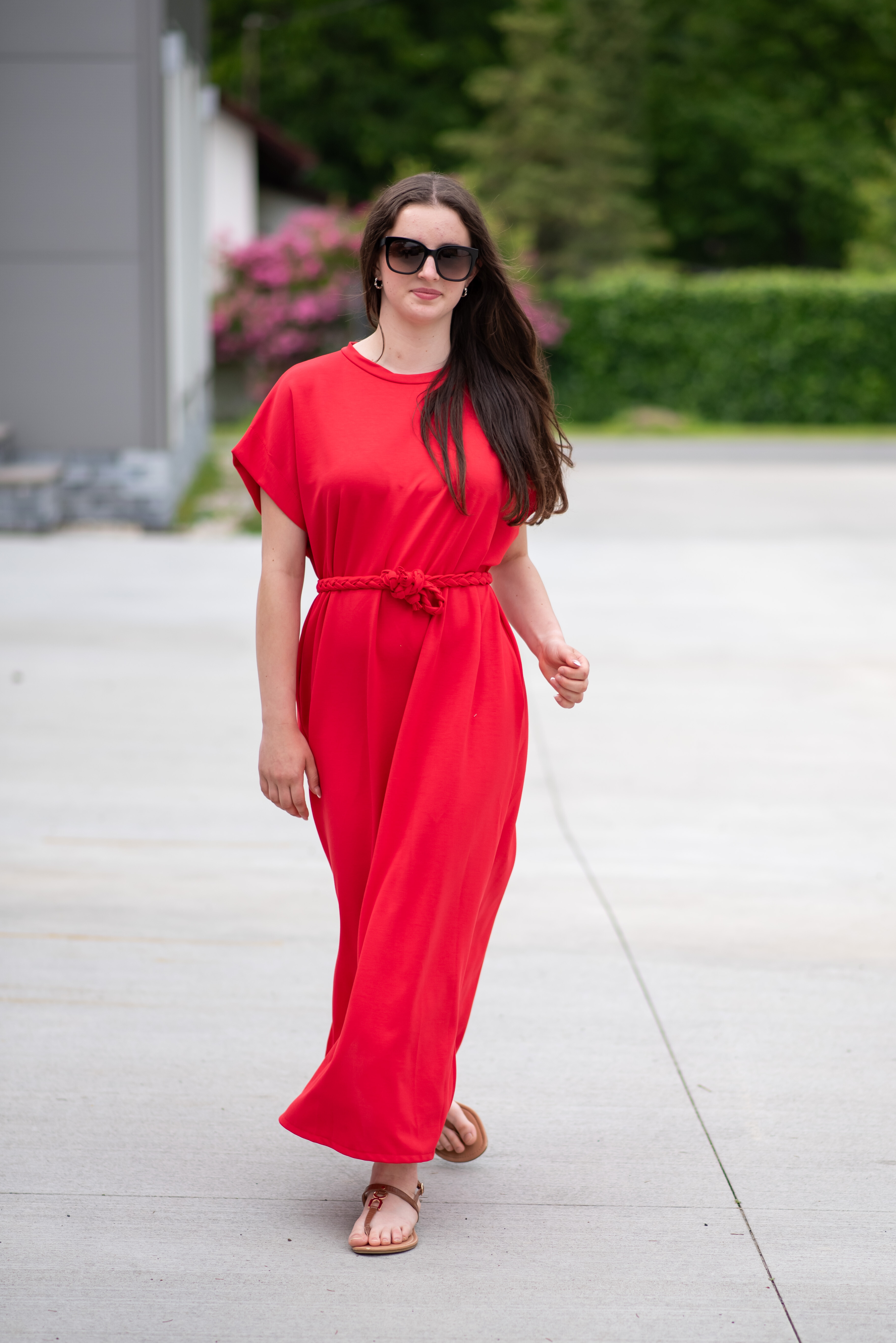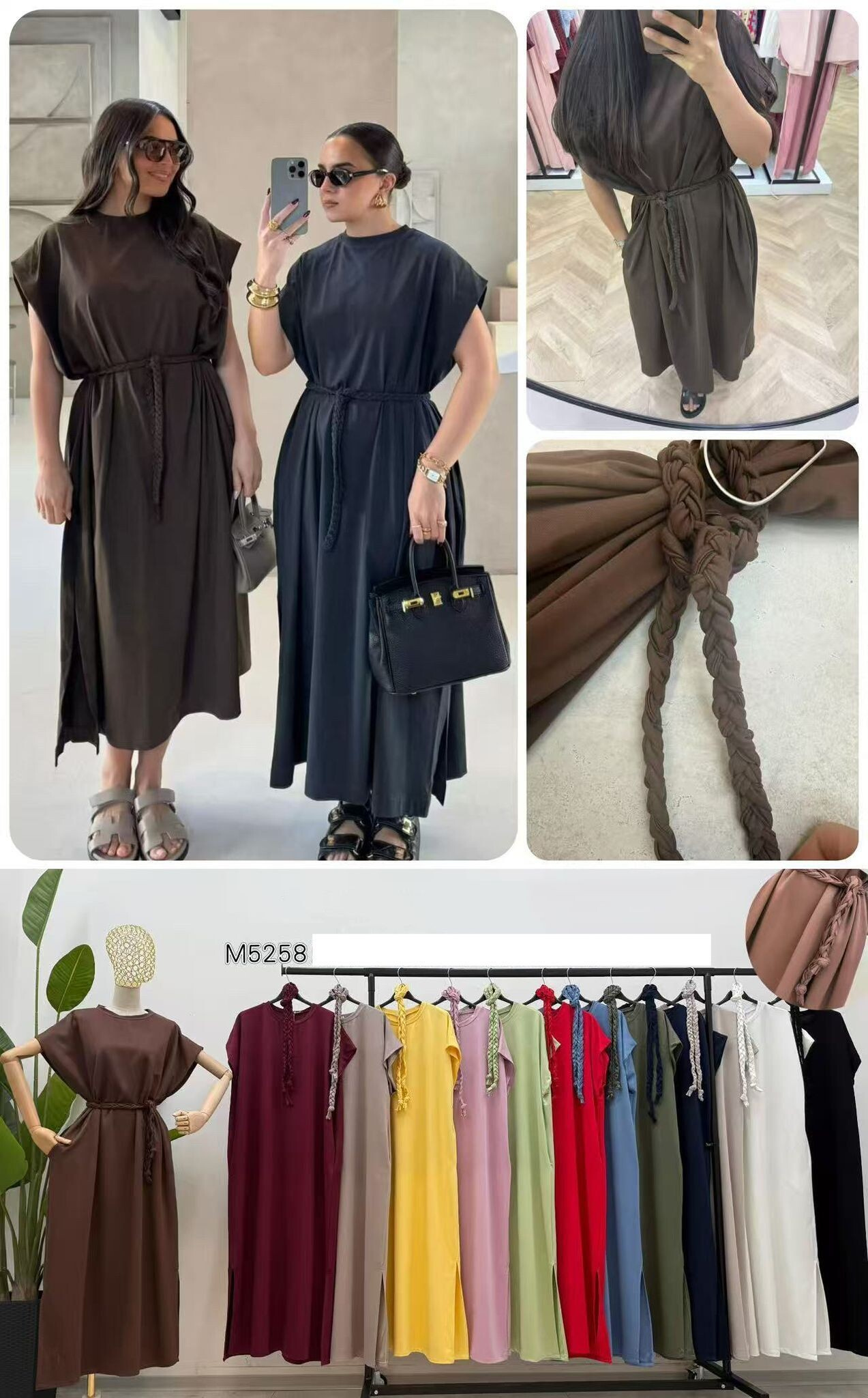 Dlouhé oversize MAXI šaty. Šaty mají všité kapsy a ve spodní části rozparky po stranách, jsou doplněny copánkovým páskem.