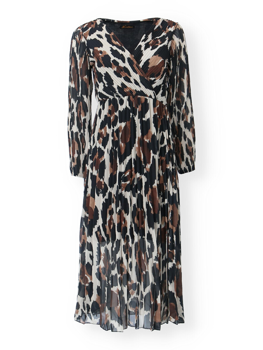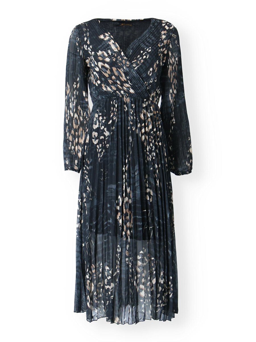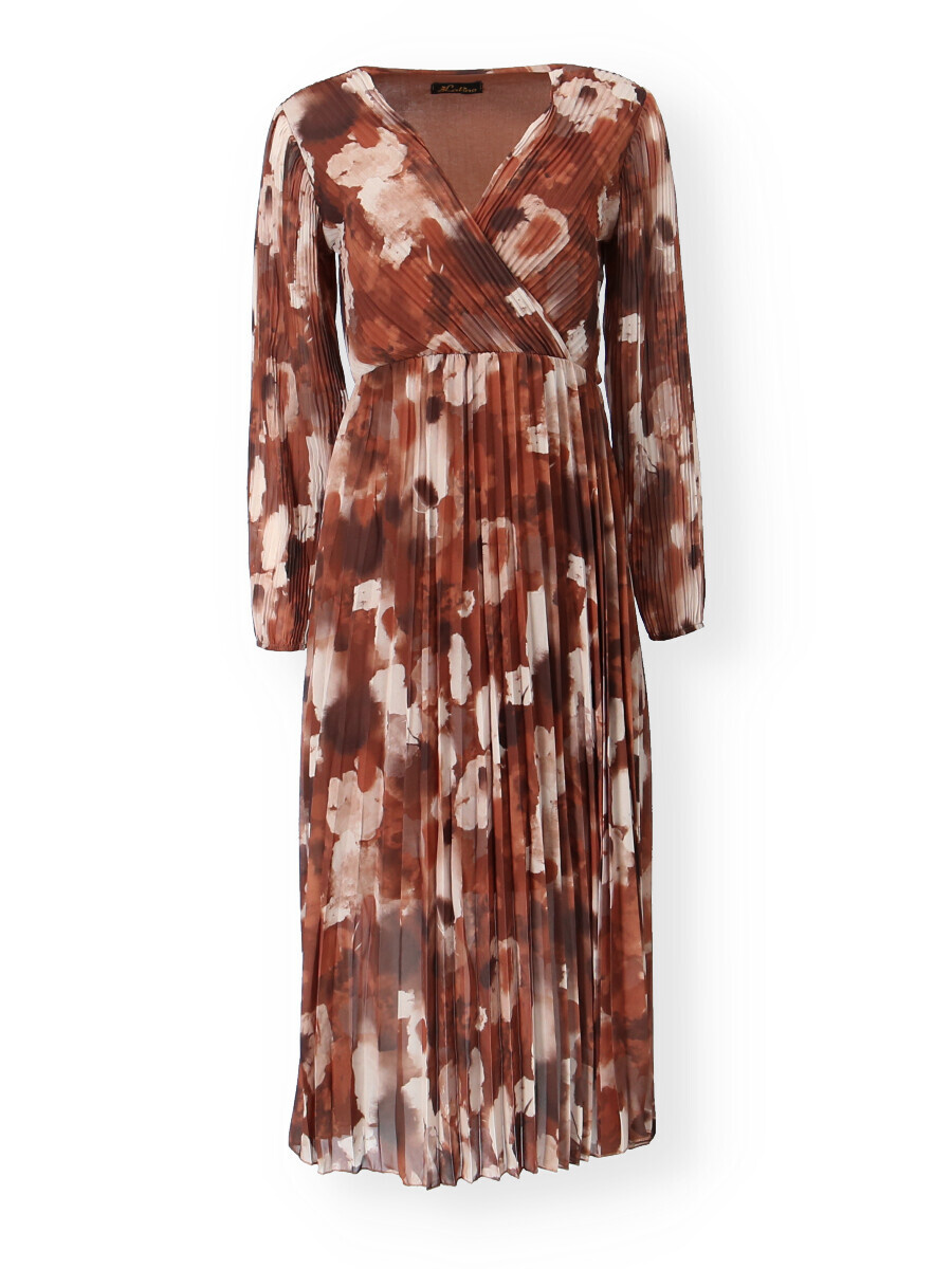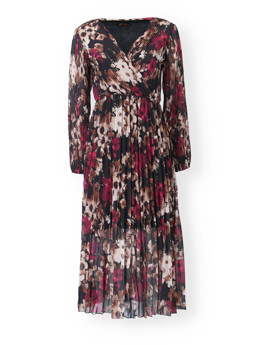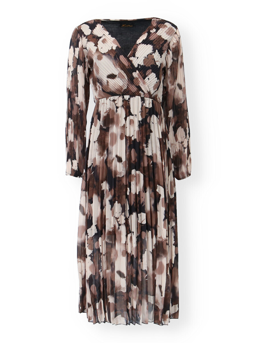 Dámské dlouhé šaty plisé s dlouhým rukávem, výstřih do V, v pase do gumy, podšívka.