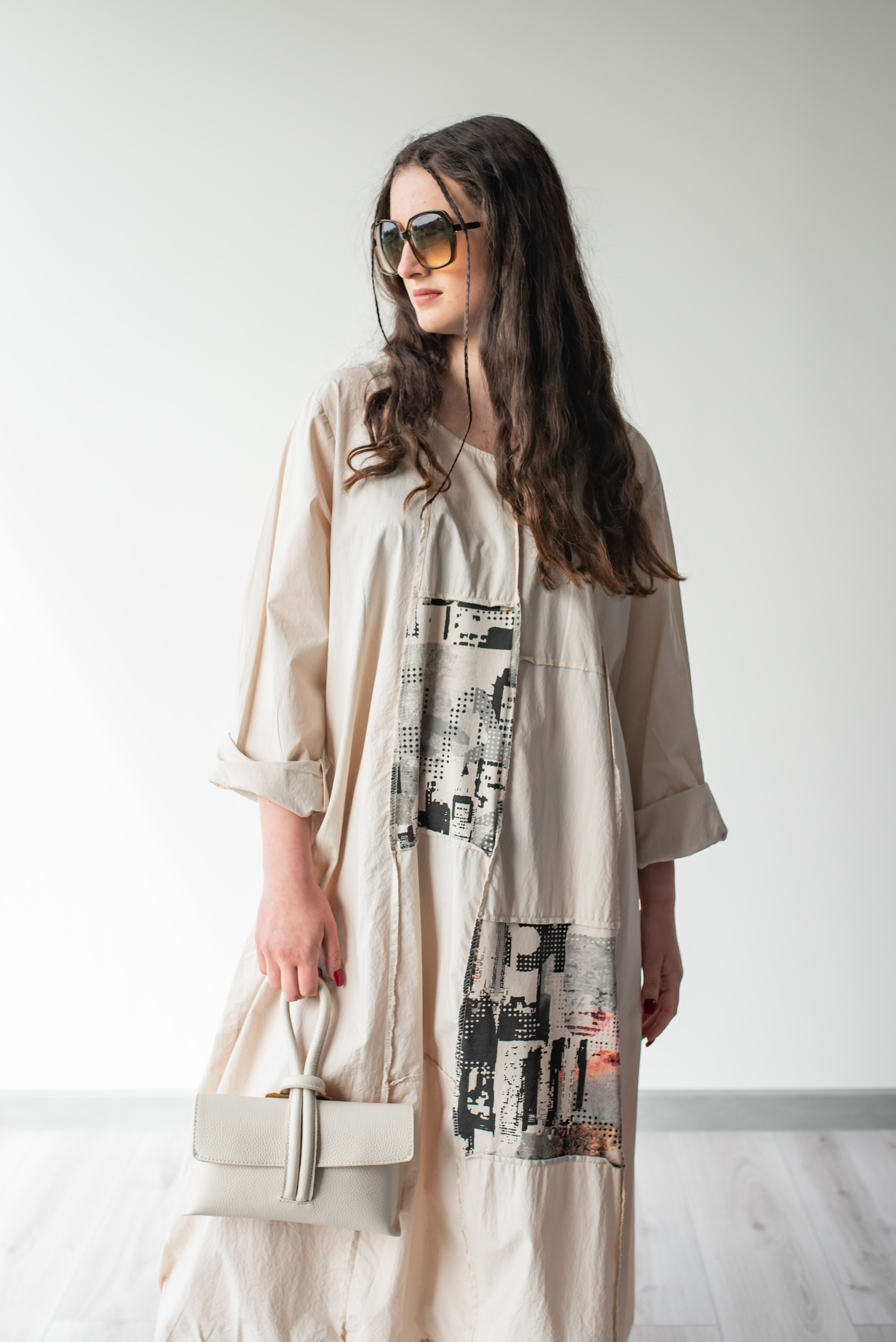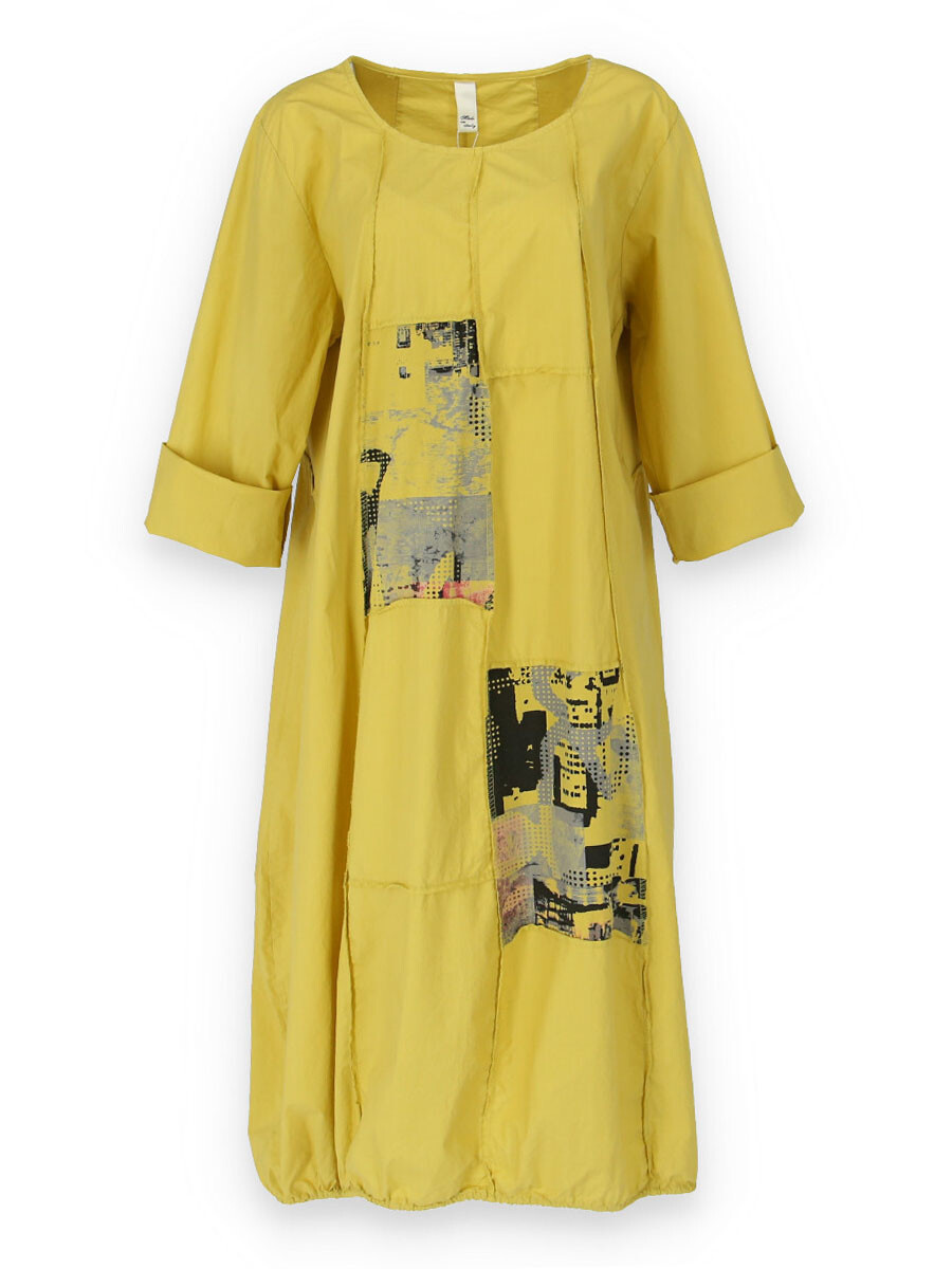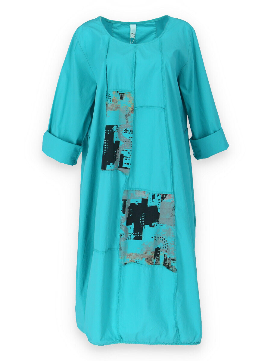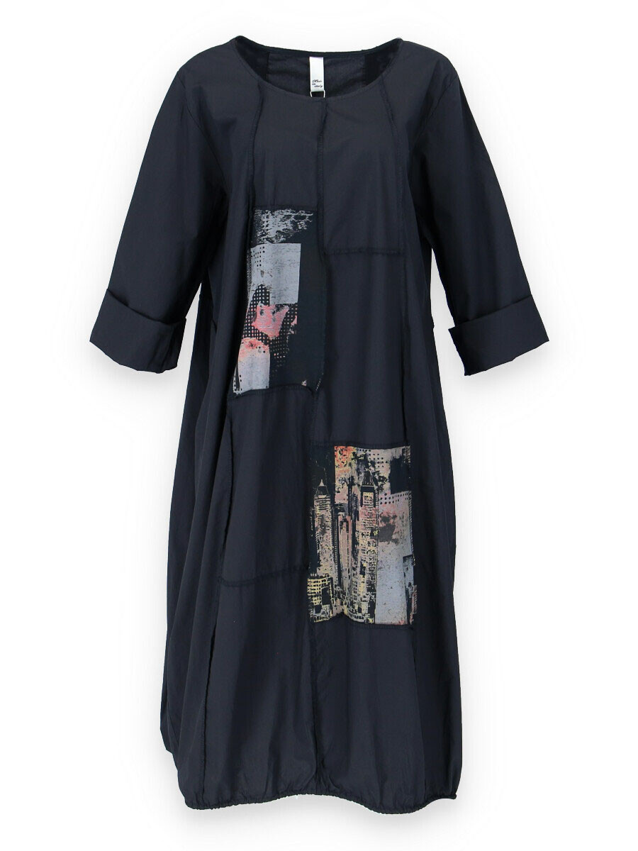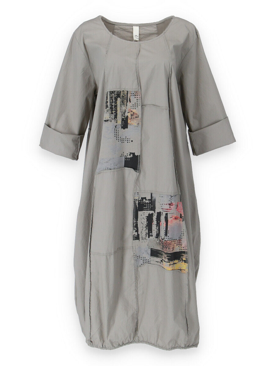 Dlouhé šaty s potiskem. Šaty jsou volnějšího balónového střihu. Ve spodní části regulace utažení na šňůrku.