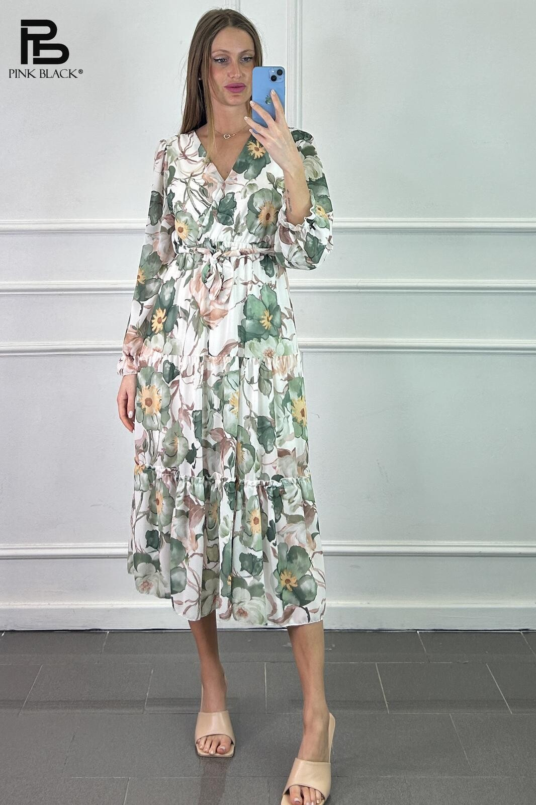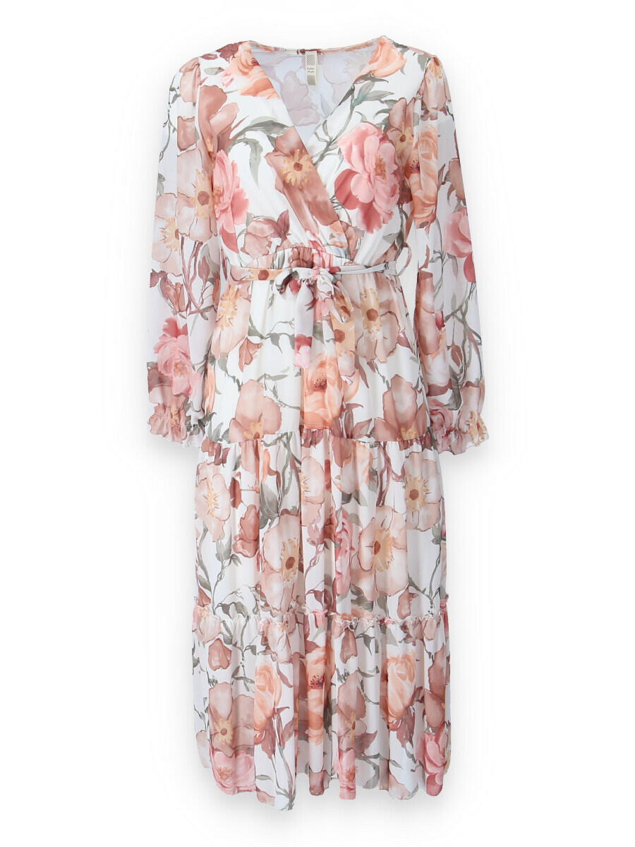 Dámské dlouhé šaty s volánkovou sukní ve spodní části a dlouhým rukávem