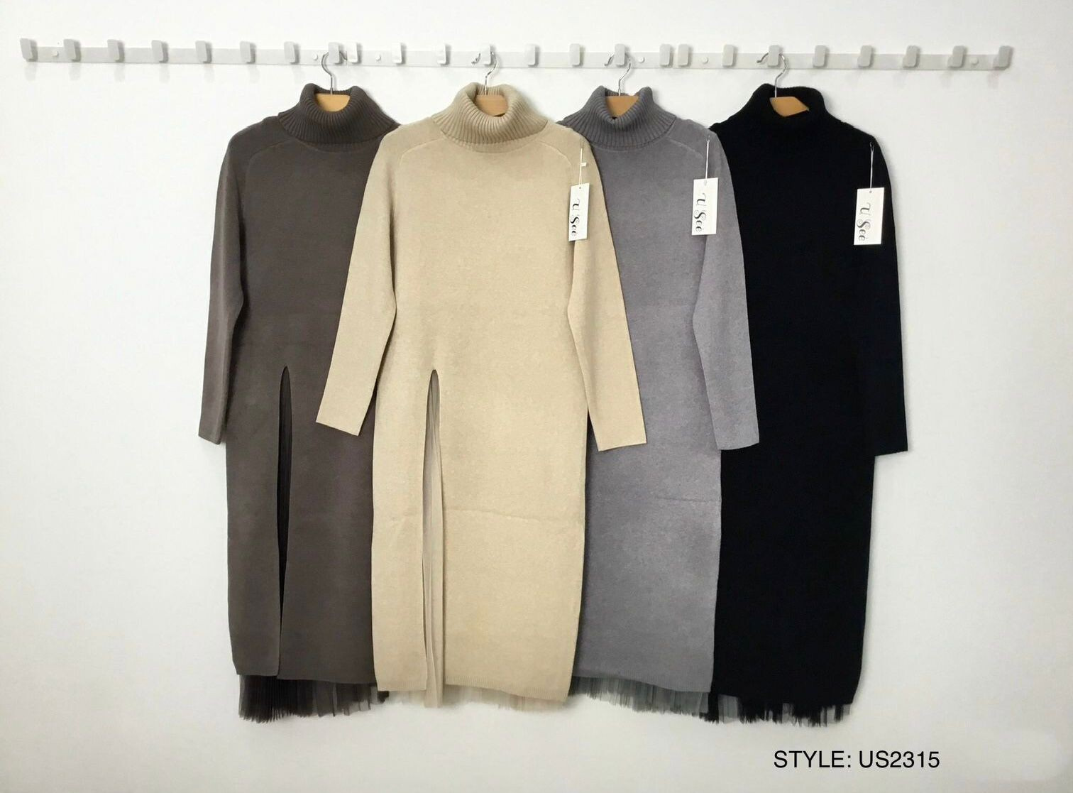 Plisé šaty s dlouhým rolákem s rozparkem na boku. Dovoz Itálie