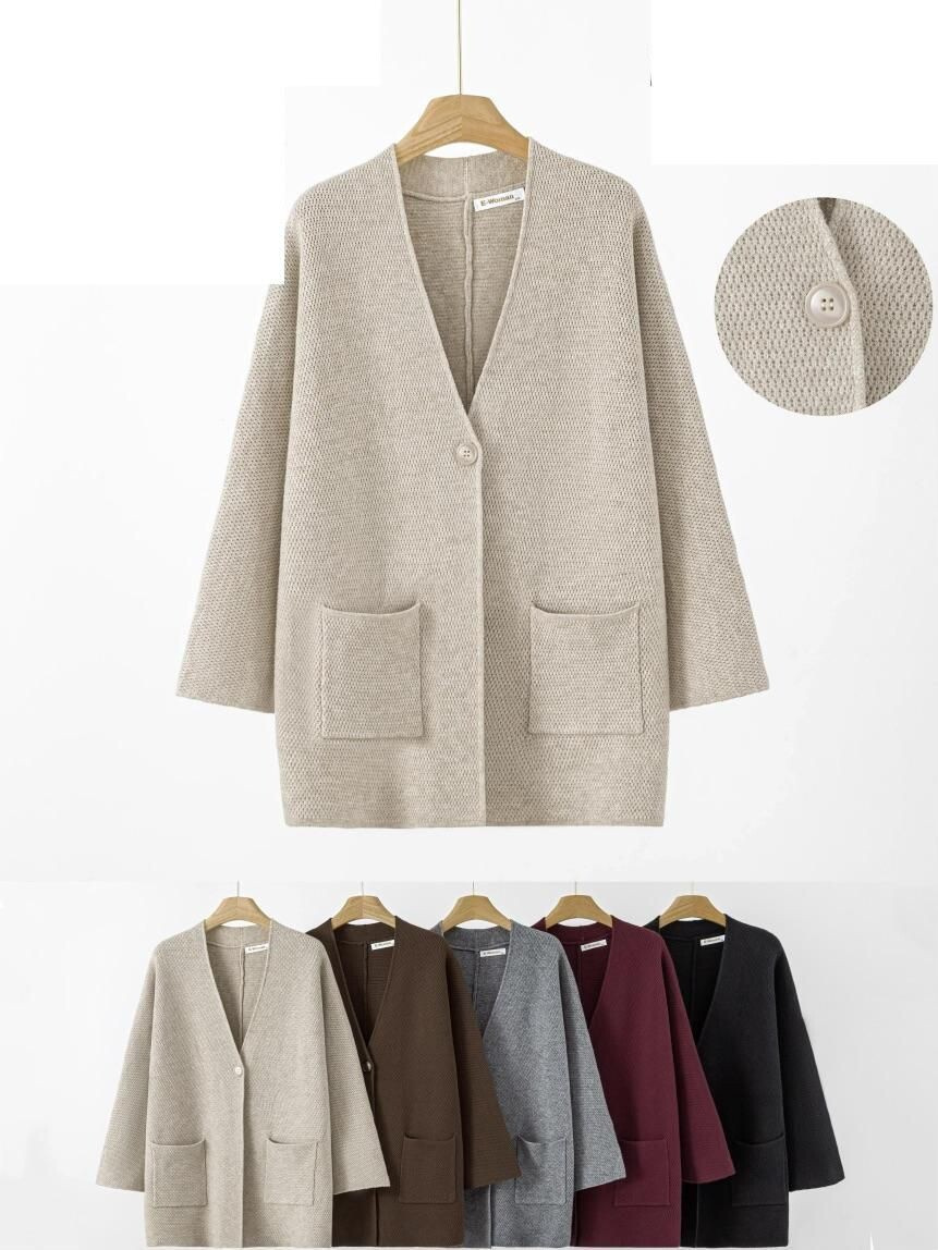 Dlouhý oversized svetr s našitými kapsami na přední straně.
